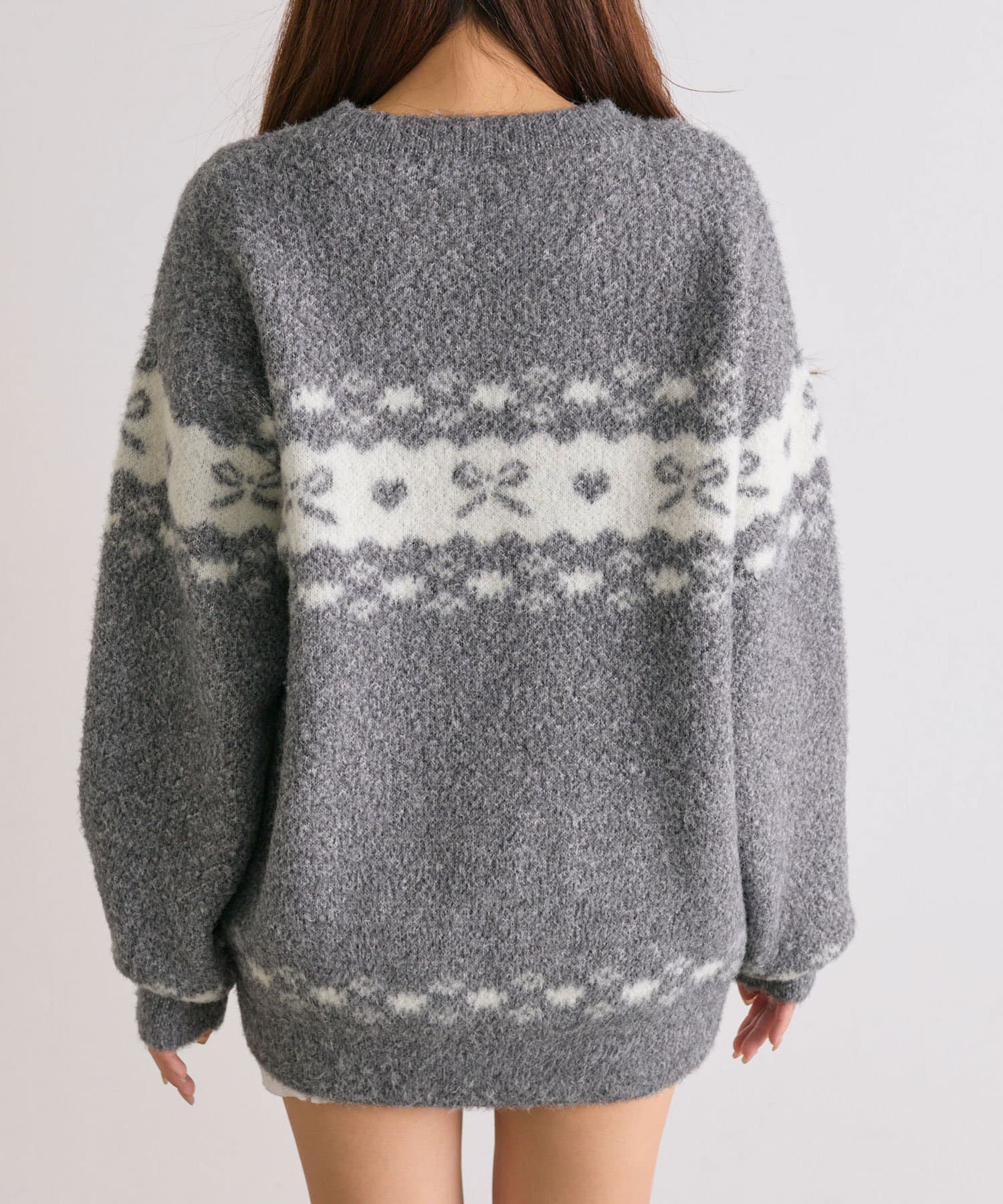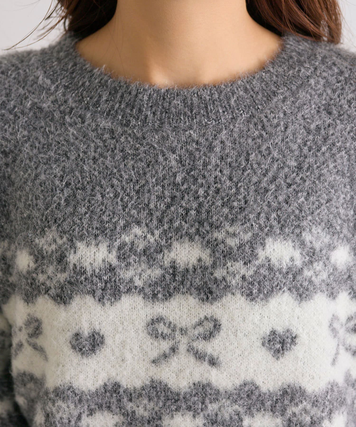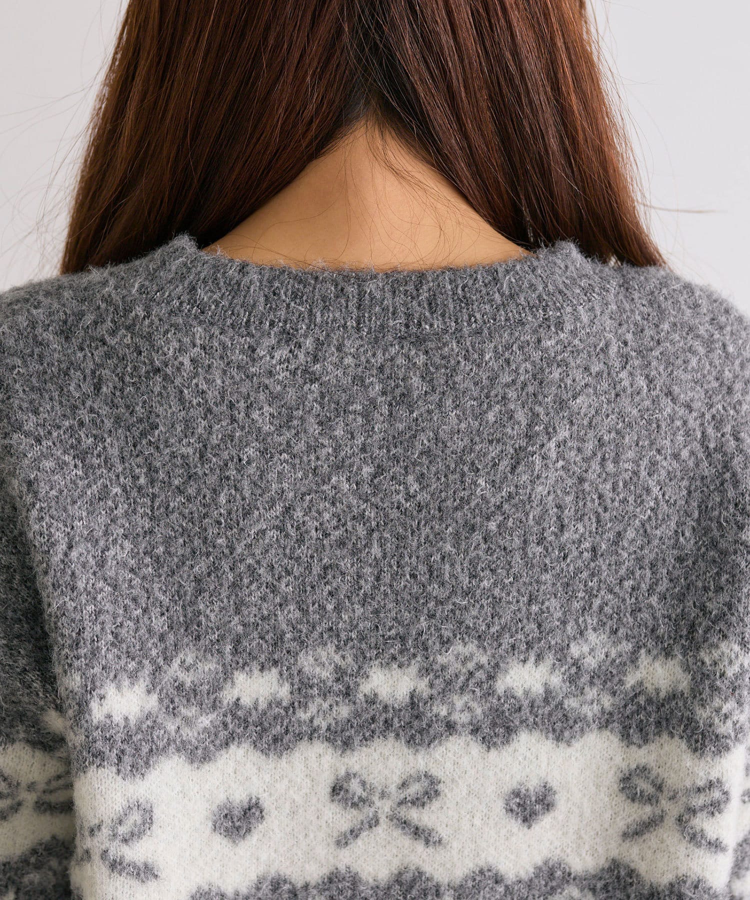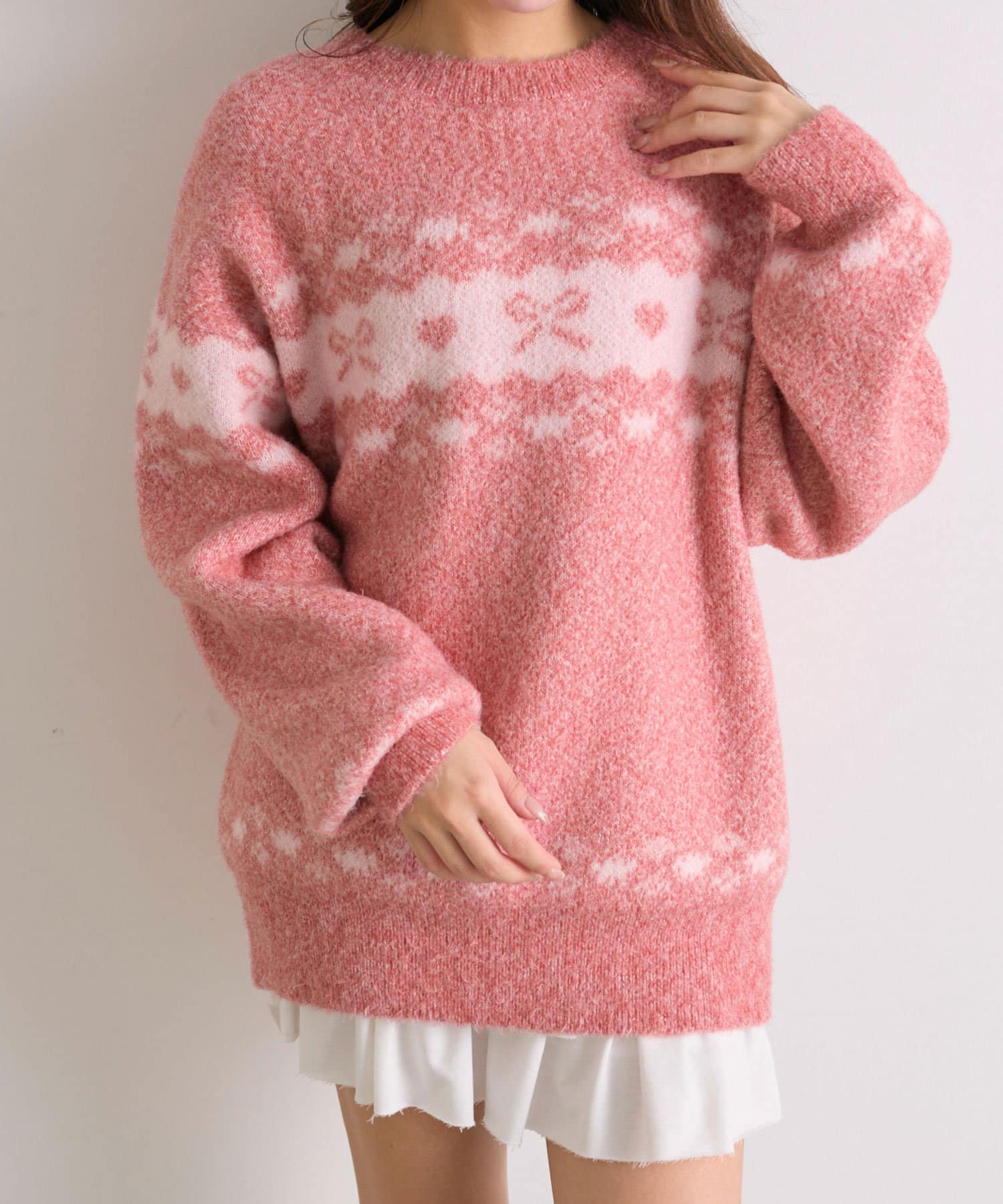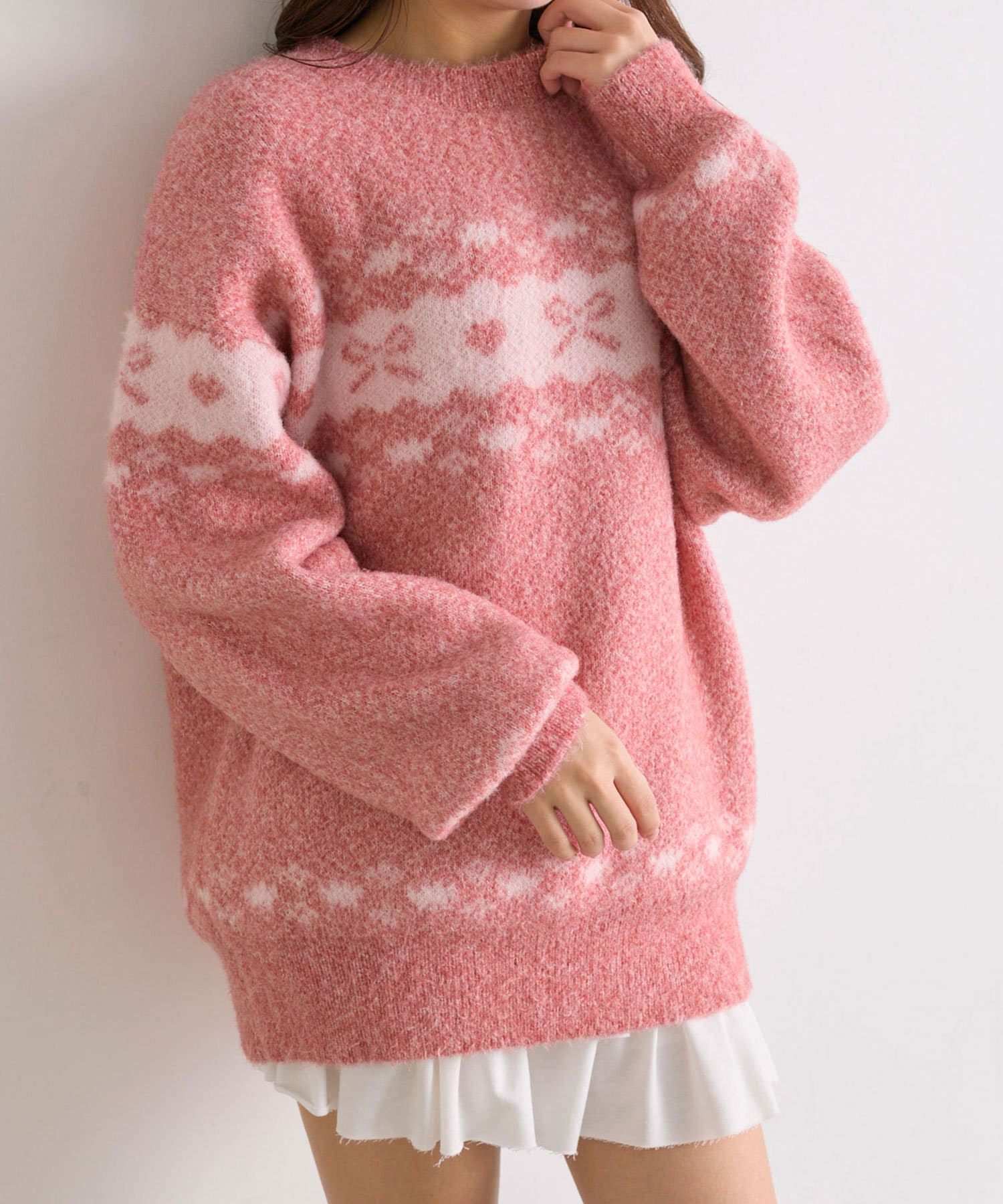 ・リボンやハートなどが施され、ガーリーデザインのニット。