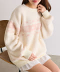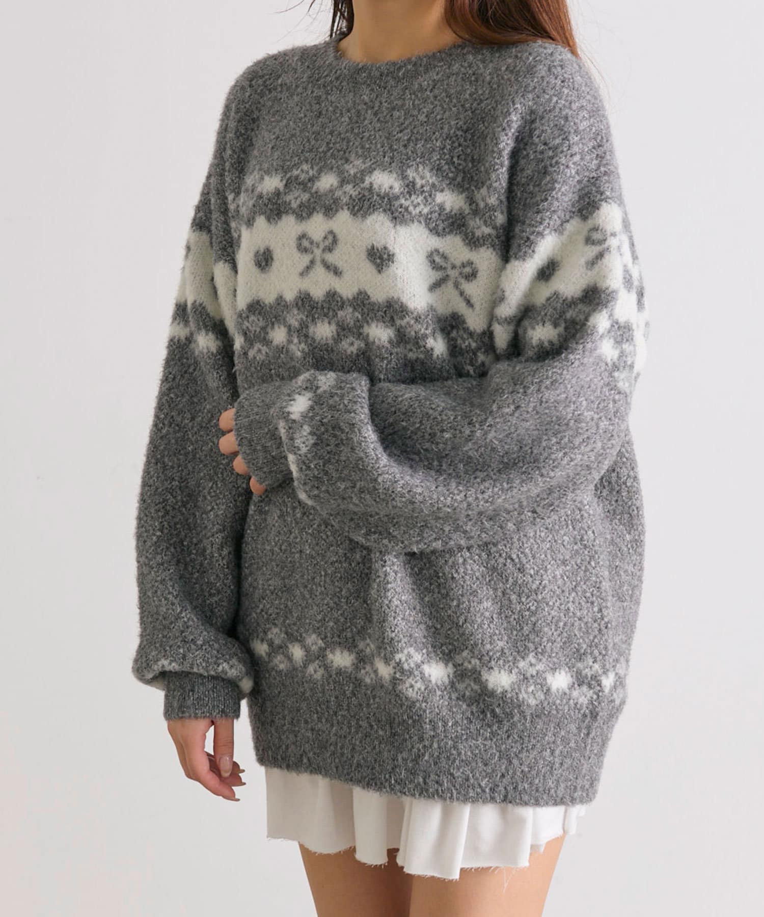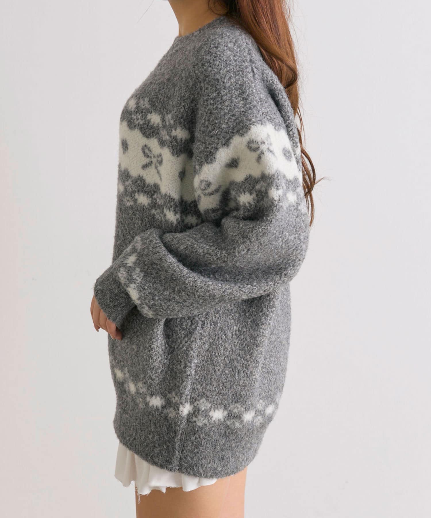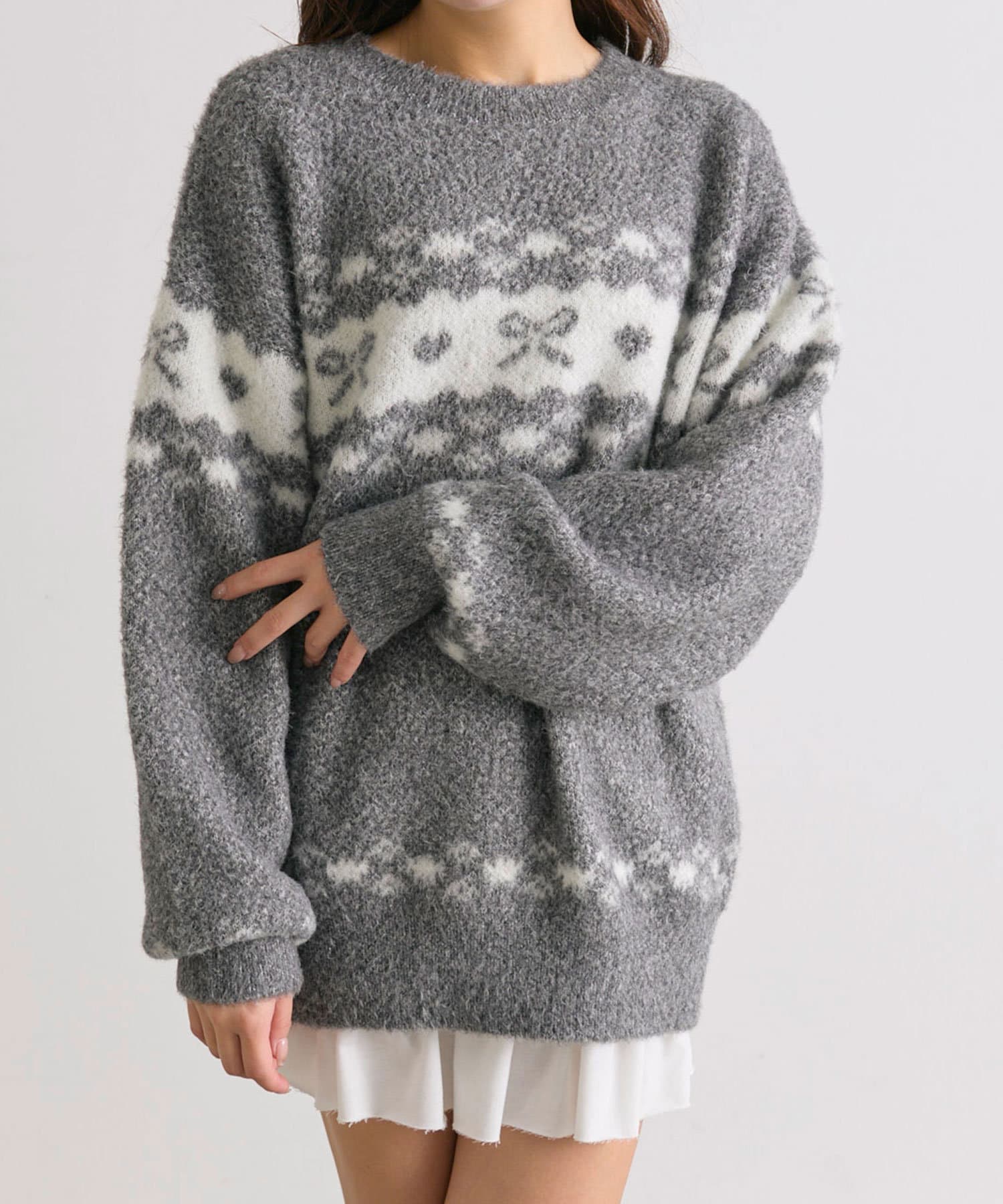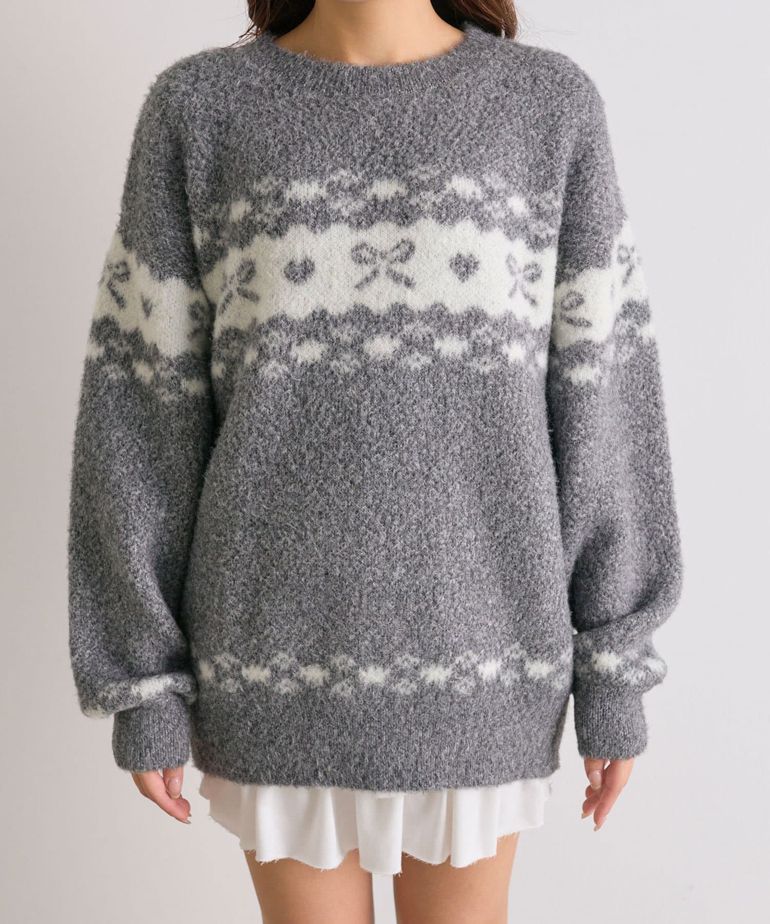 ・リボンやハートなどが施され、ガーリーデザインのニット。