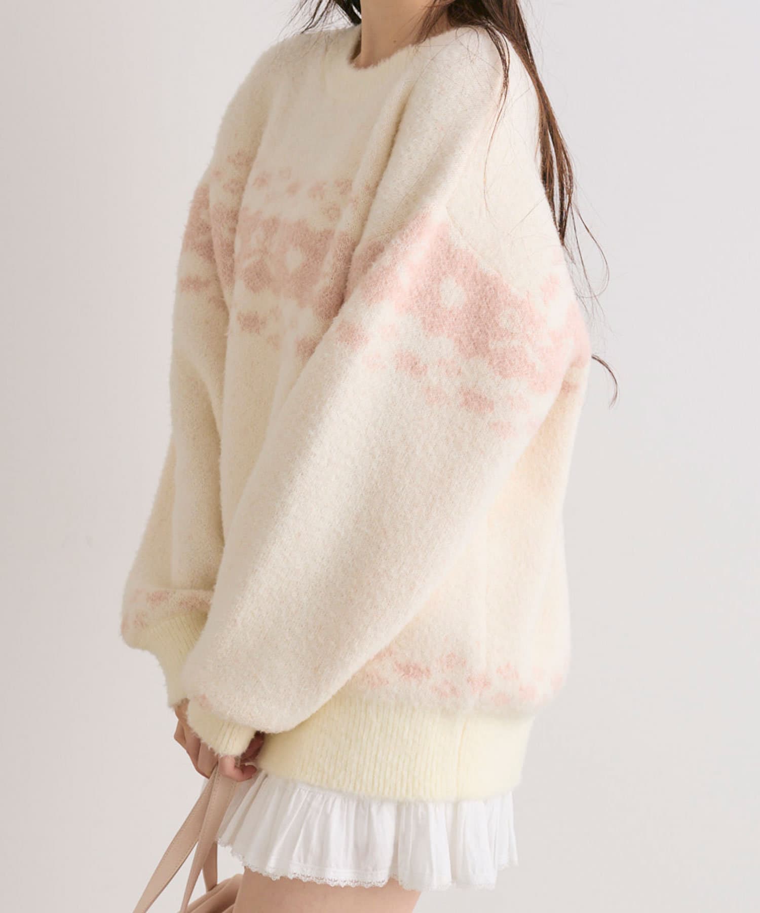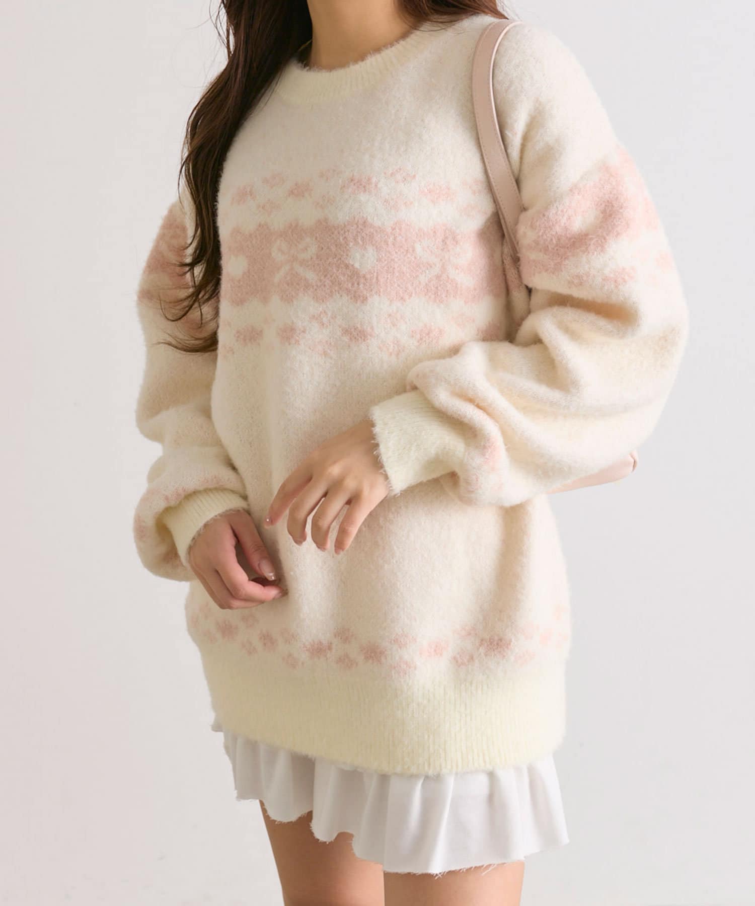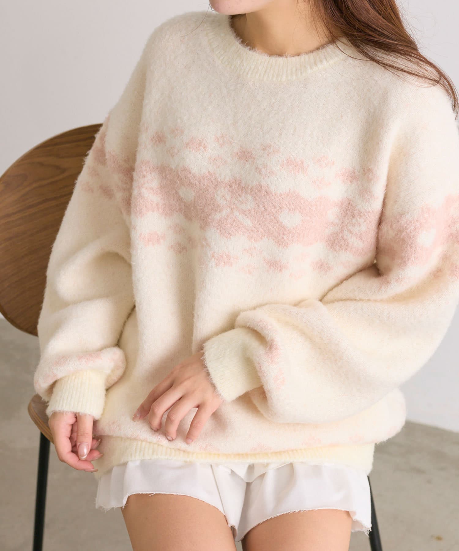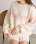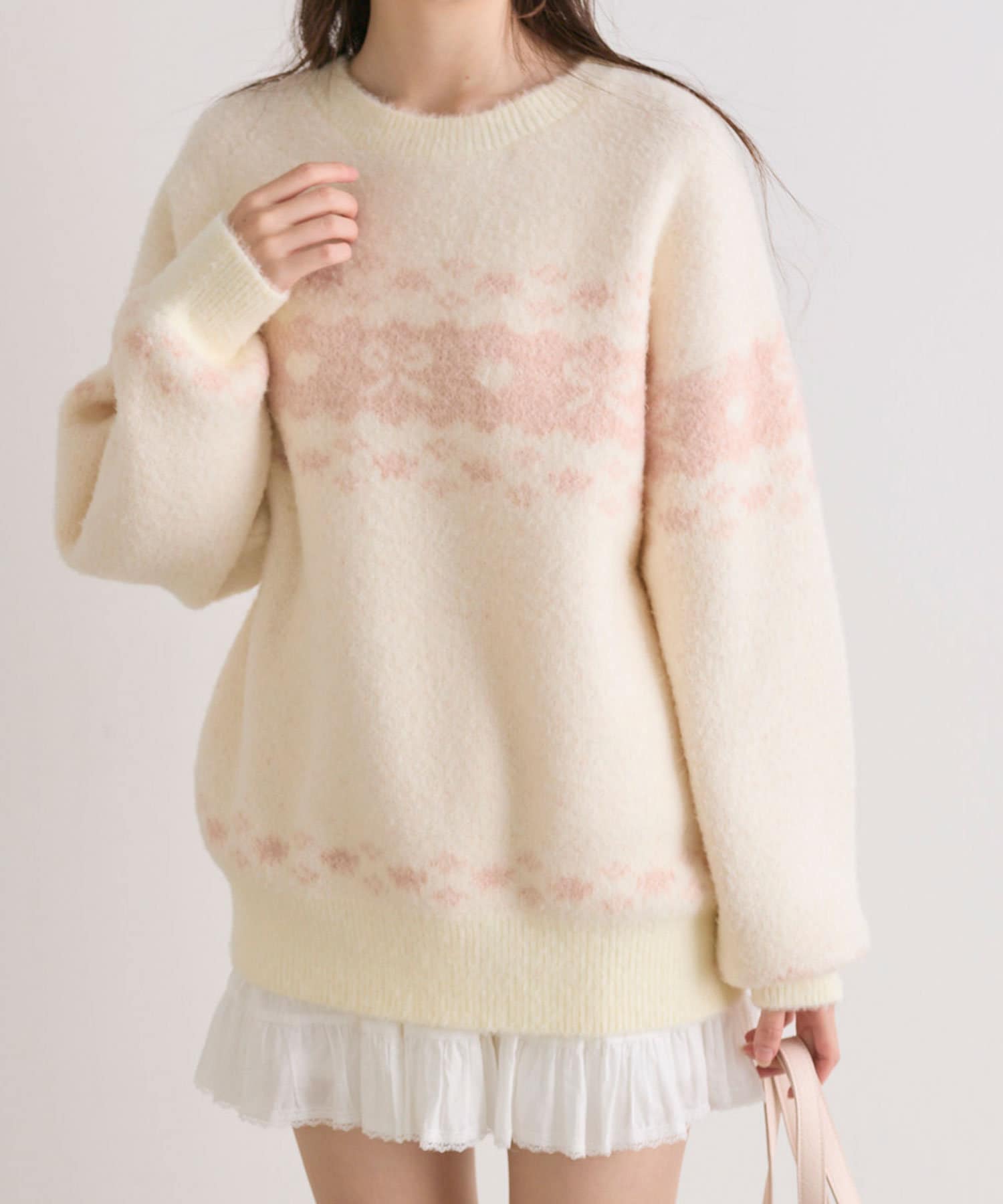 ・リボンやハートなどが施され、ガーリーデザインのニット。