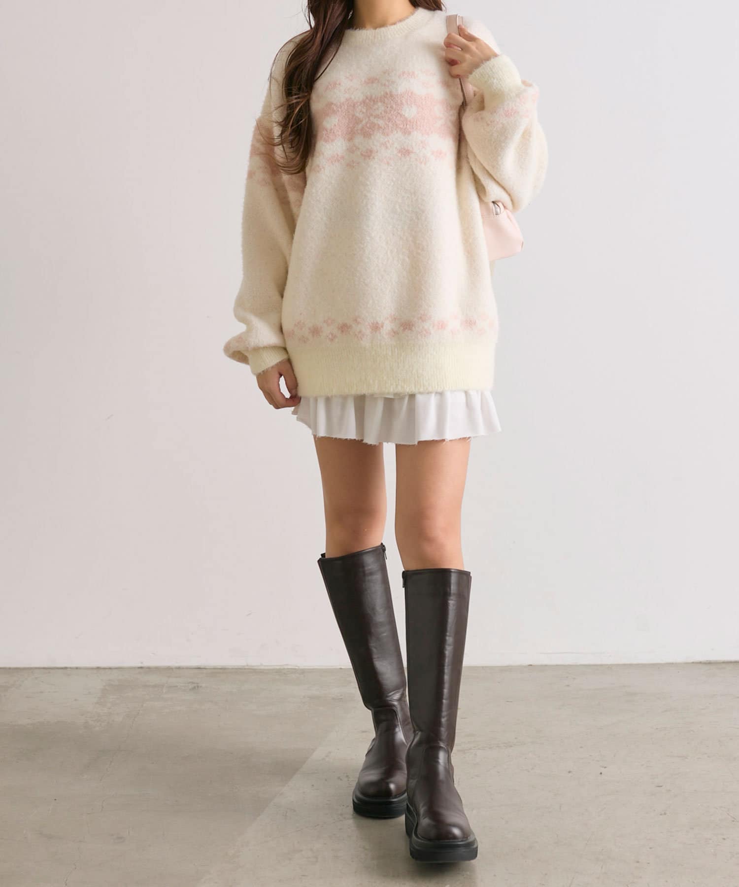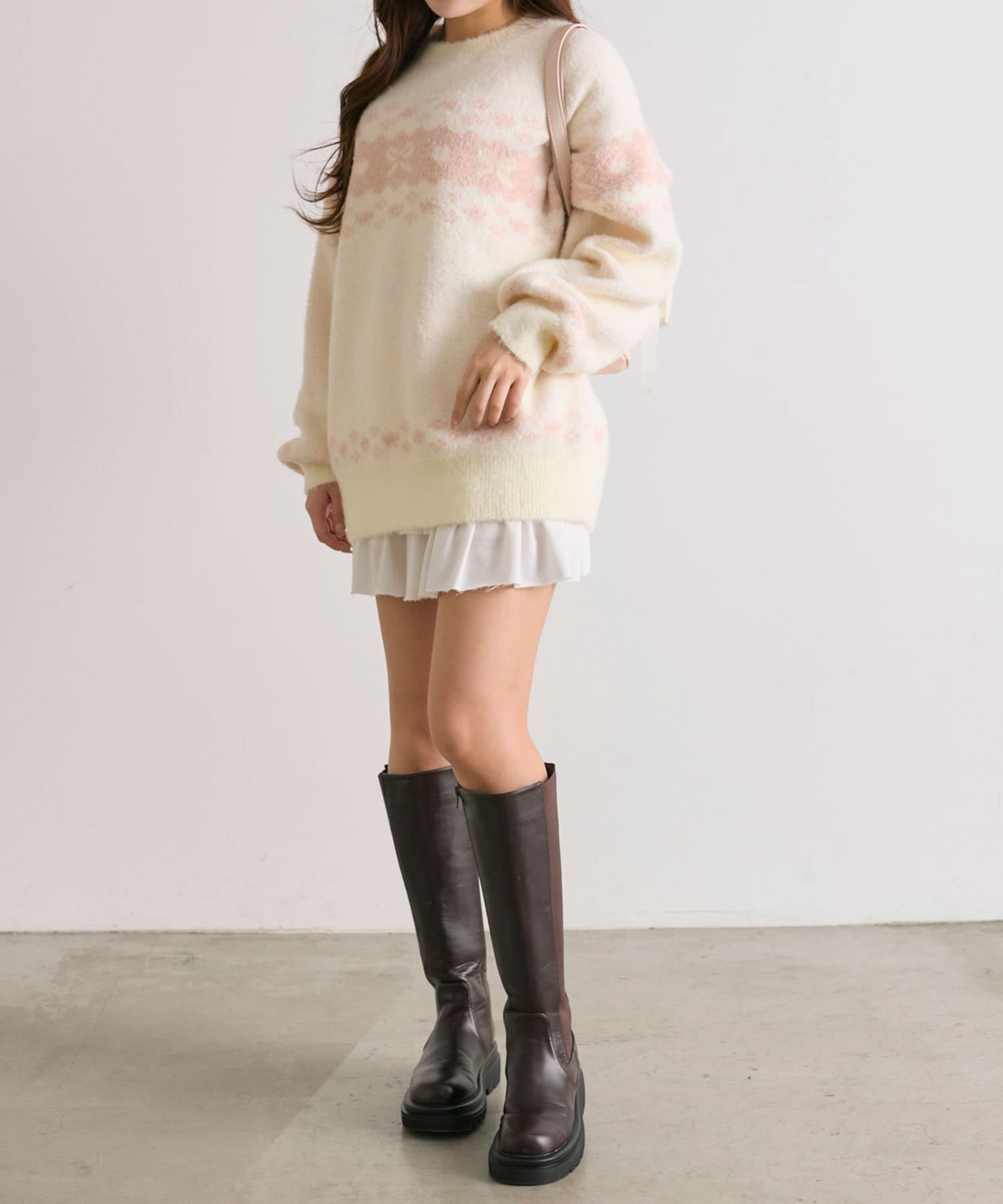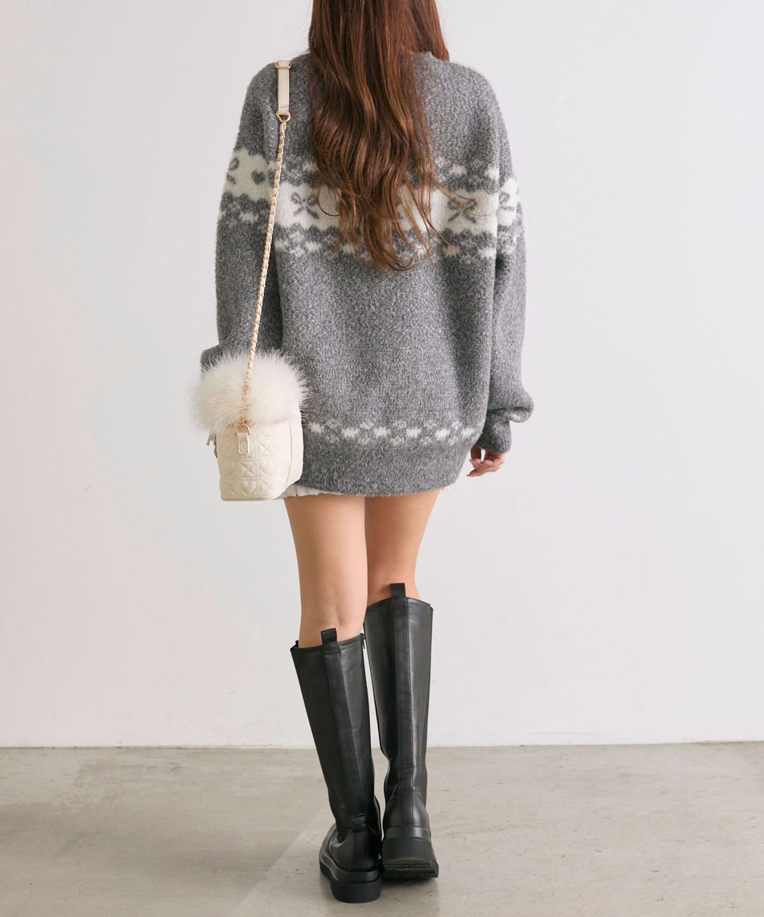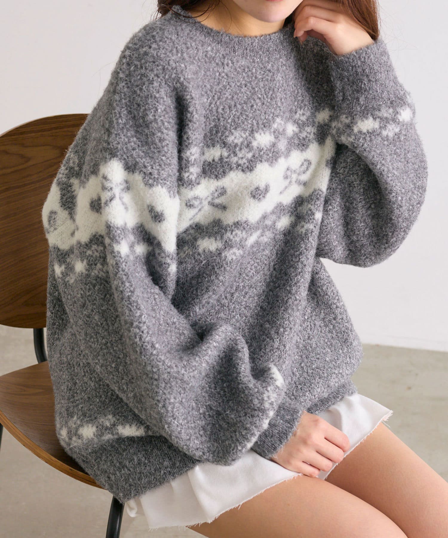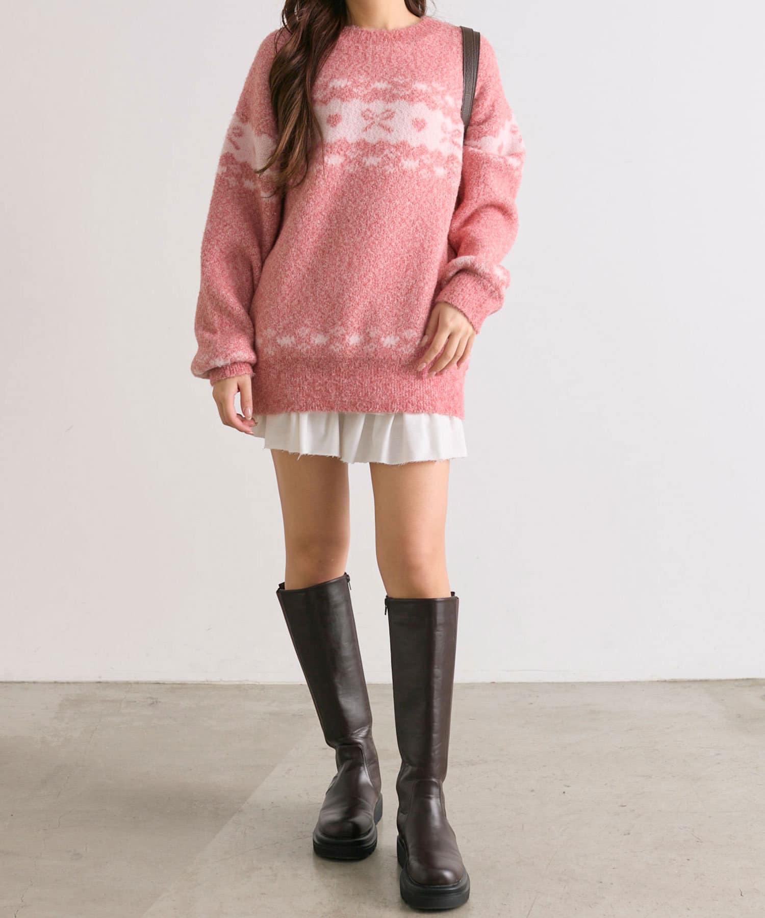 ・リボンやハートなどが施され、ガーリーデザインのニット。