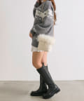 ・足元はロングブーツやハイソックスにムートンブーツを合わせると今っぽい着こなしに。