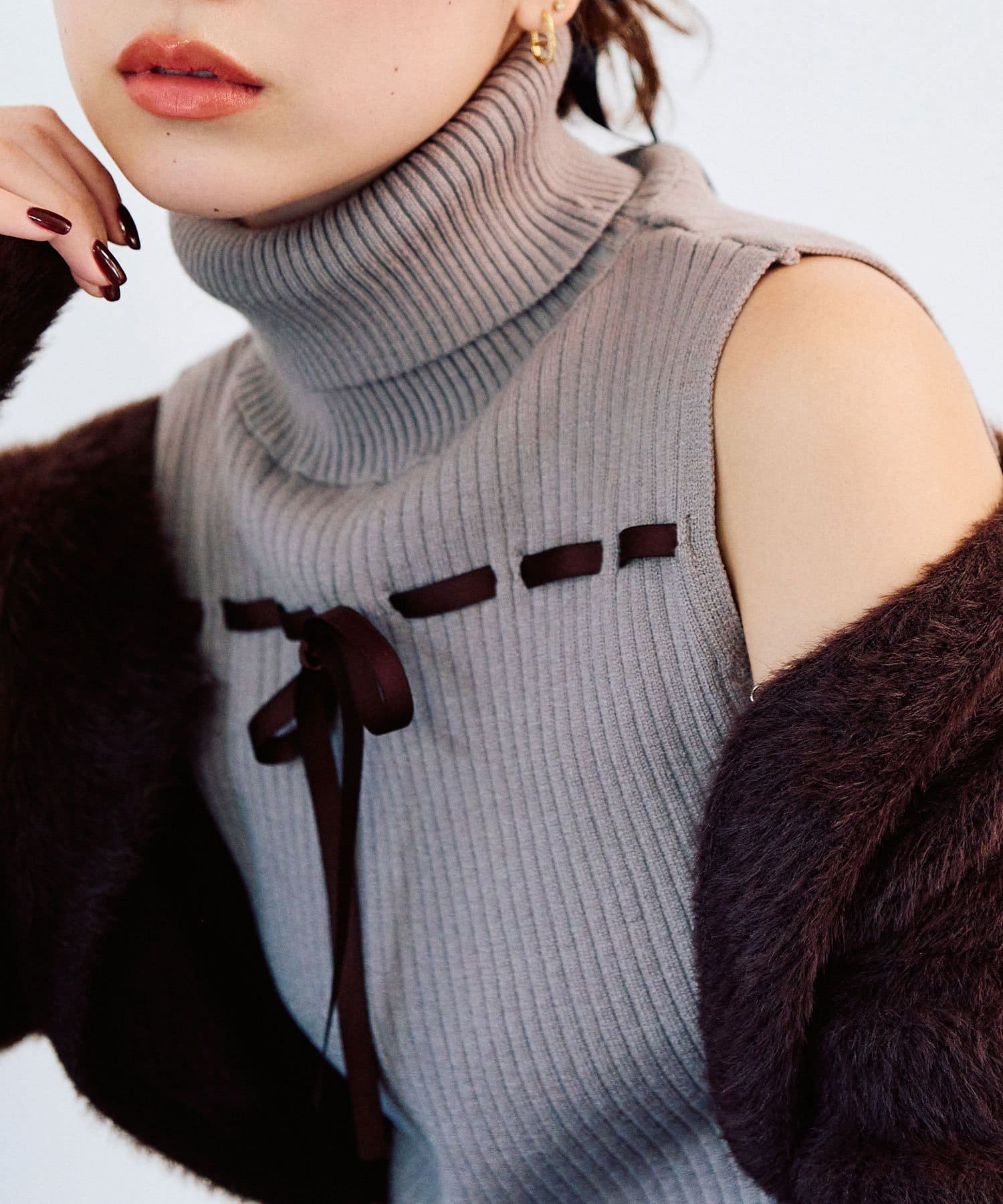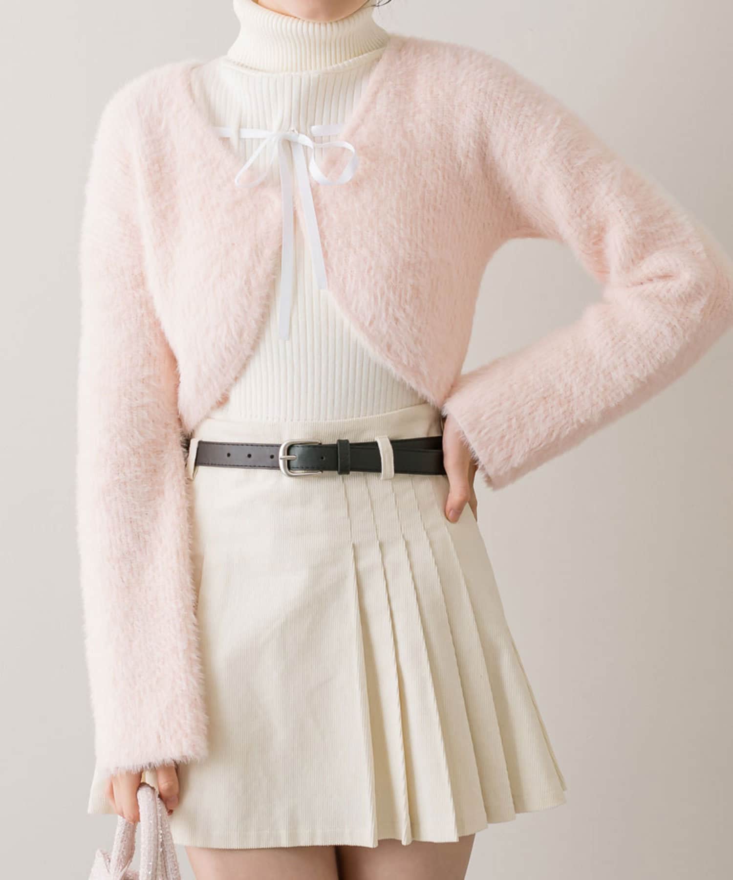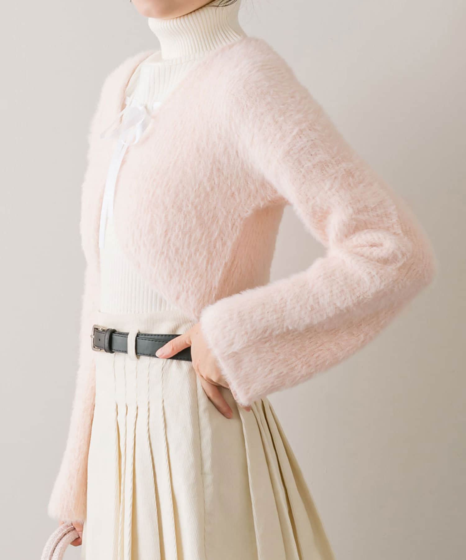 ・ノースリーブのタートルインナーと、フェザーカーディガンの大人可愛いセット。