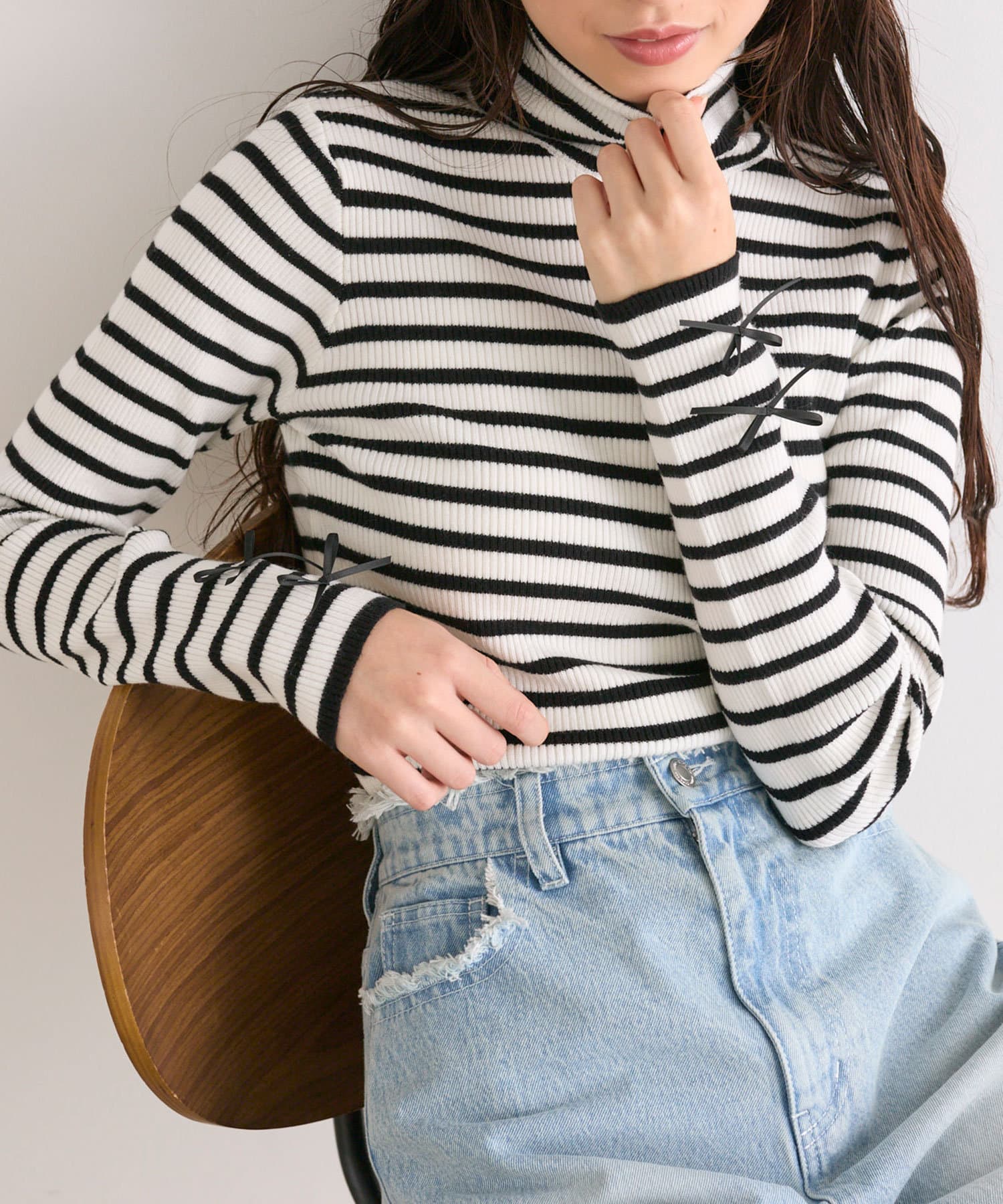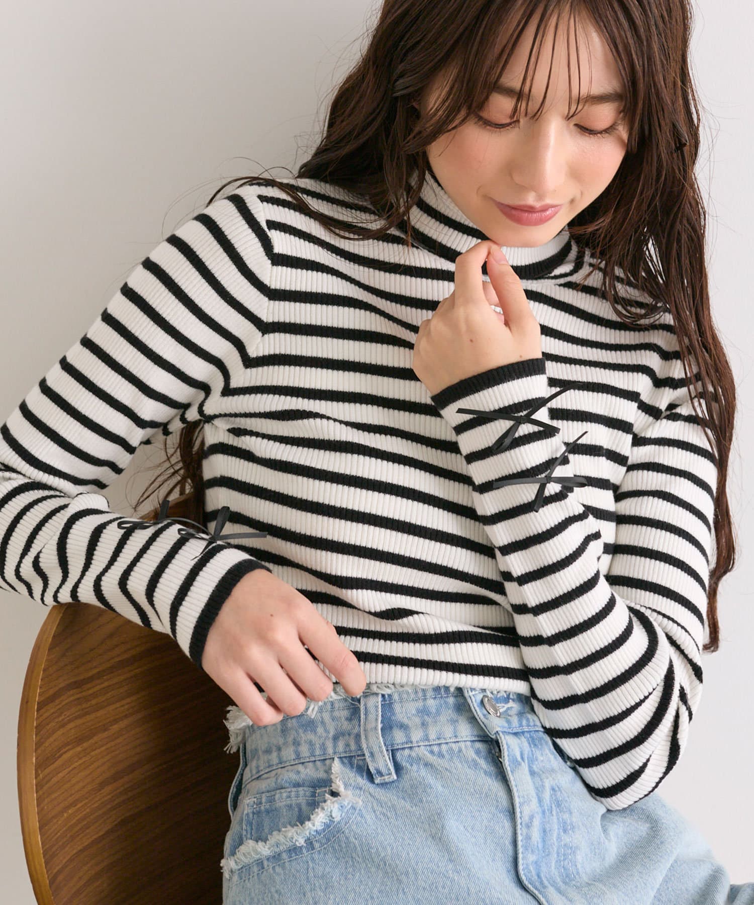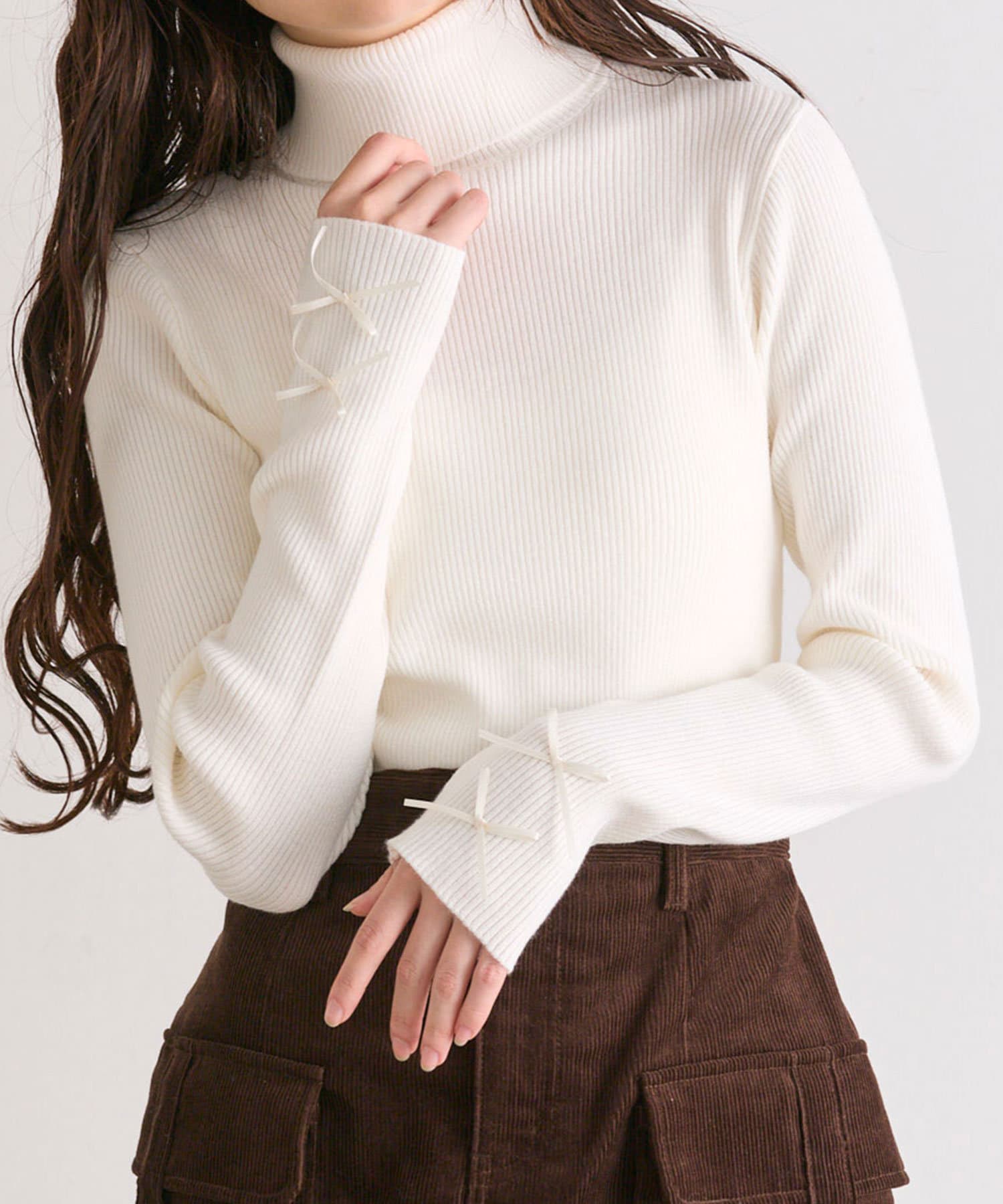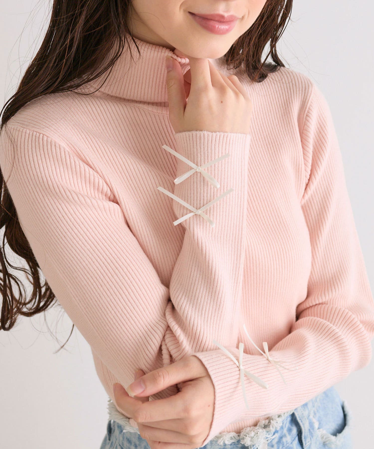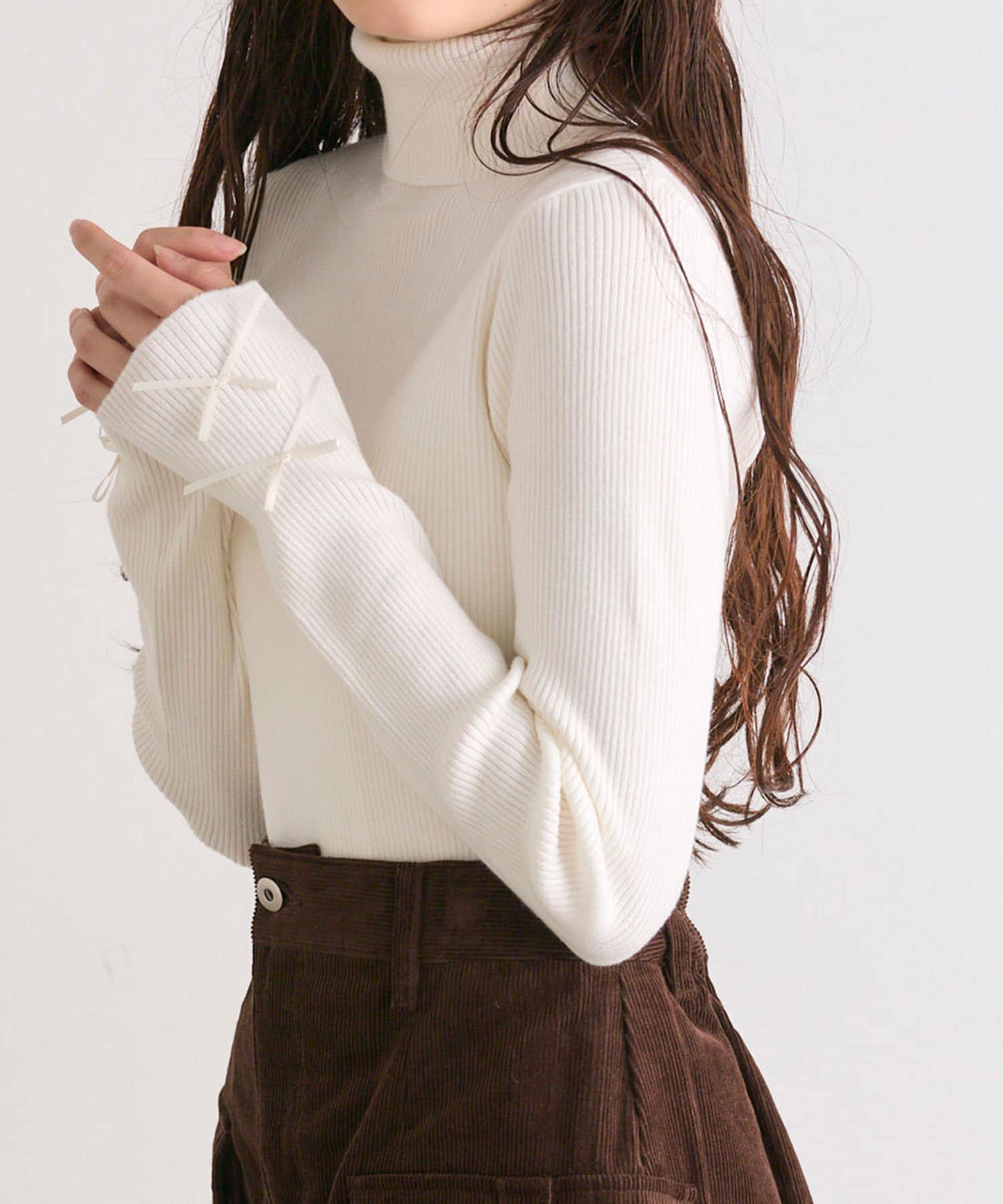 ・袖のリボンがシンプルながらガーリー要素を足してくれるデザインです。