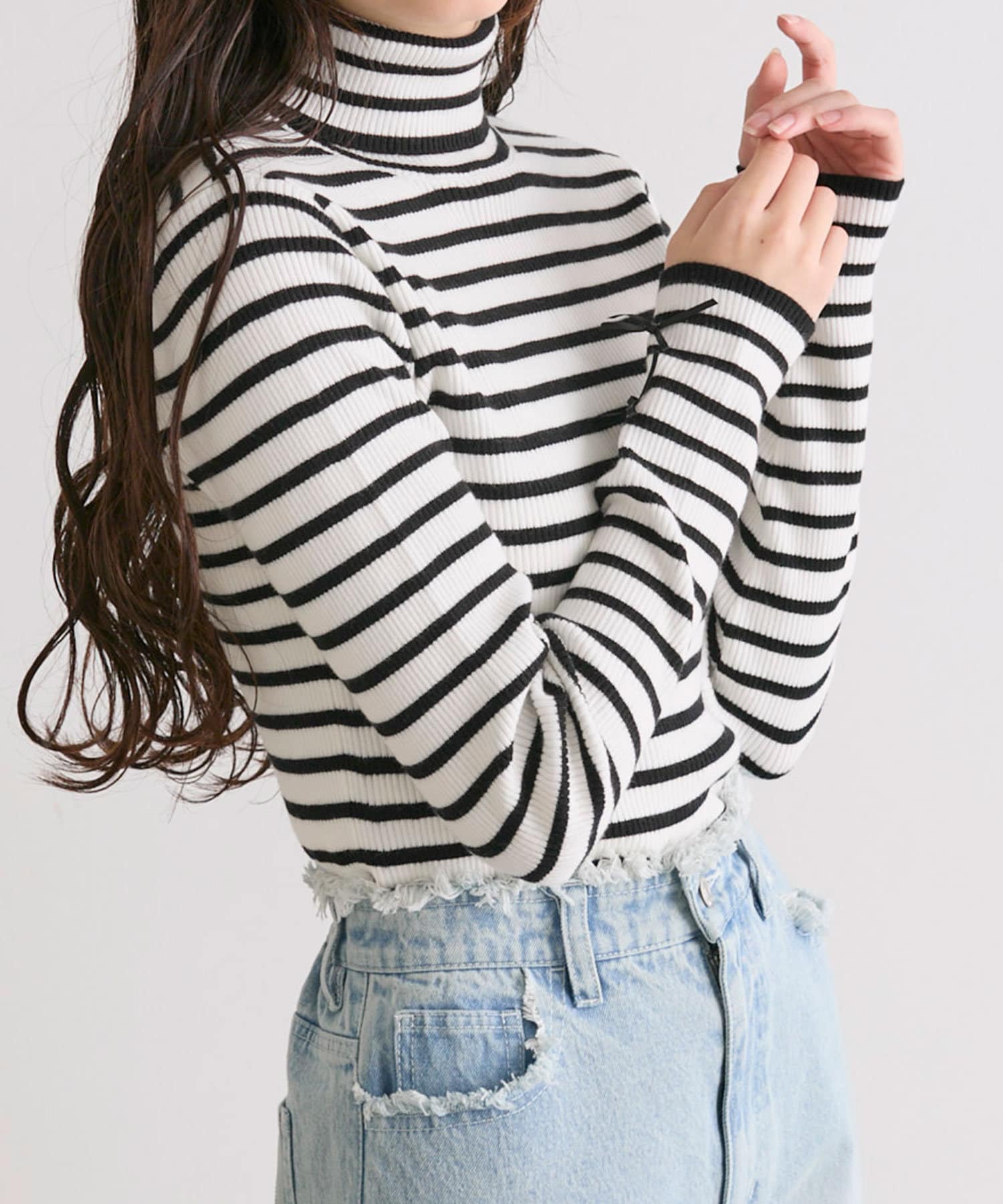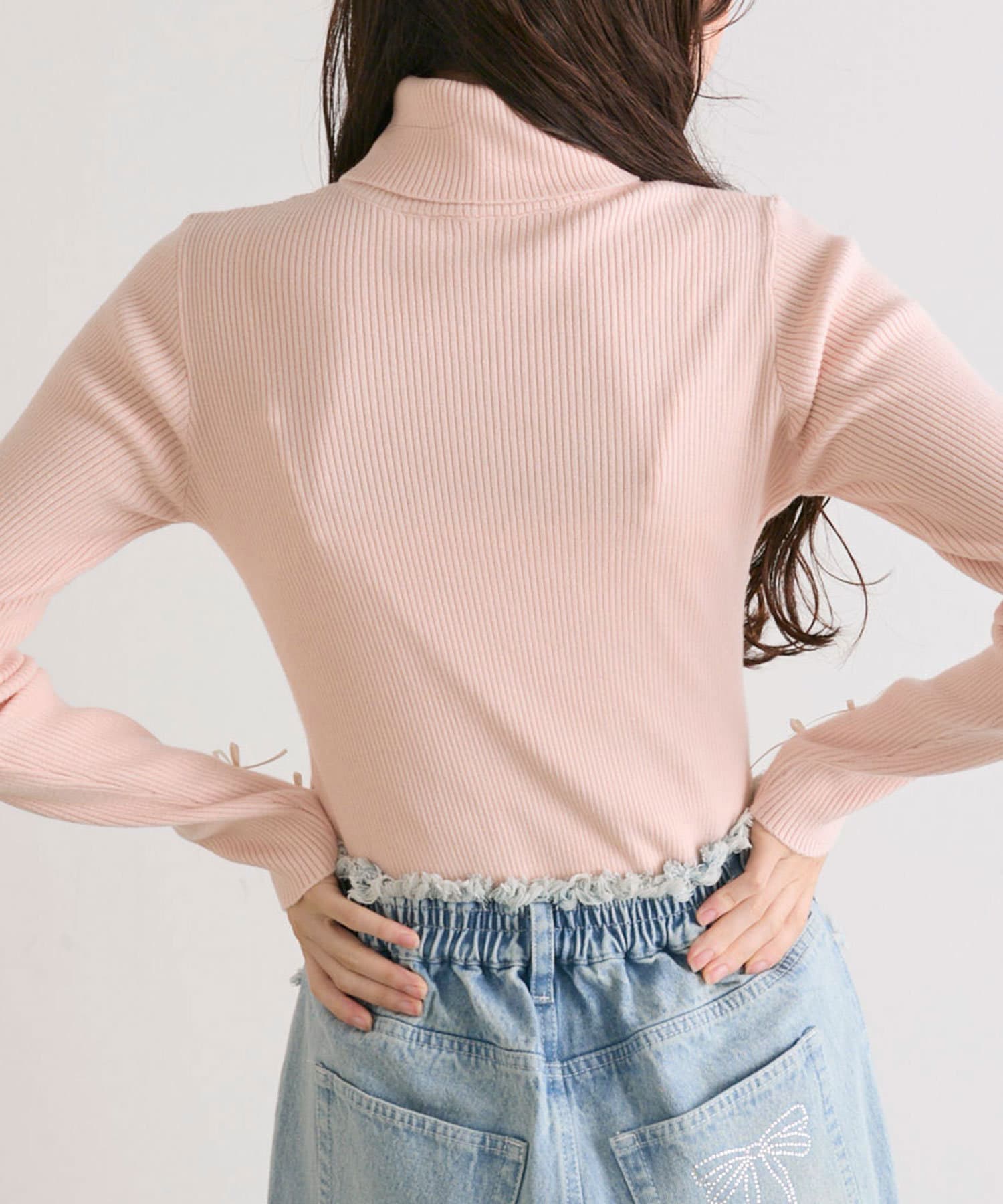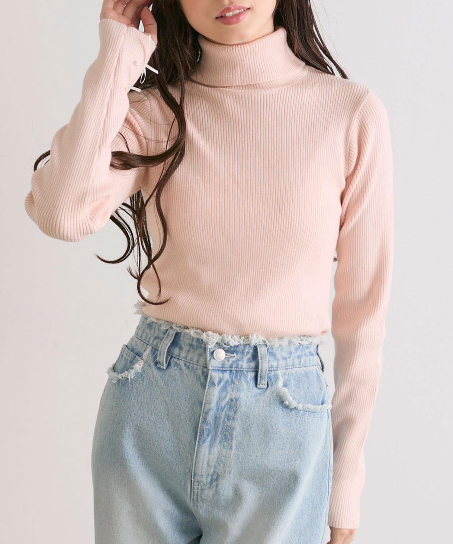 ・シンプルなリブタートルで幅広いコーデに活躍するニット。
