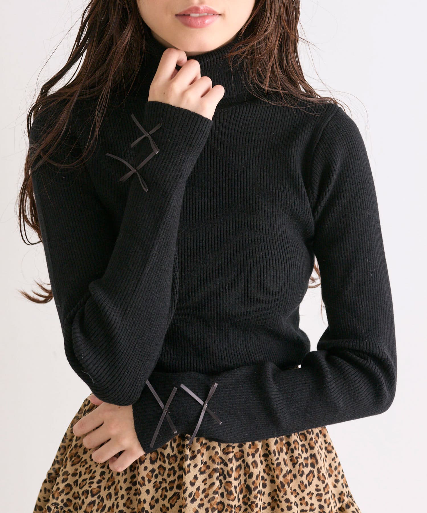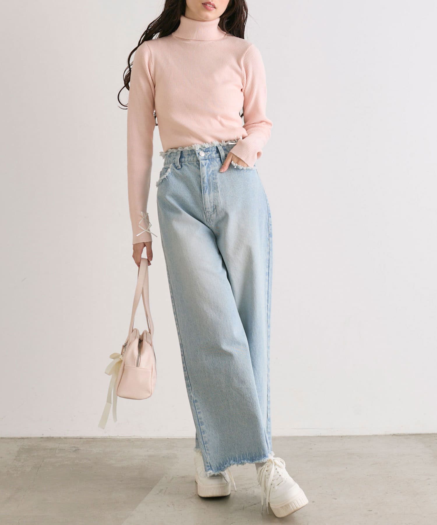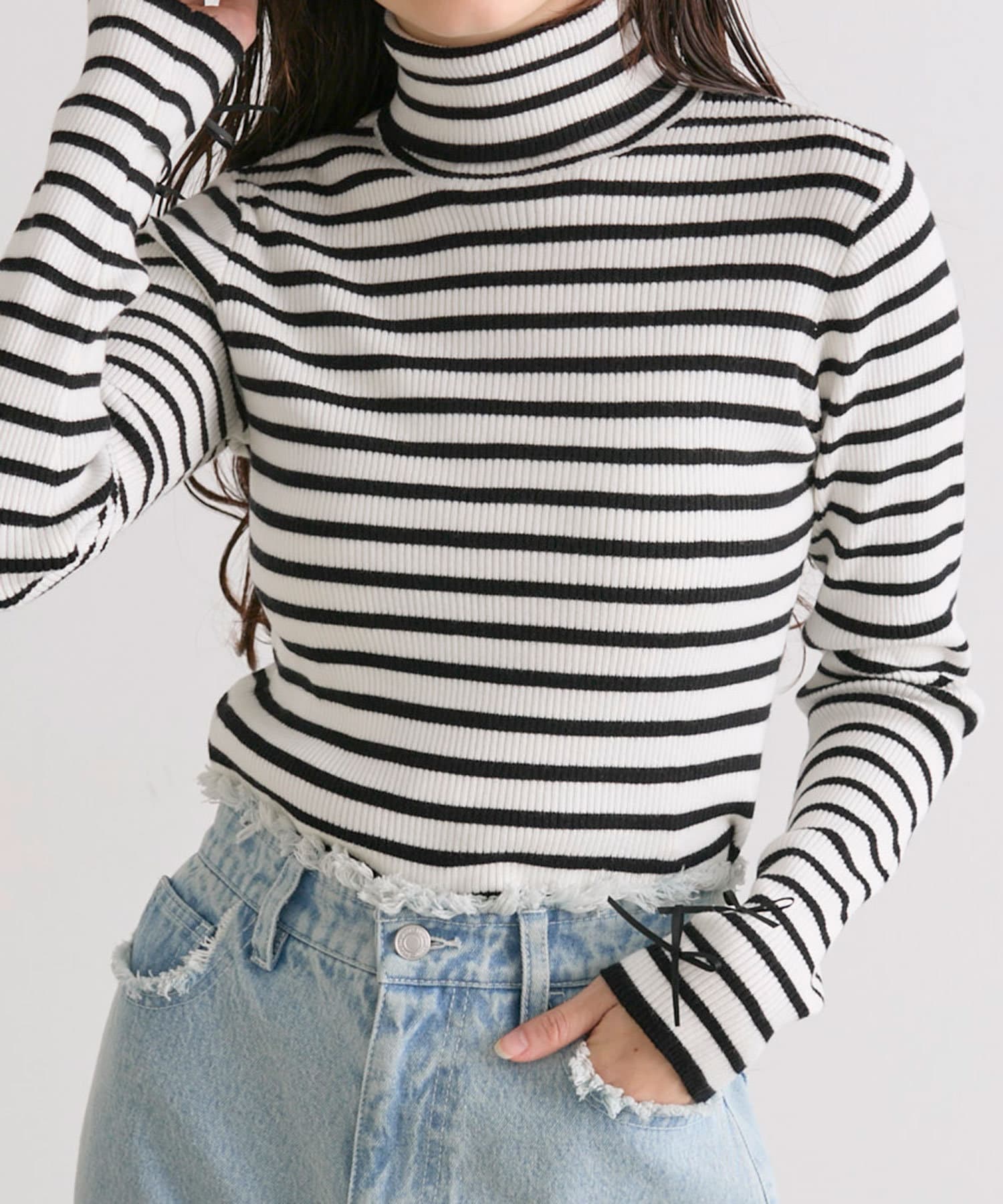 ・シンプルなリブタートルで幅広いコーデに活躍するニット。