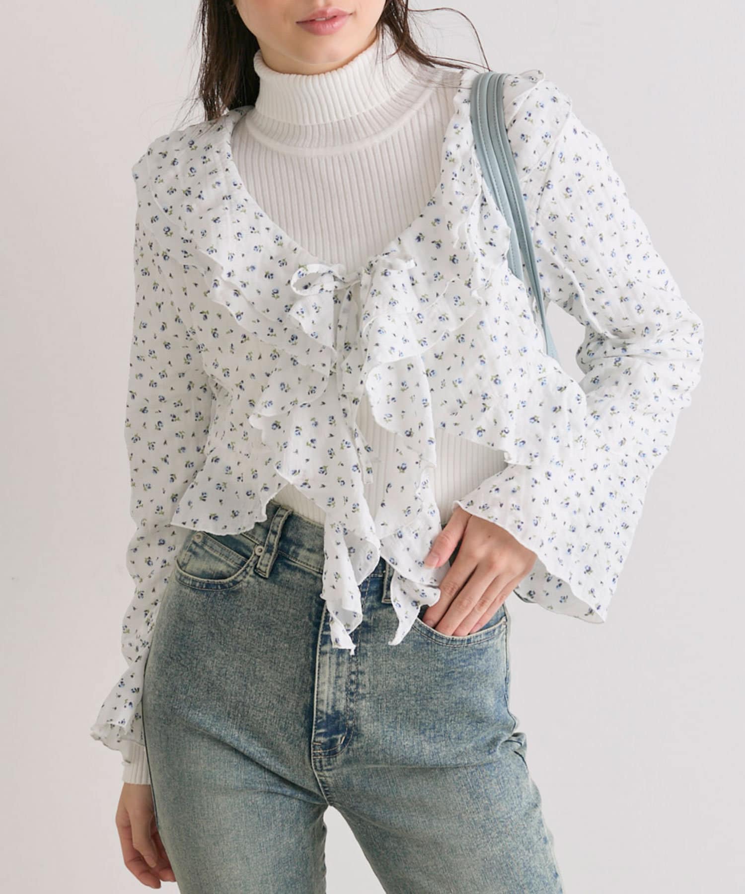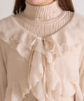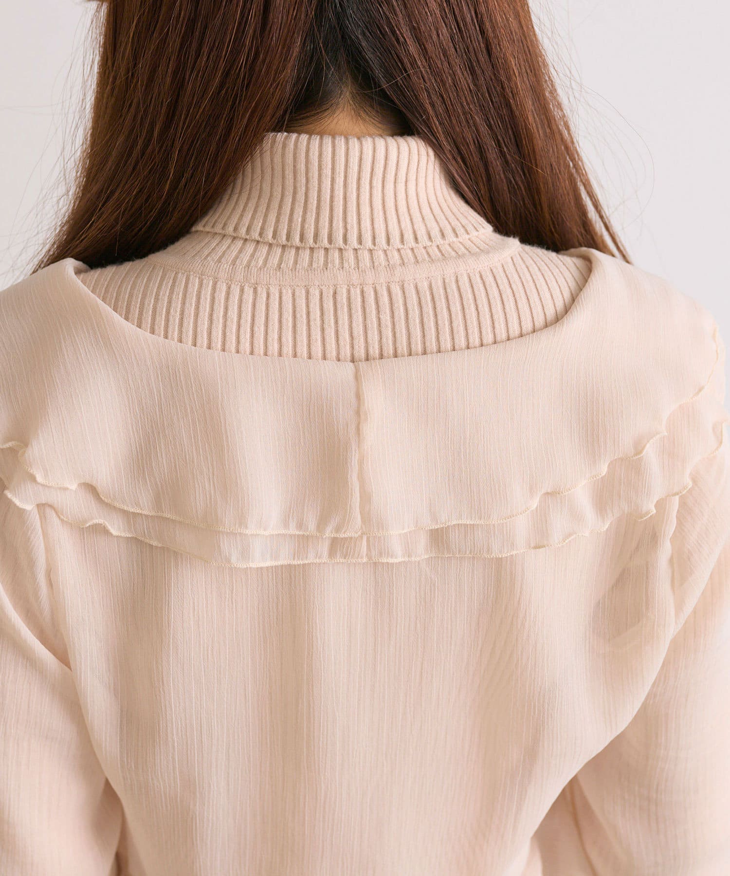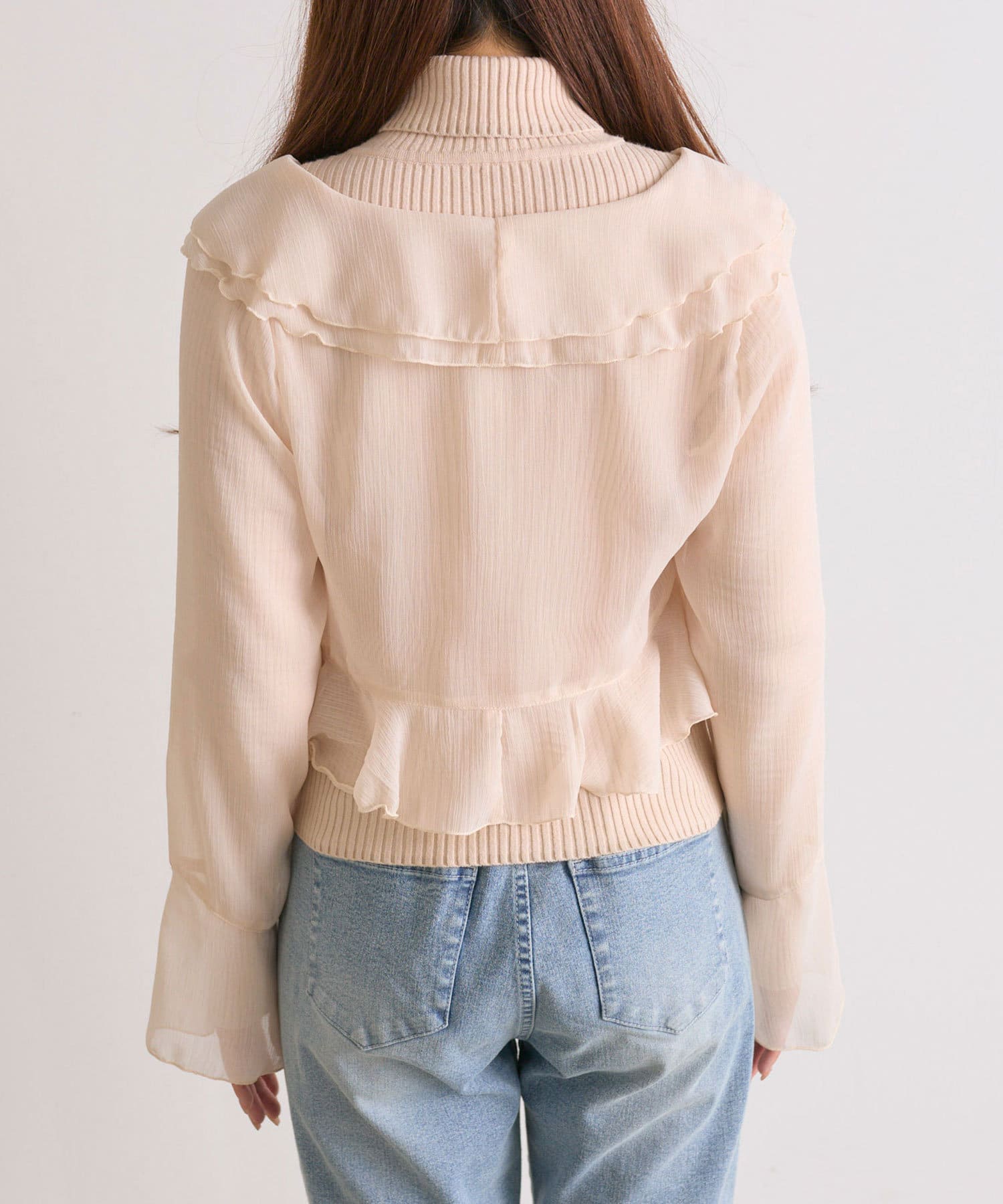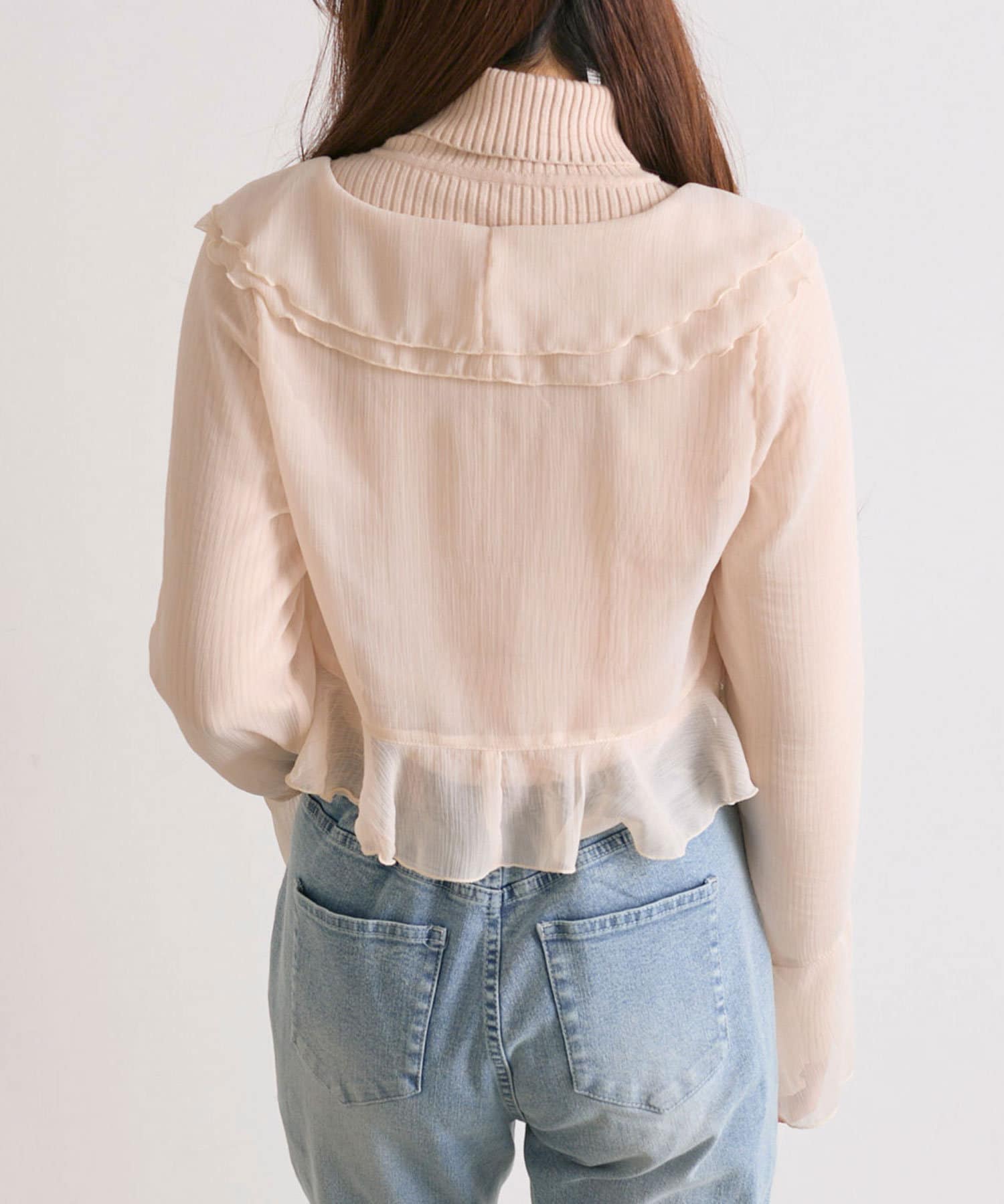 ・シンプルなタートルインナーと、ラッフルデザインがかわいいボレロのセットアイテム。