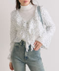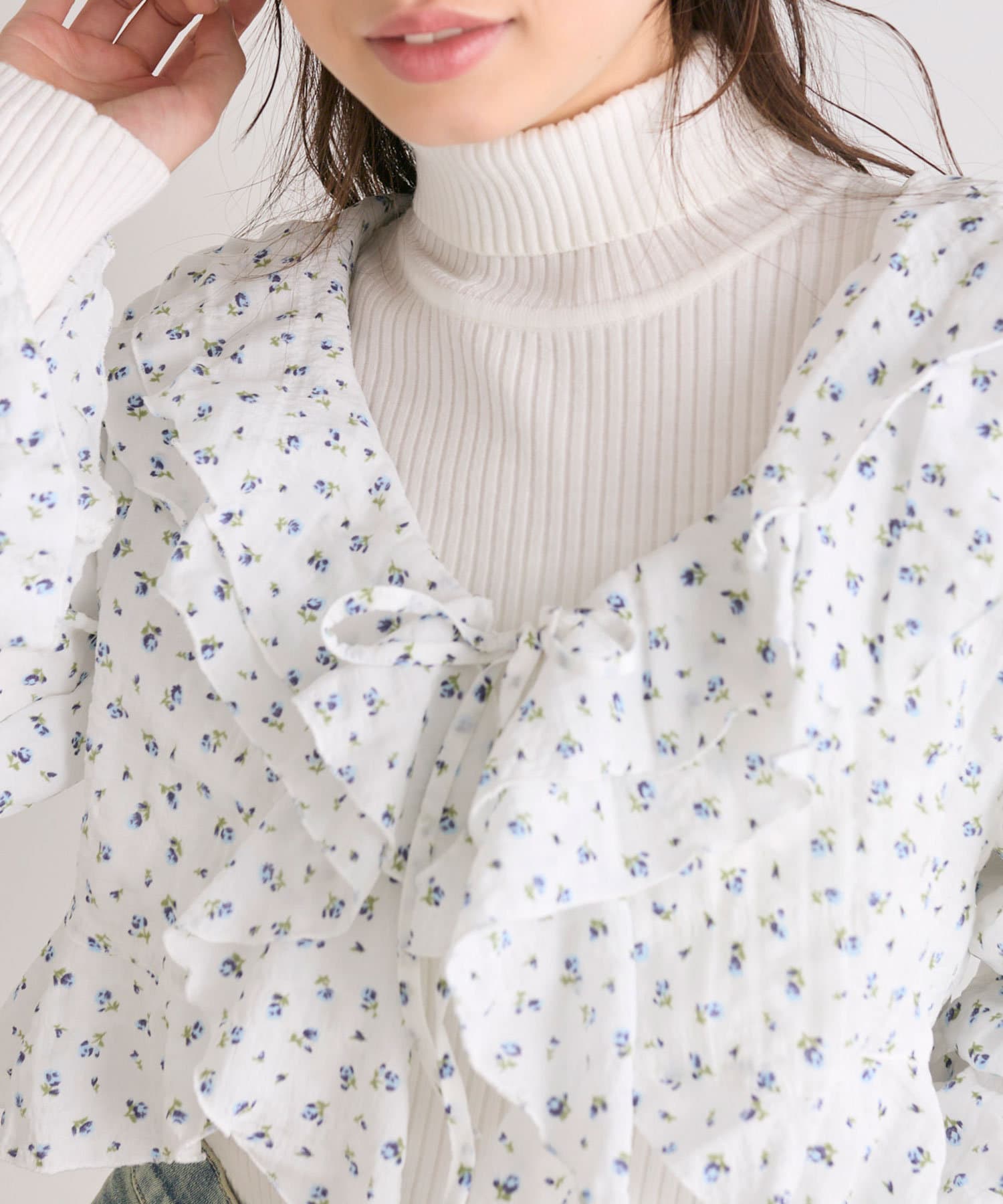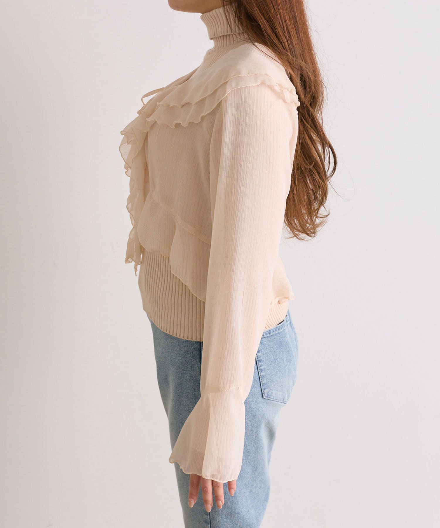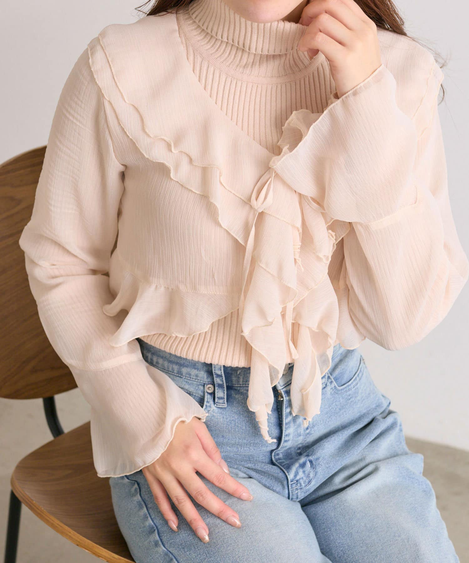 ・シンプルなタートルインナーと、ラッフルデザインがかわいいボレロのセットアイテム。