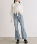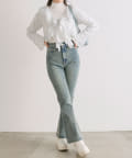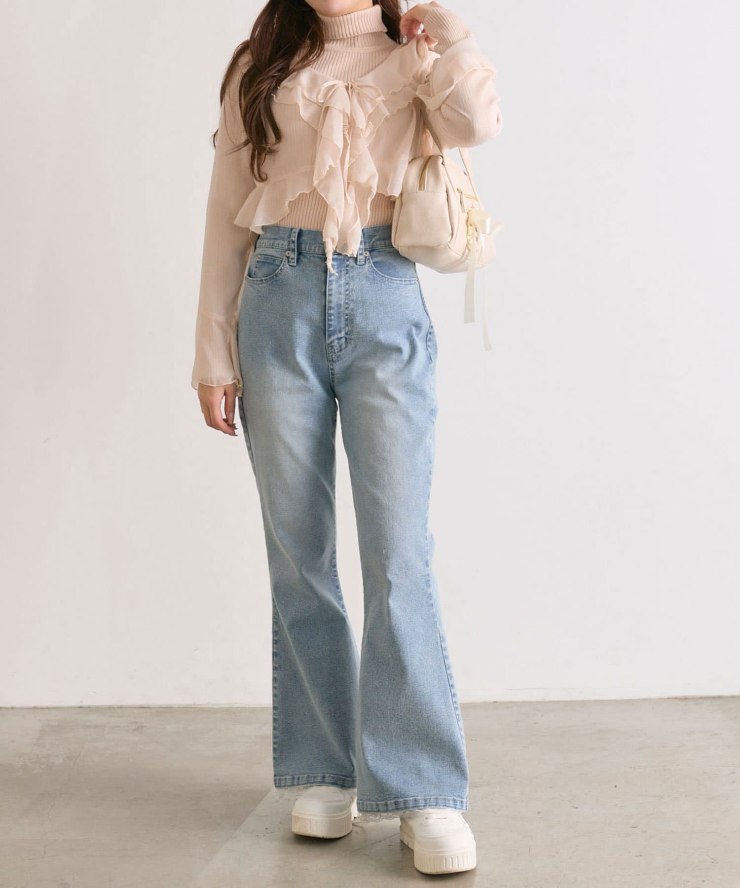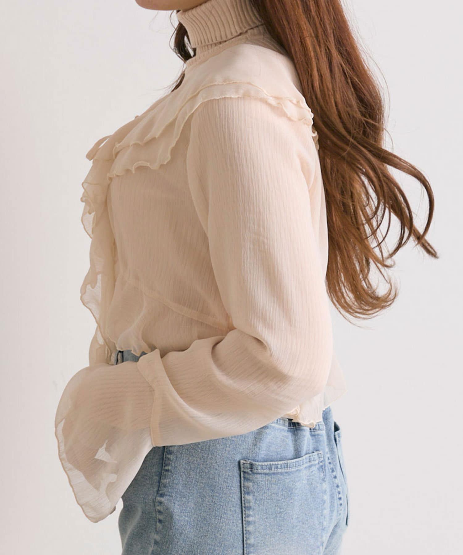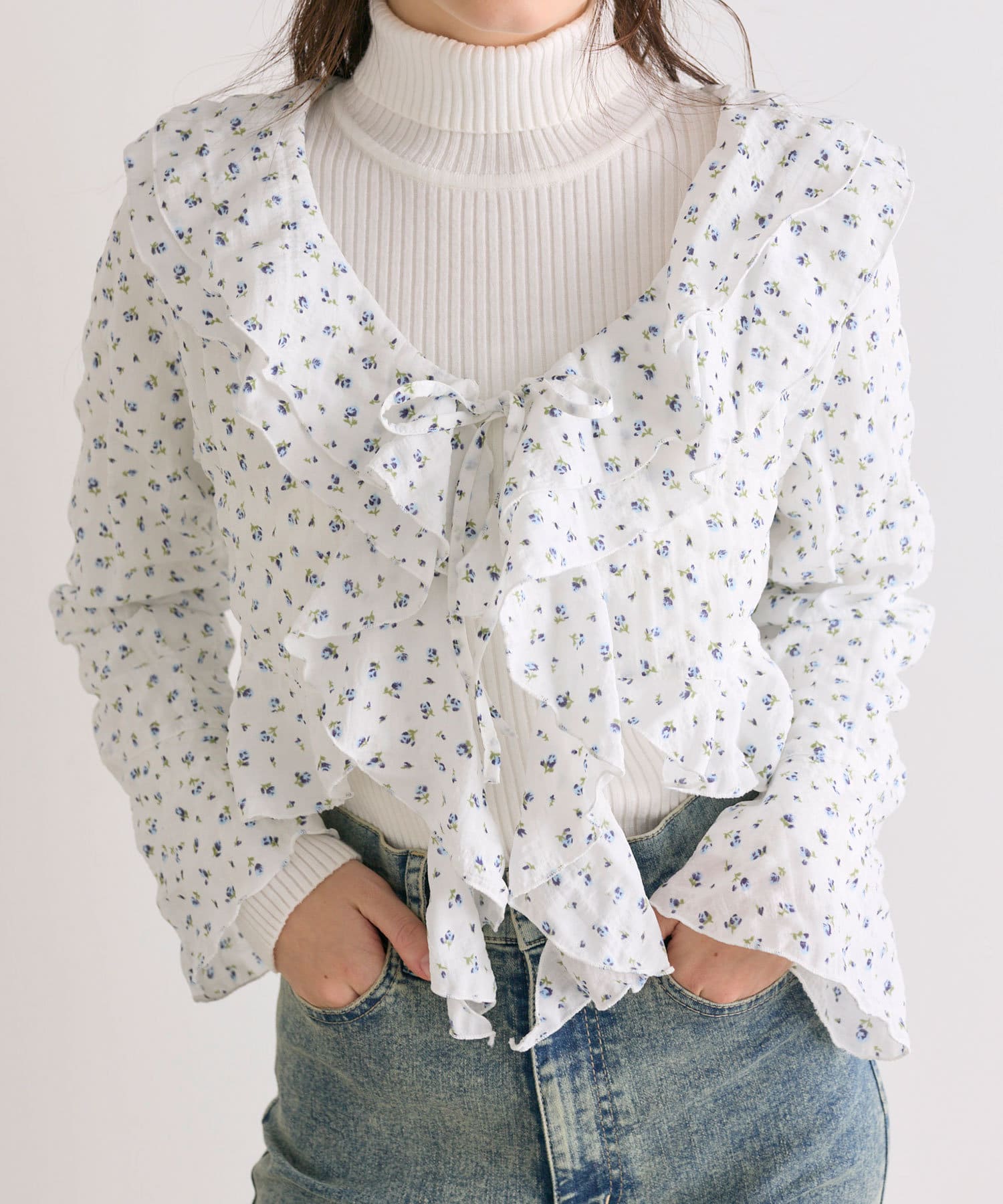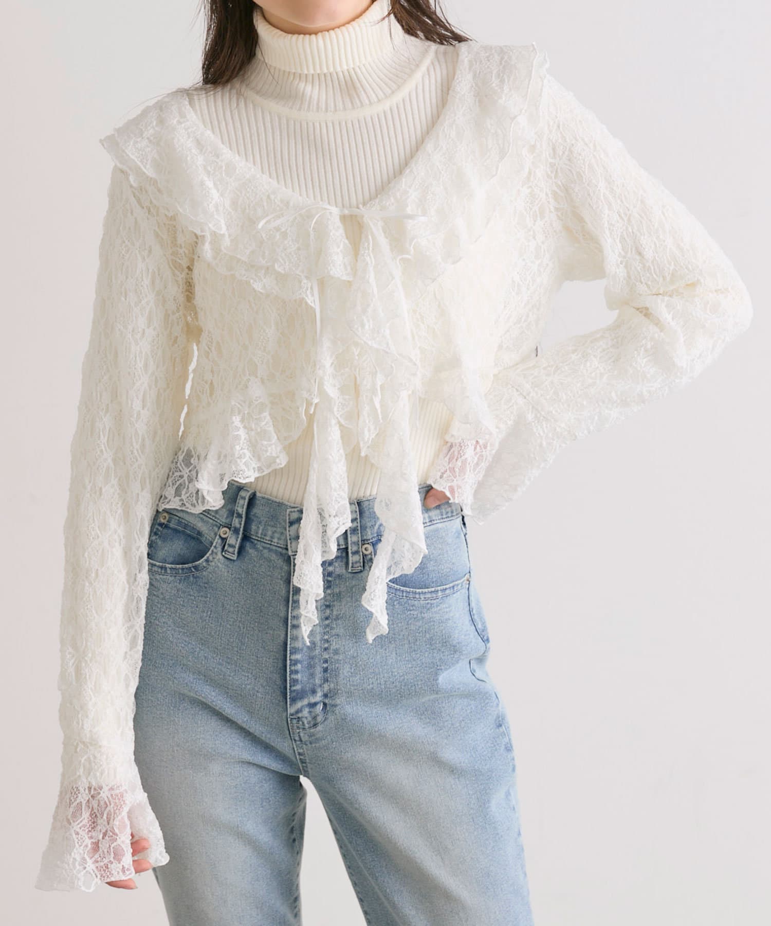 ・シンプルなタートルインナーと、ラッフルデザインがかわいいボレロのセットアイテム。