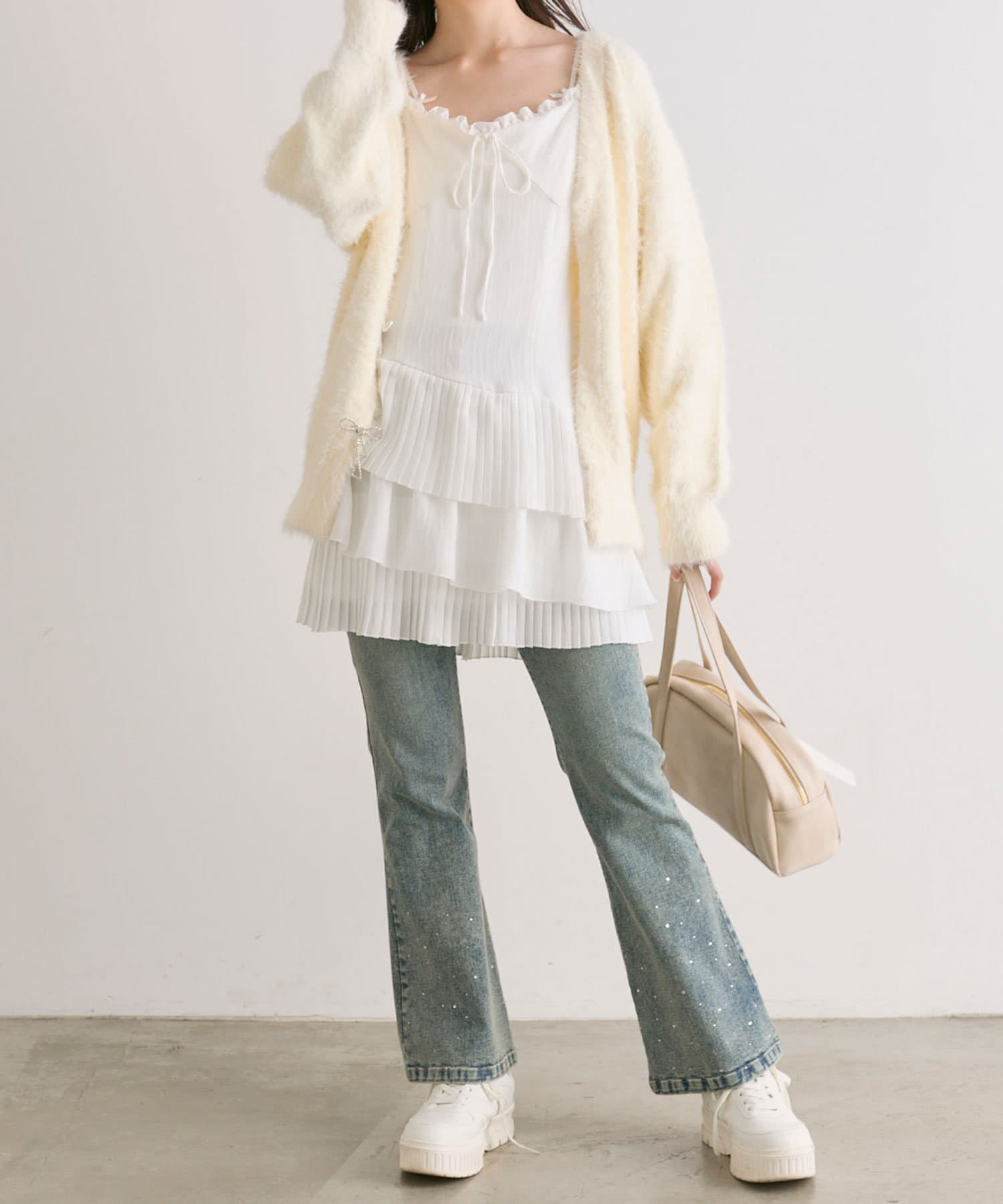 • OLIVE des OLIVE(オリーブ デ オリーブ) フェザーリボンビジューカーデ