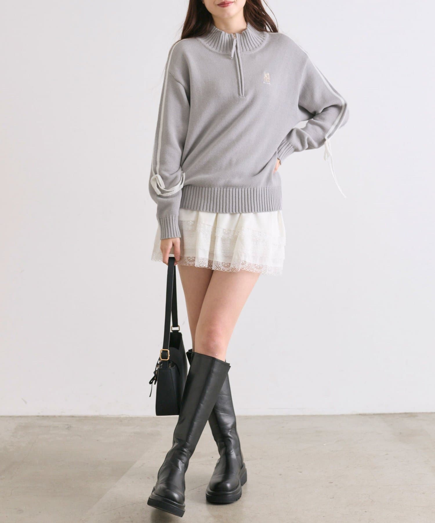 ・人気のデザインを取り入れたトレンド感のあるハーフジップニット。