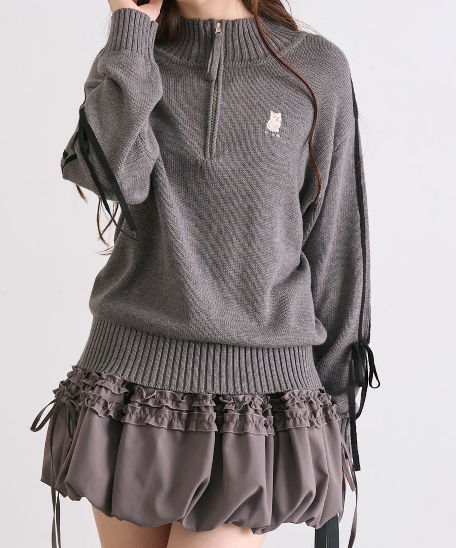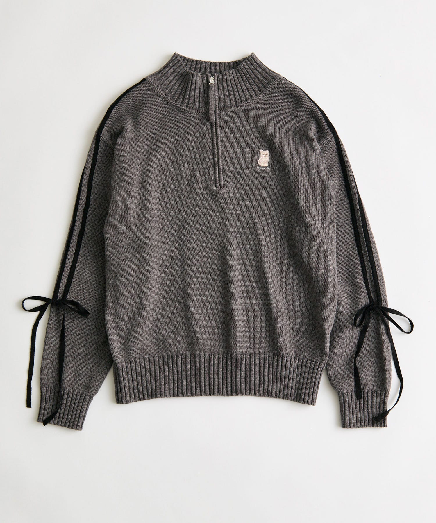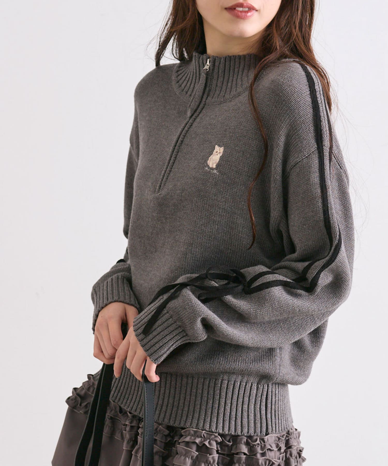 大人気のネコ刺繍と袖リボンが合わさったアイテム