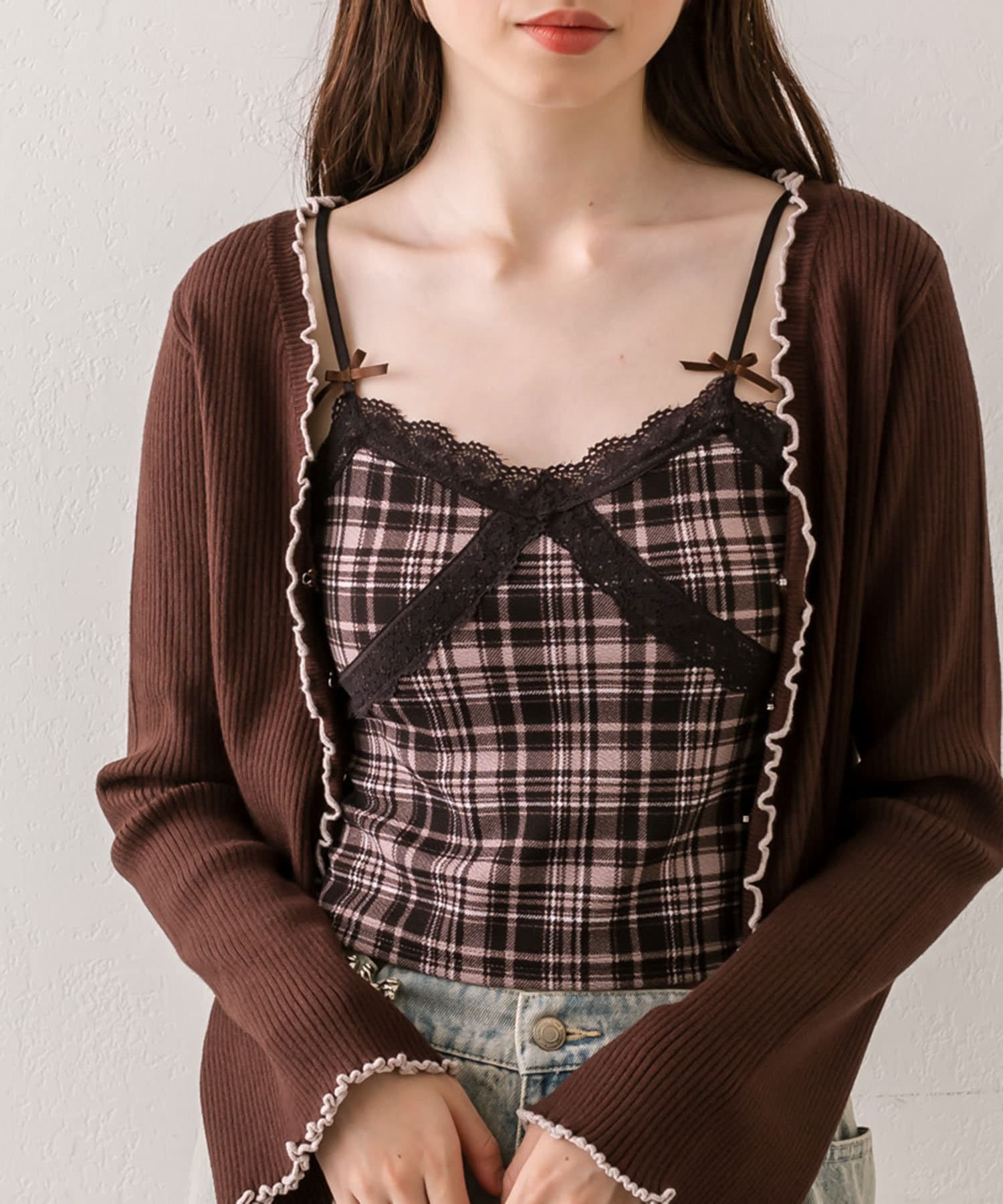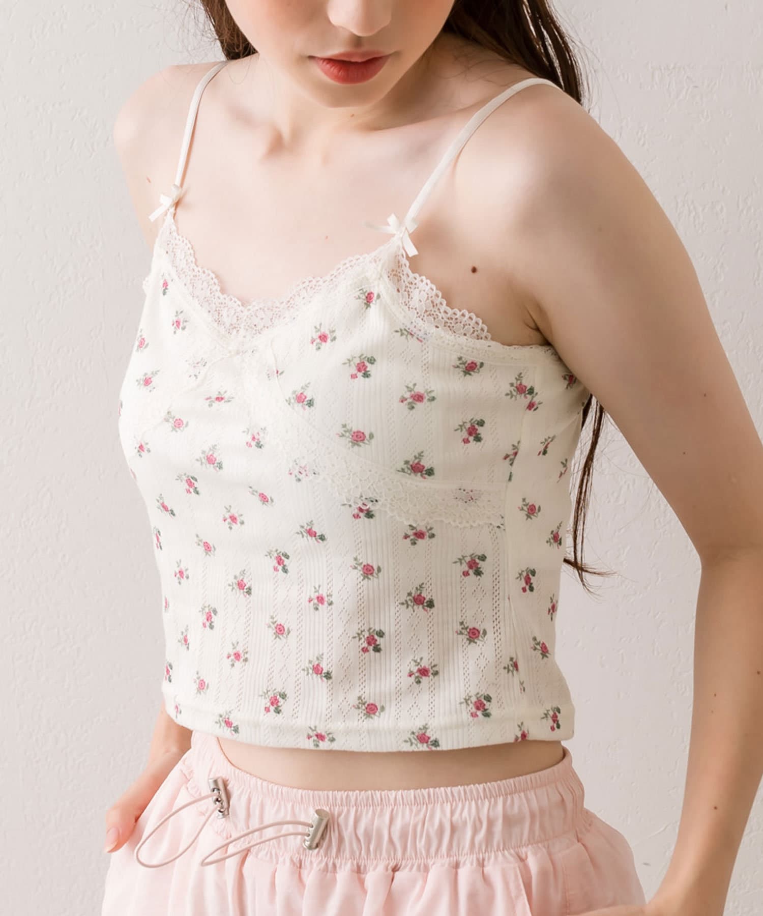 ・華奢なリボンやレース付きでガーリーな見た目が可愛いキャミソール。