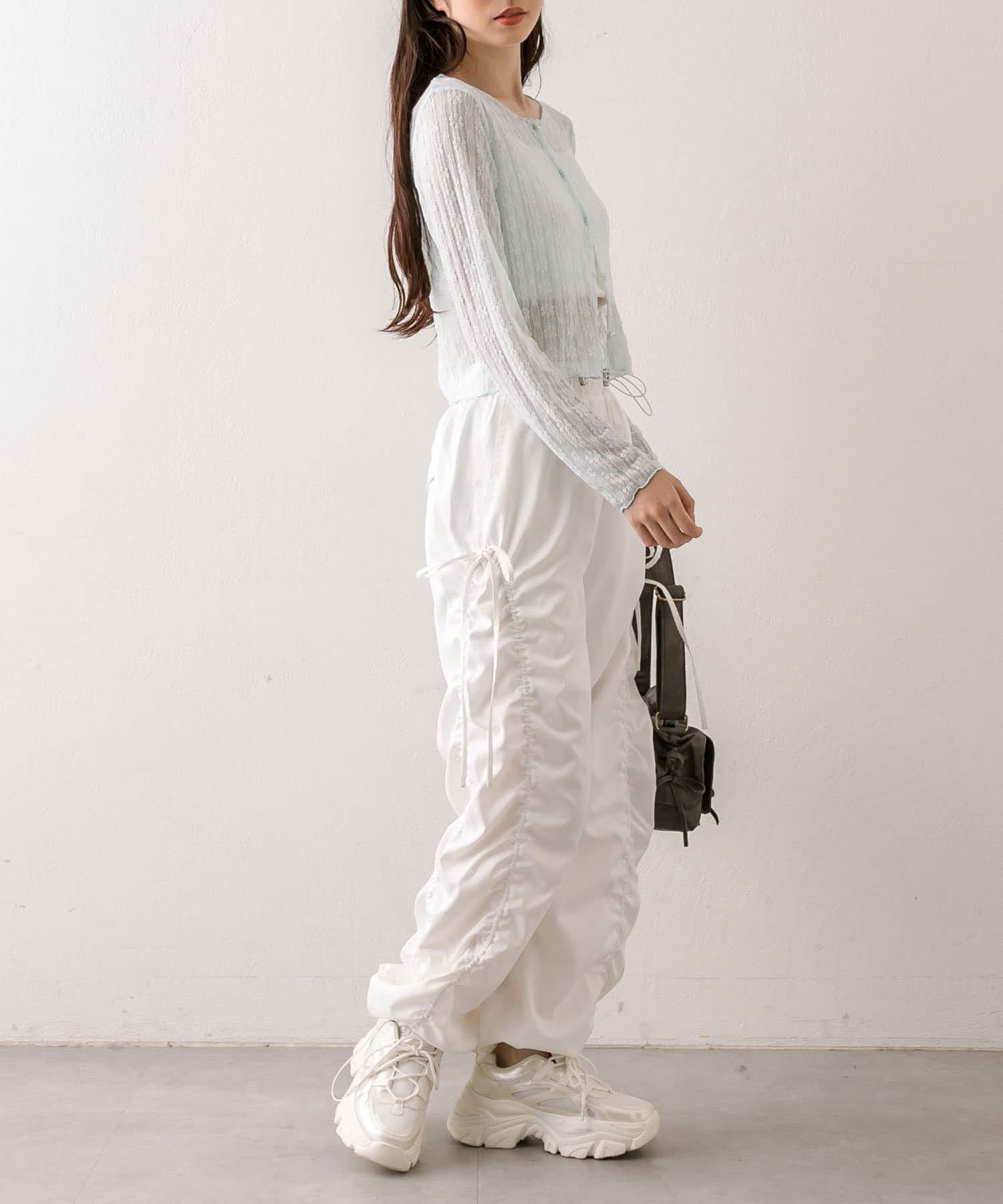 ・カジュアルなデニムからガーリーなスカートまで幅広く合わせやすいデザインです。