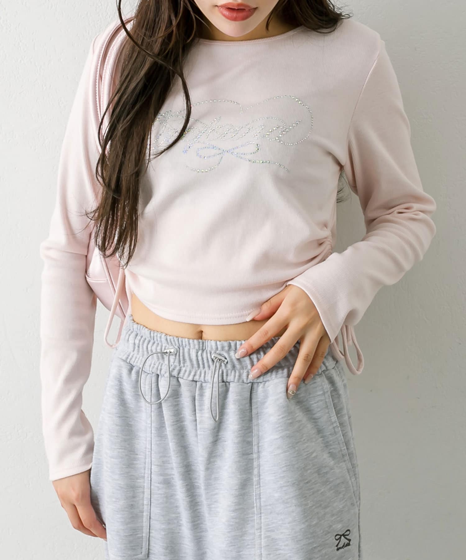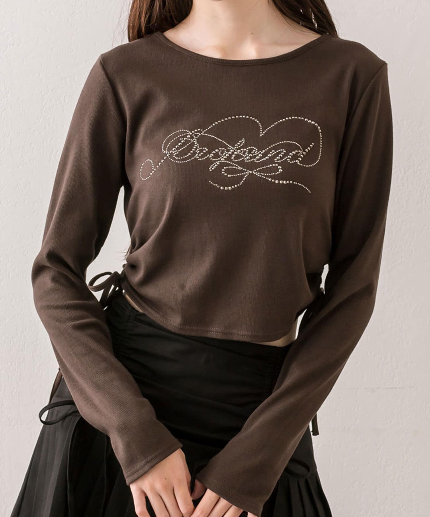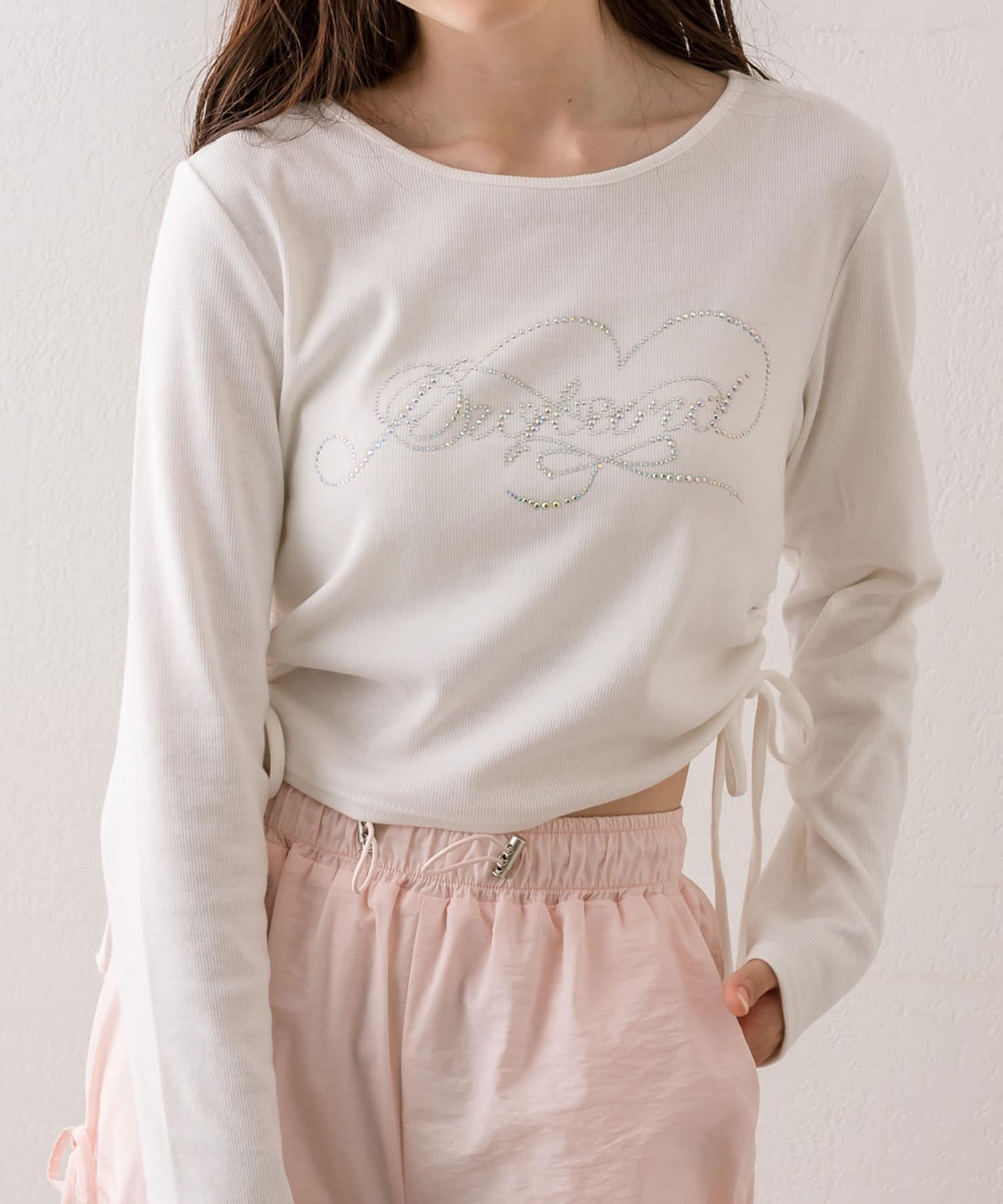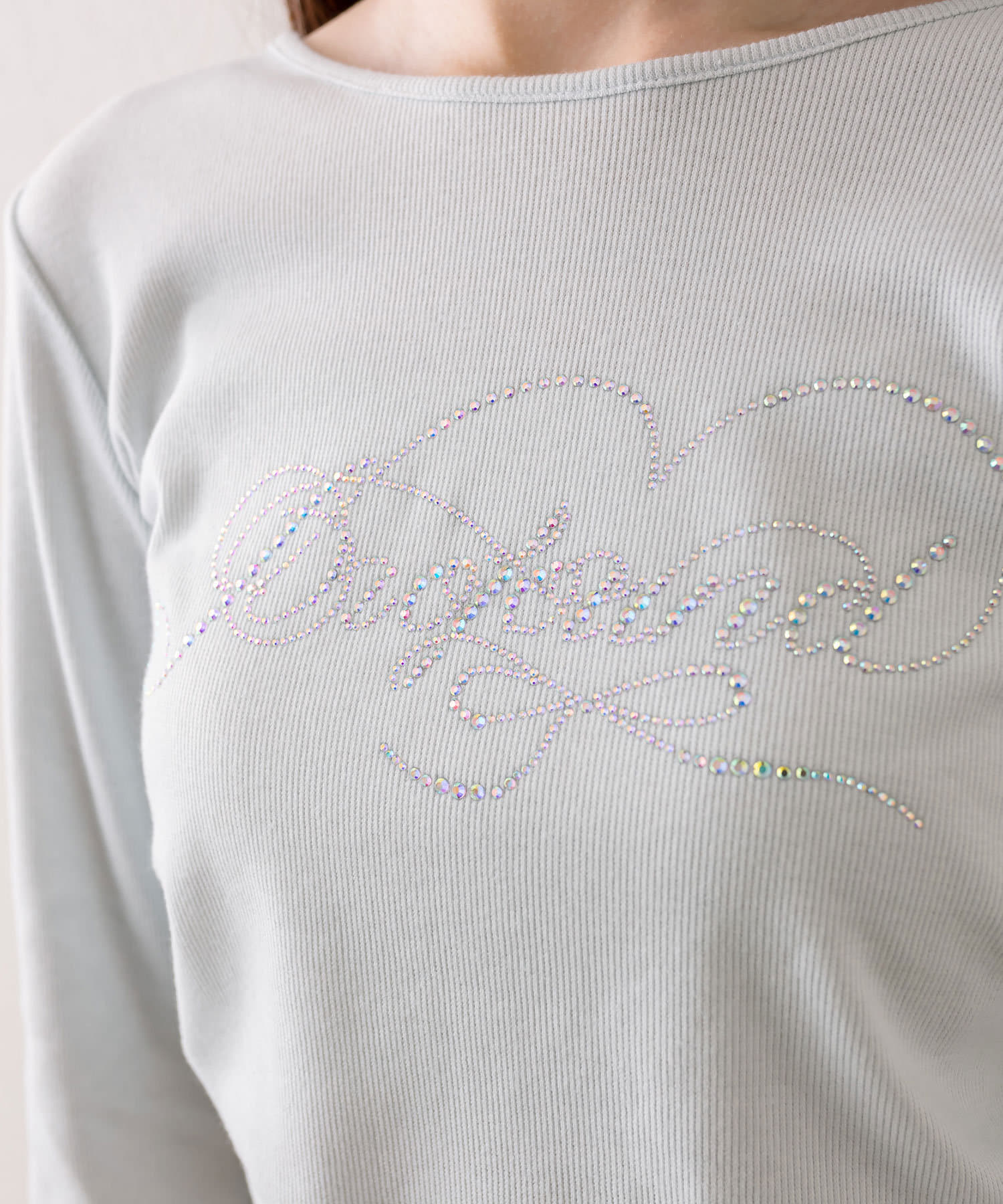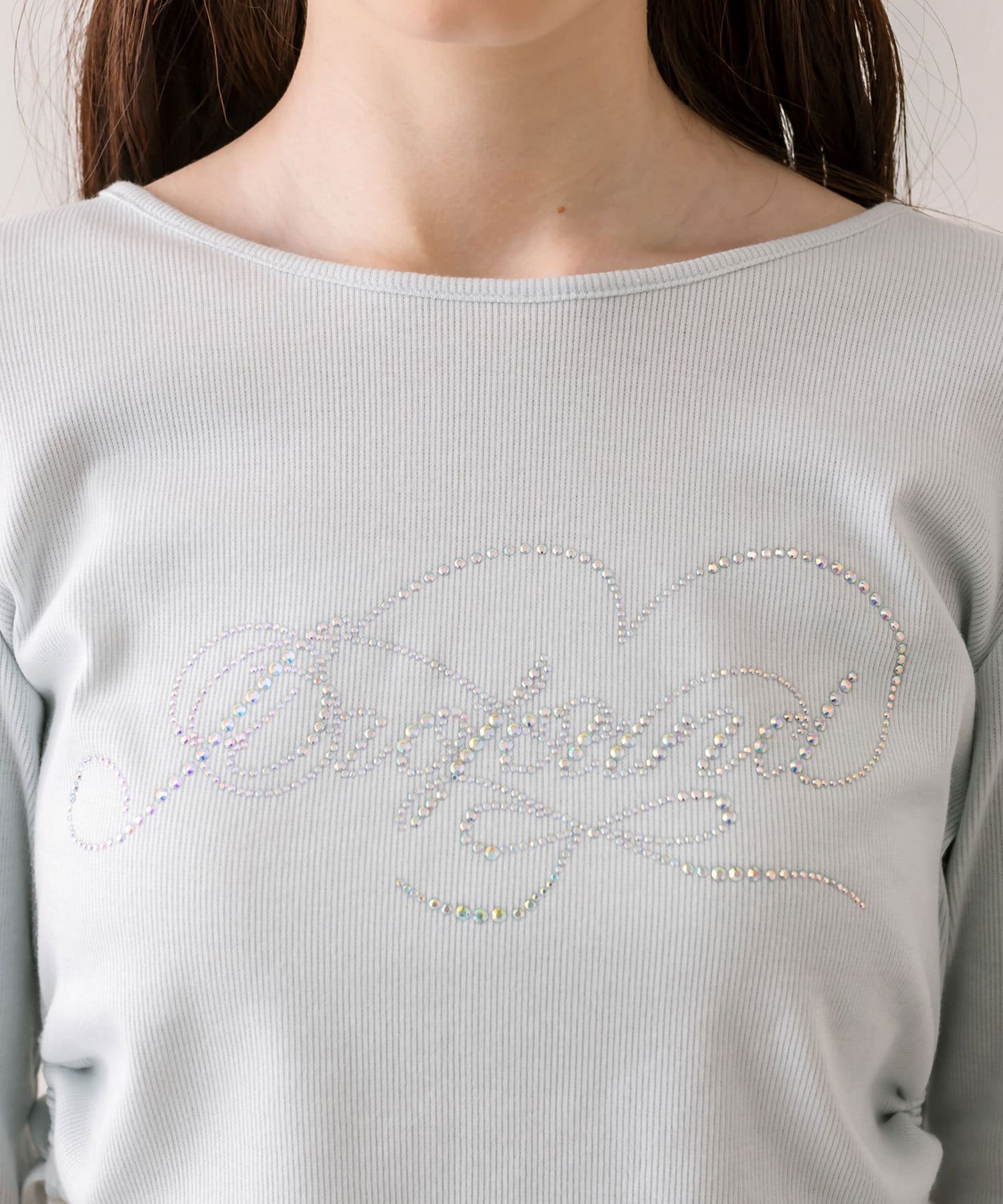 ・胸元のロゴがきらきらしたラインストーンで目を惹くデザイン。