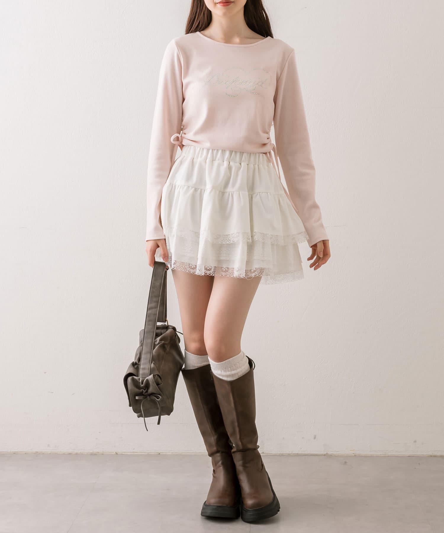 ・甘さをプラスしたい方はミニスカートで合わせても可愛いです。