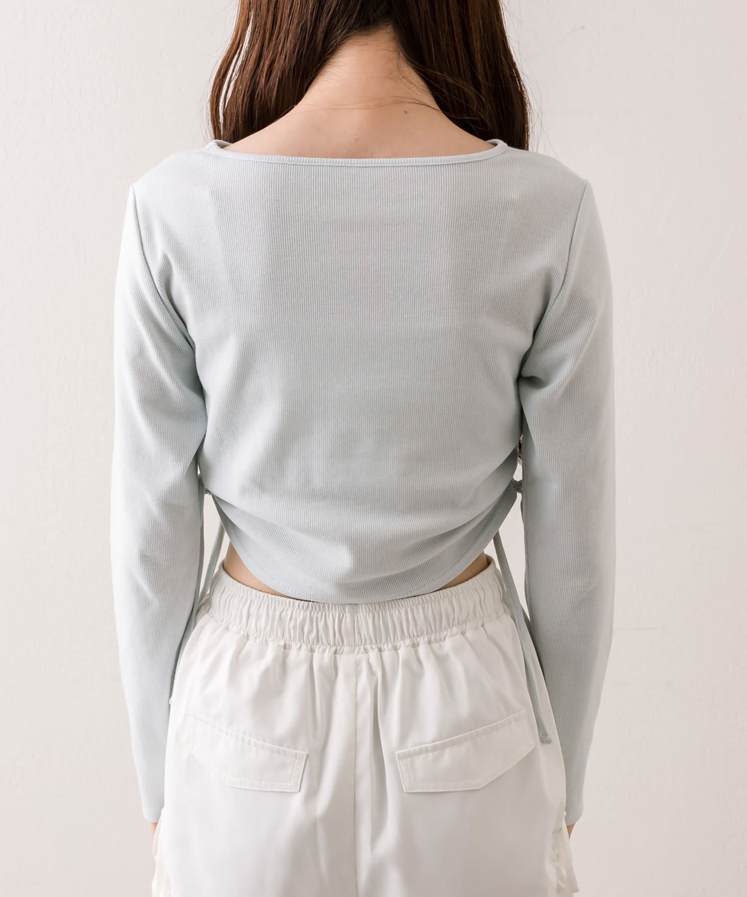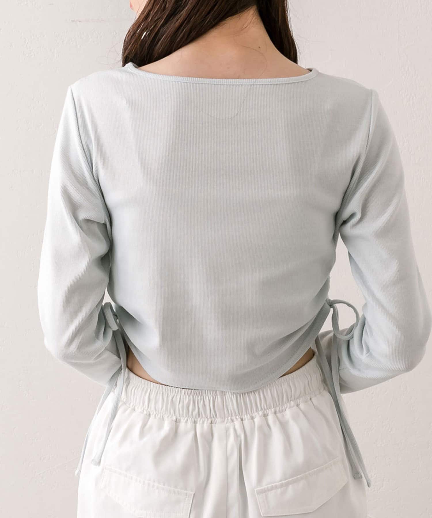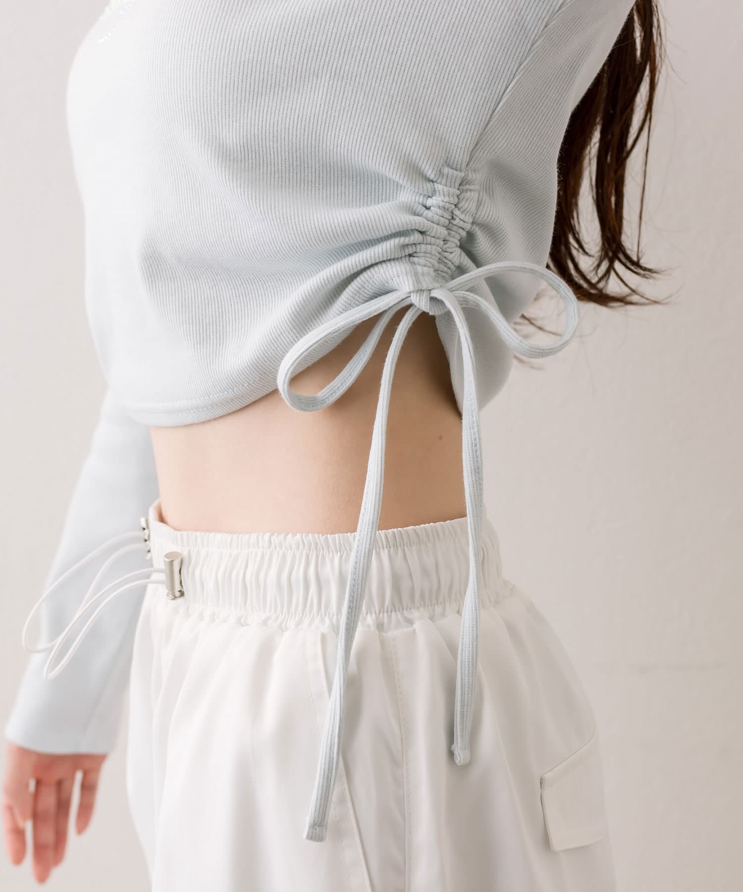 ・ドロストは調節可能で肌見せしたい方は強めに絞ったり、肌見せを押さえたい方は下げて着ていただけます。