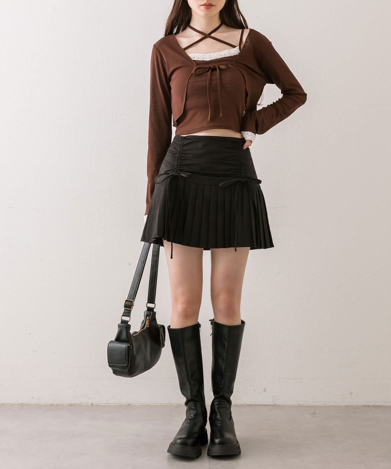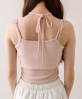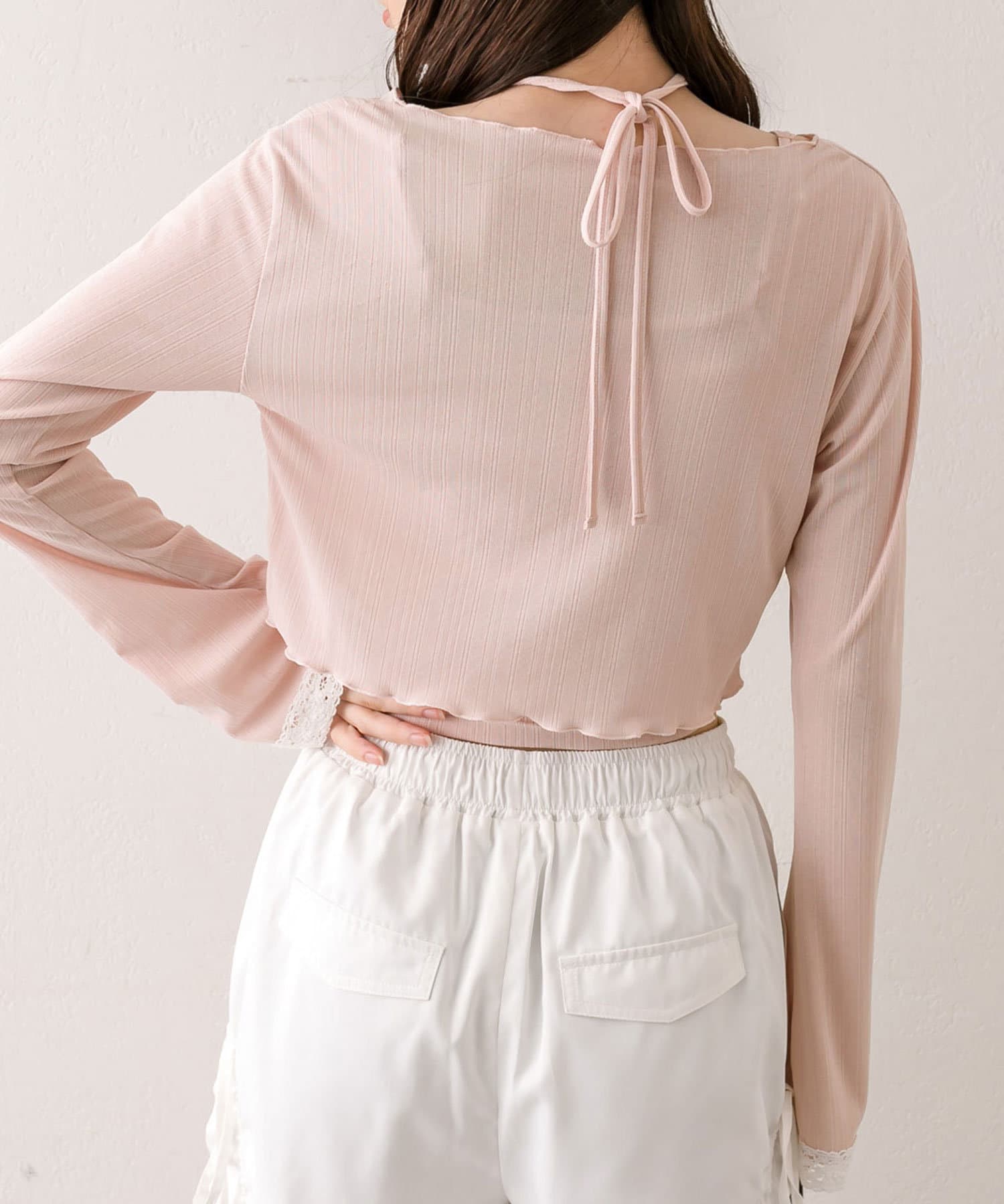 ・インナーは伸縮性のあるリブ素材で着心地よく、ホルターネックデザインなので後ろ姿もかわいく着れます。