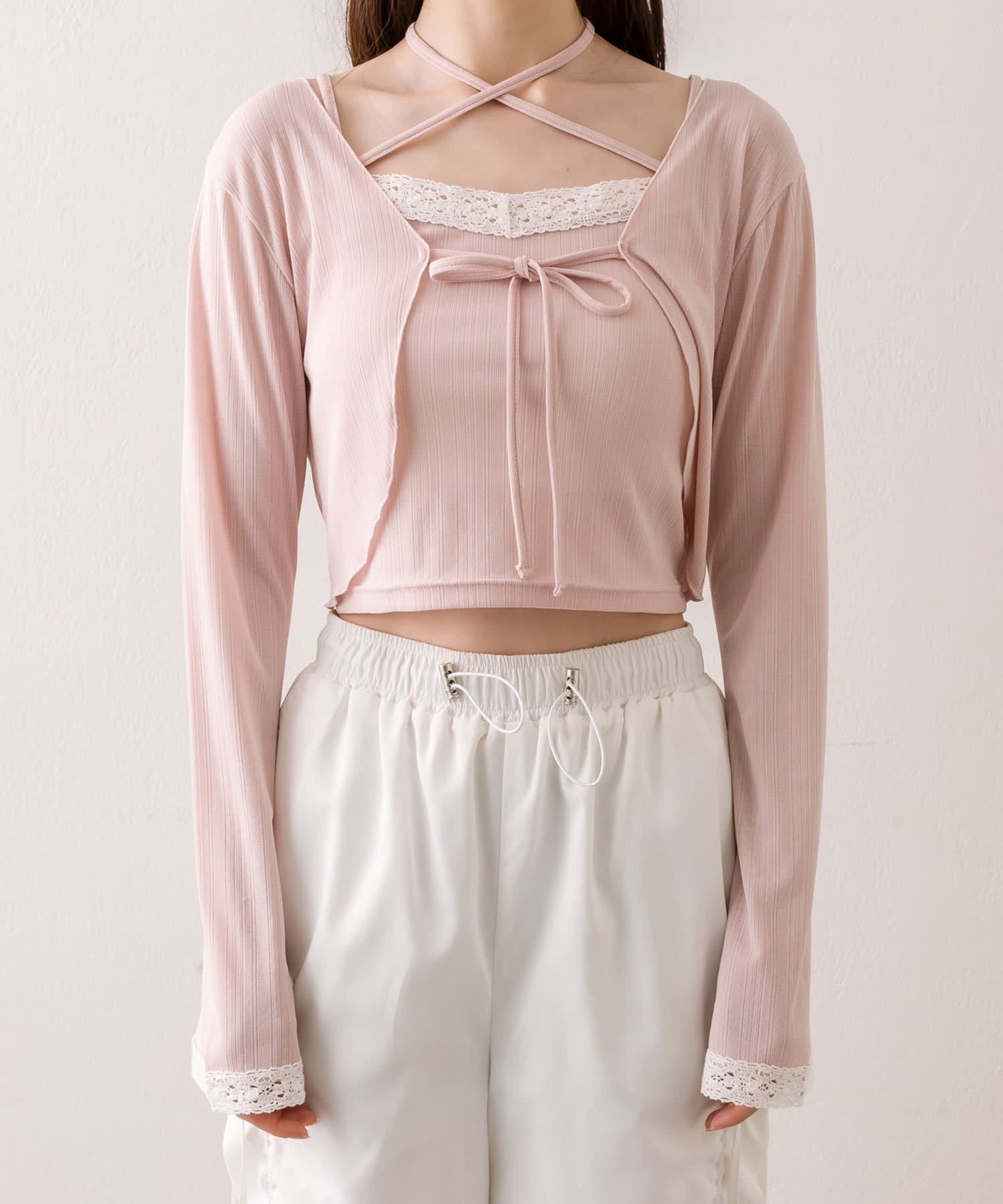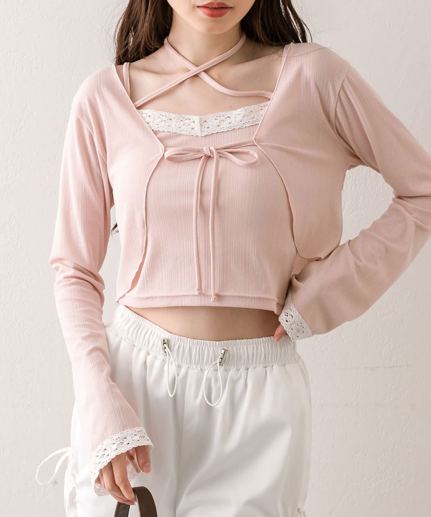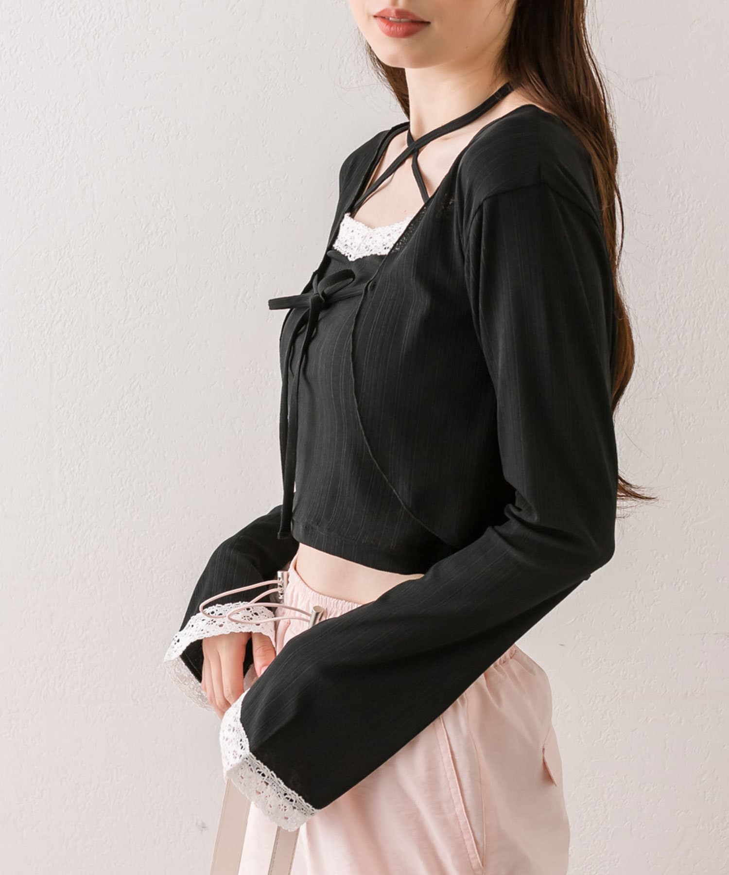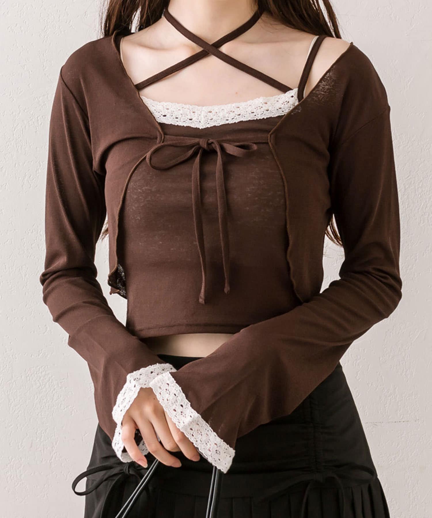 ・レースがポイントのボレロとキャミインナーがセットになったアイテム。