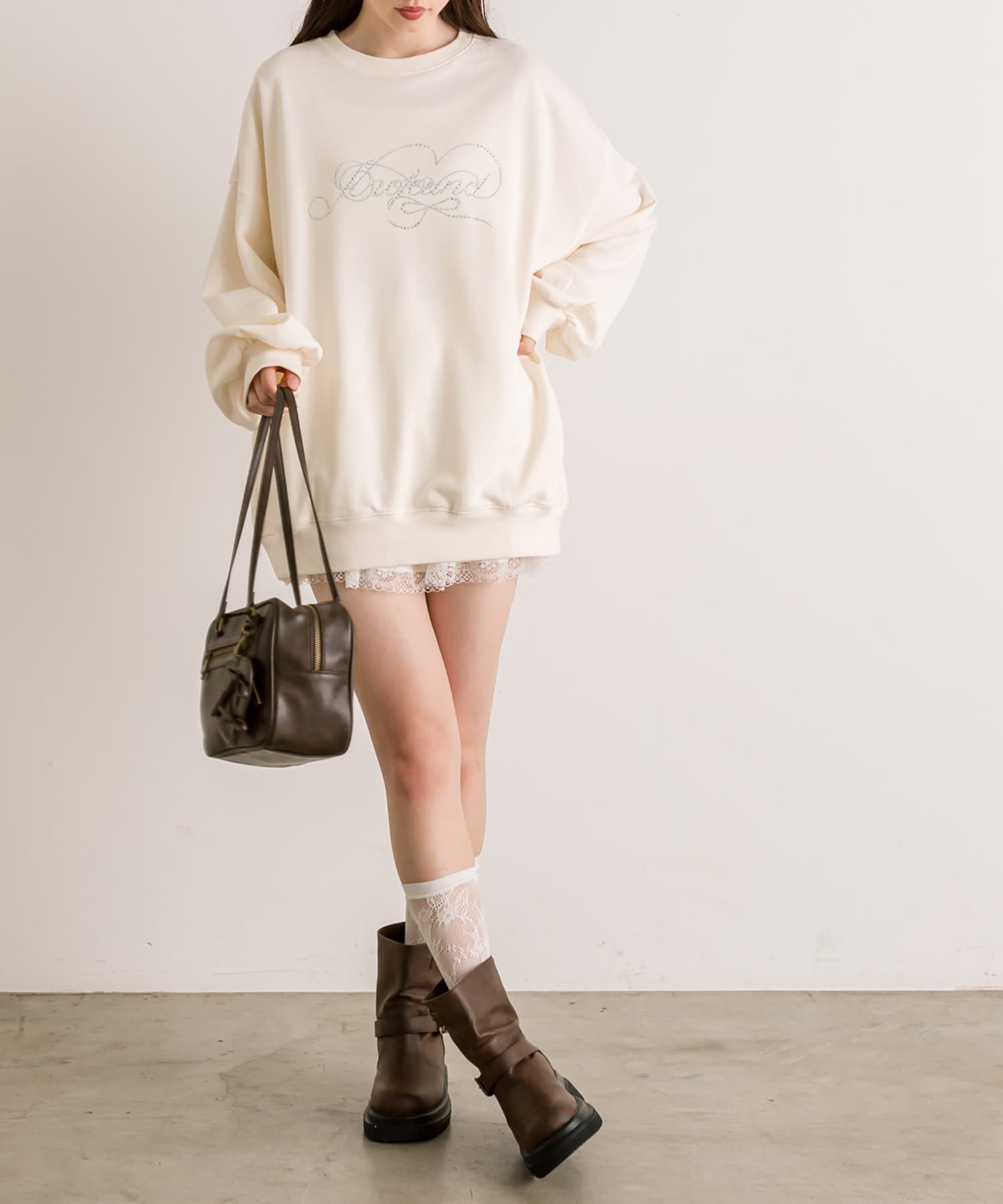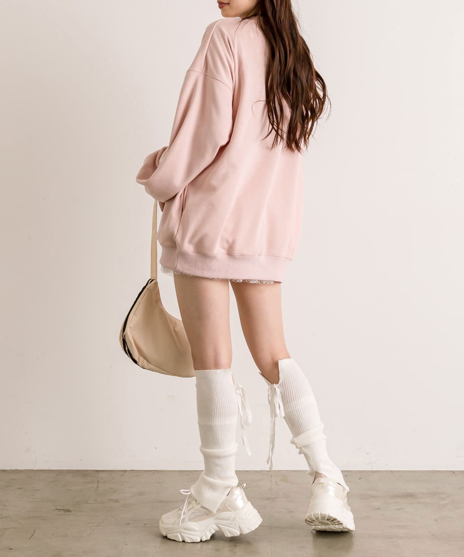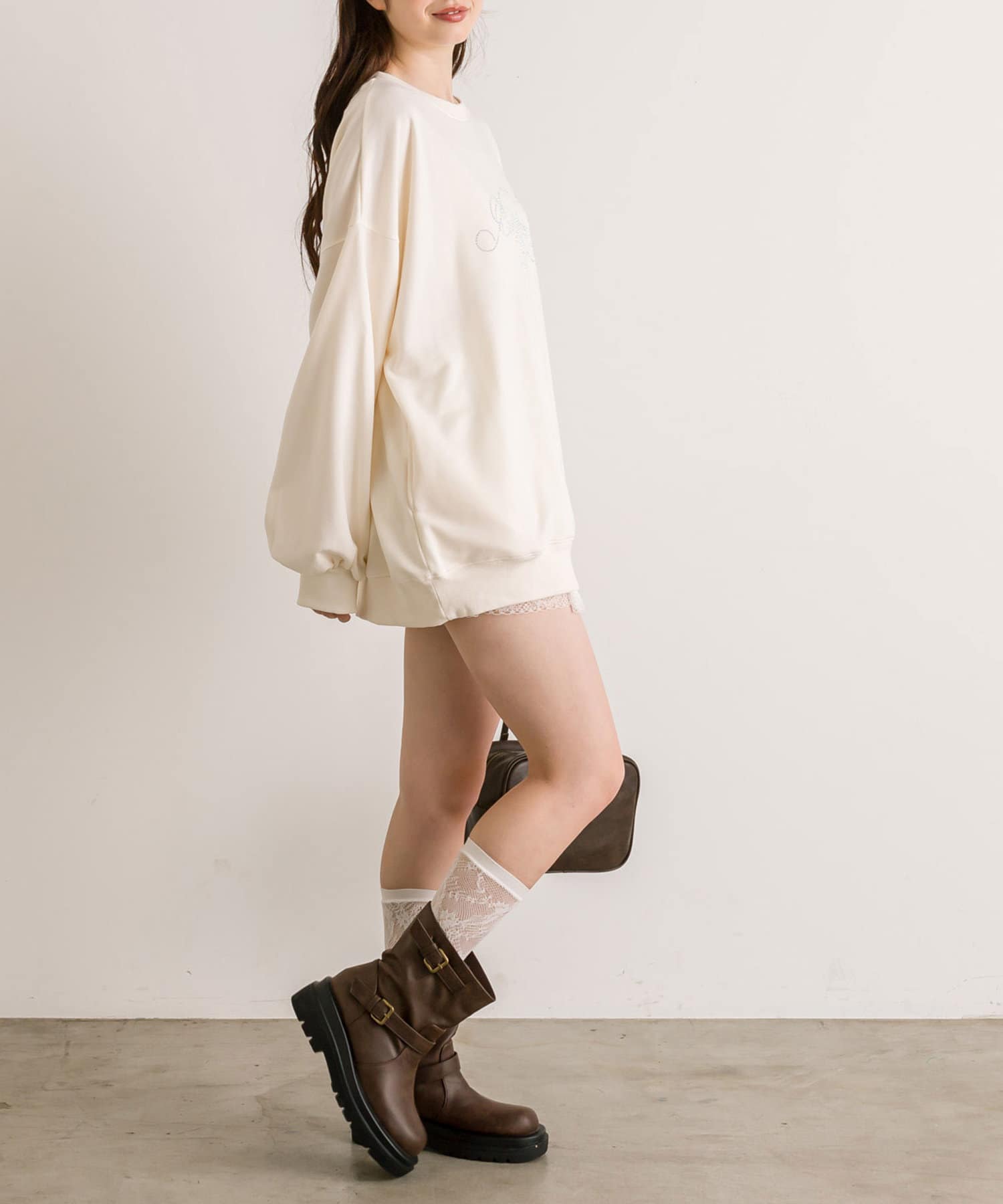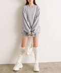 ・ミニボトムを合わせてミニワンピ風の着こなしがおすすめ。