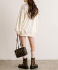 ・ミニボトムを合わせてミニワンピ風の着こなしがおすすめ。