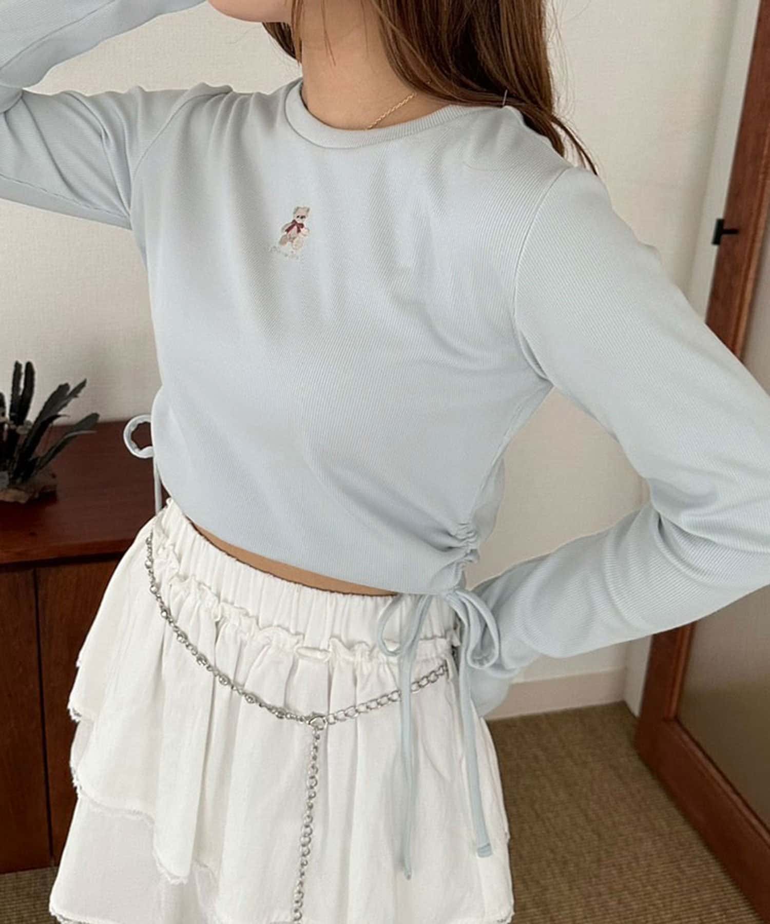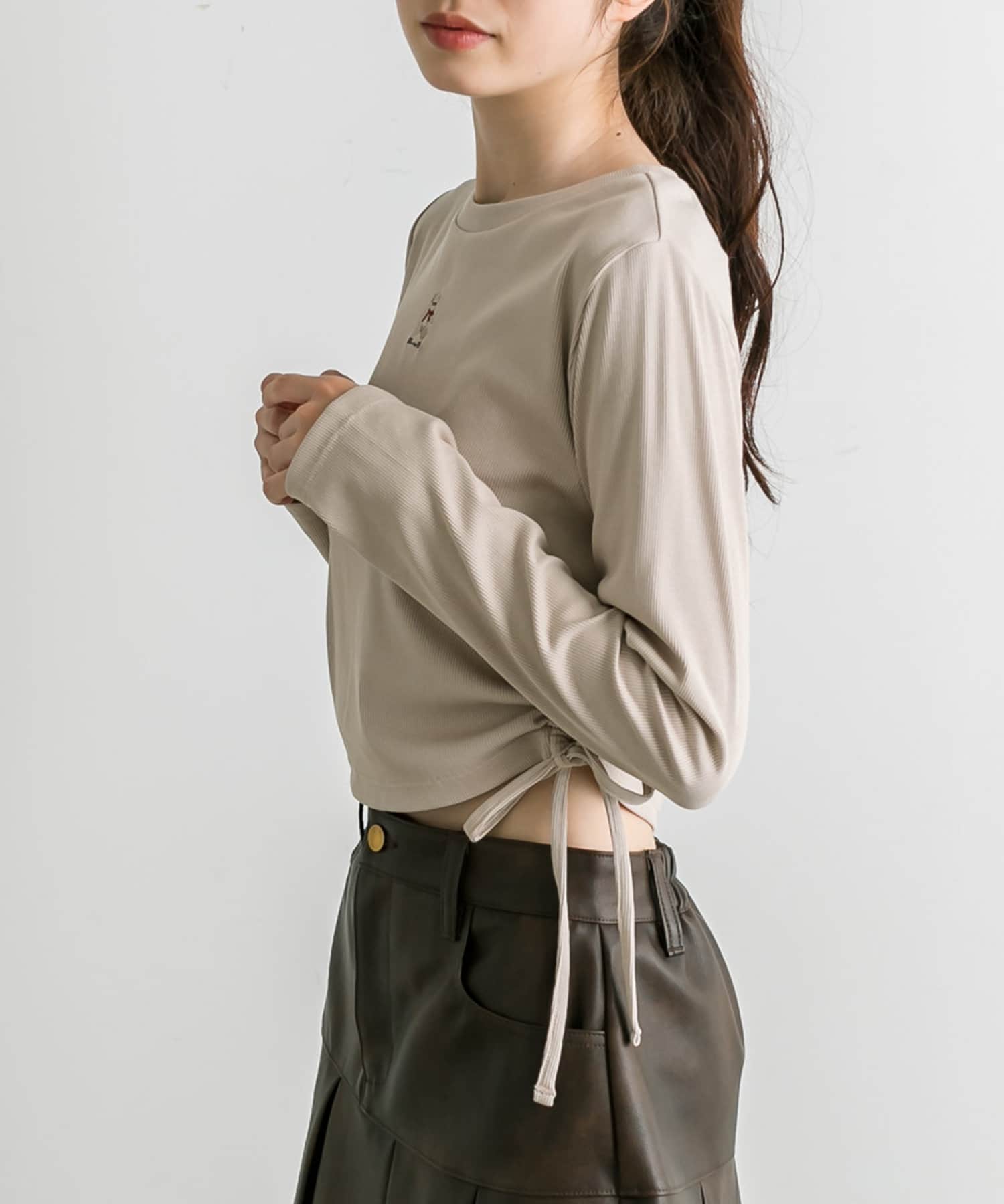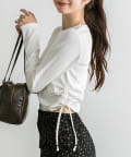 ・ドロストは調節可能で肌見せしたい方は強めに絞ったり、肌見せを押さえたい方は下げて着ていただけます。