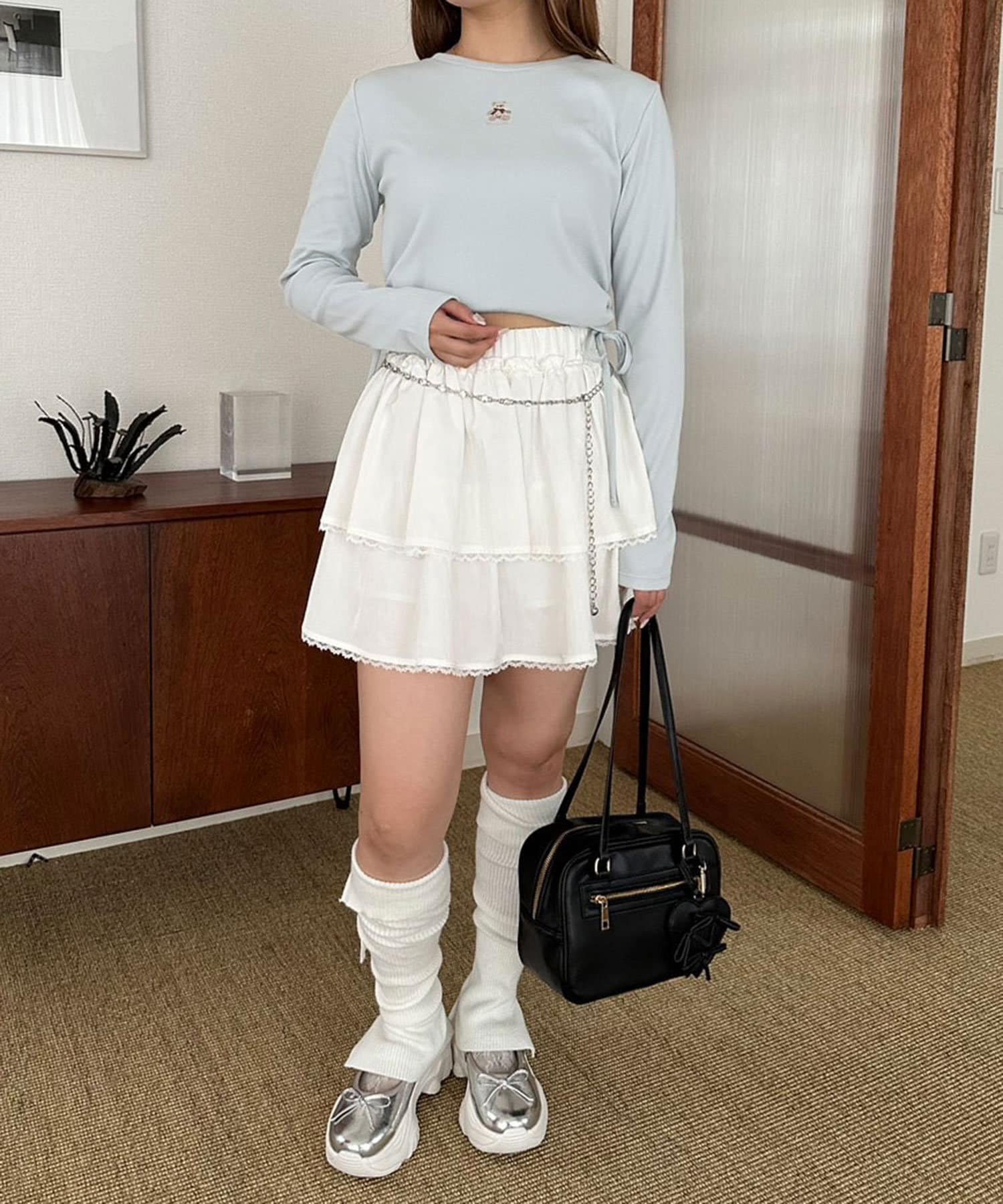 ・甘さをプラスしたい方はミニスカートで合わせるのがおすすめ。