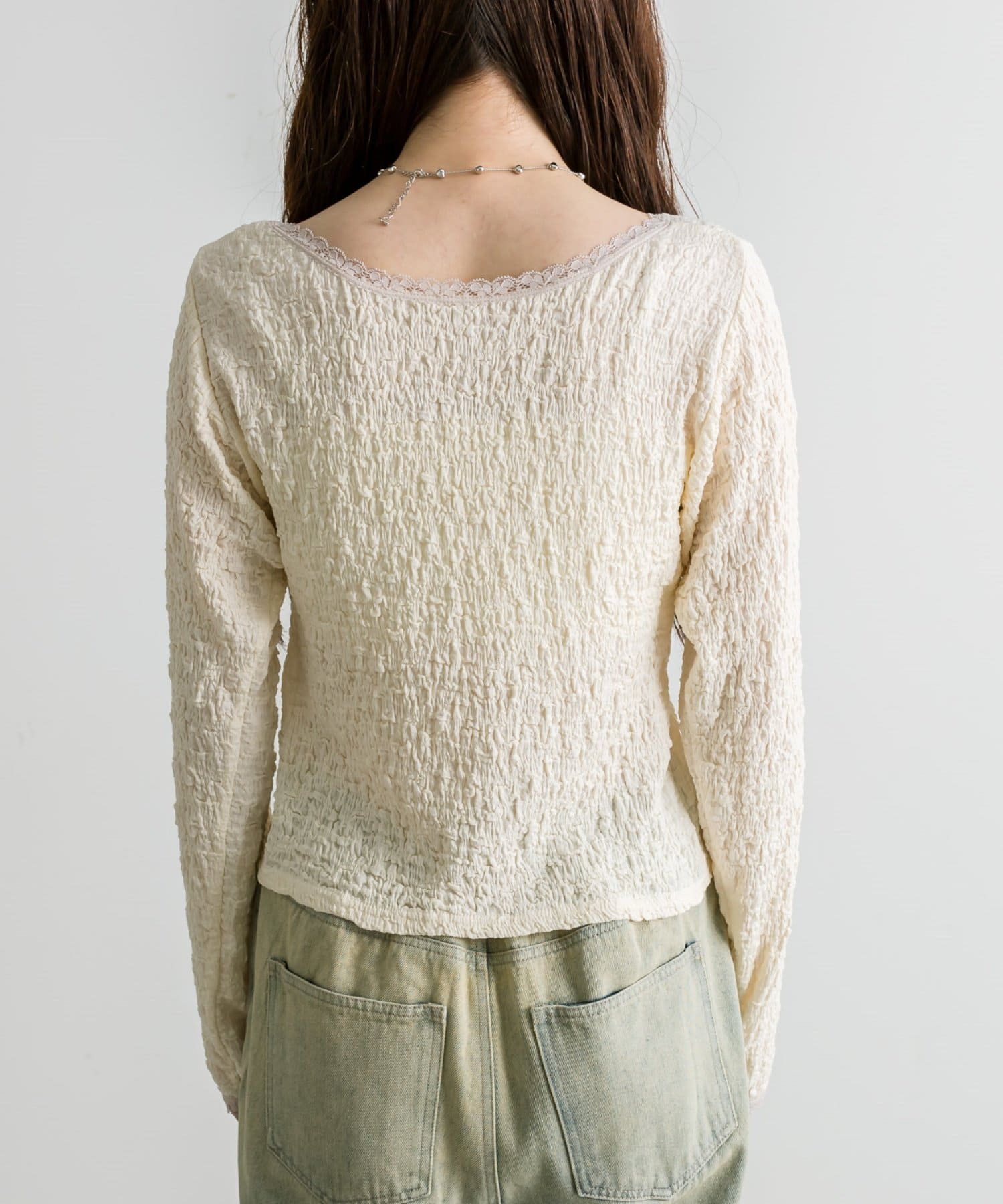 ・首回りは程よく開くのでデコルテをきれいに魅せてくれます。