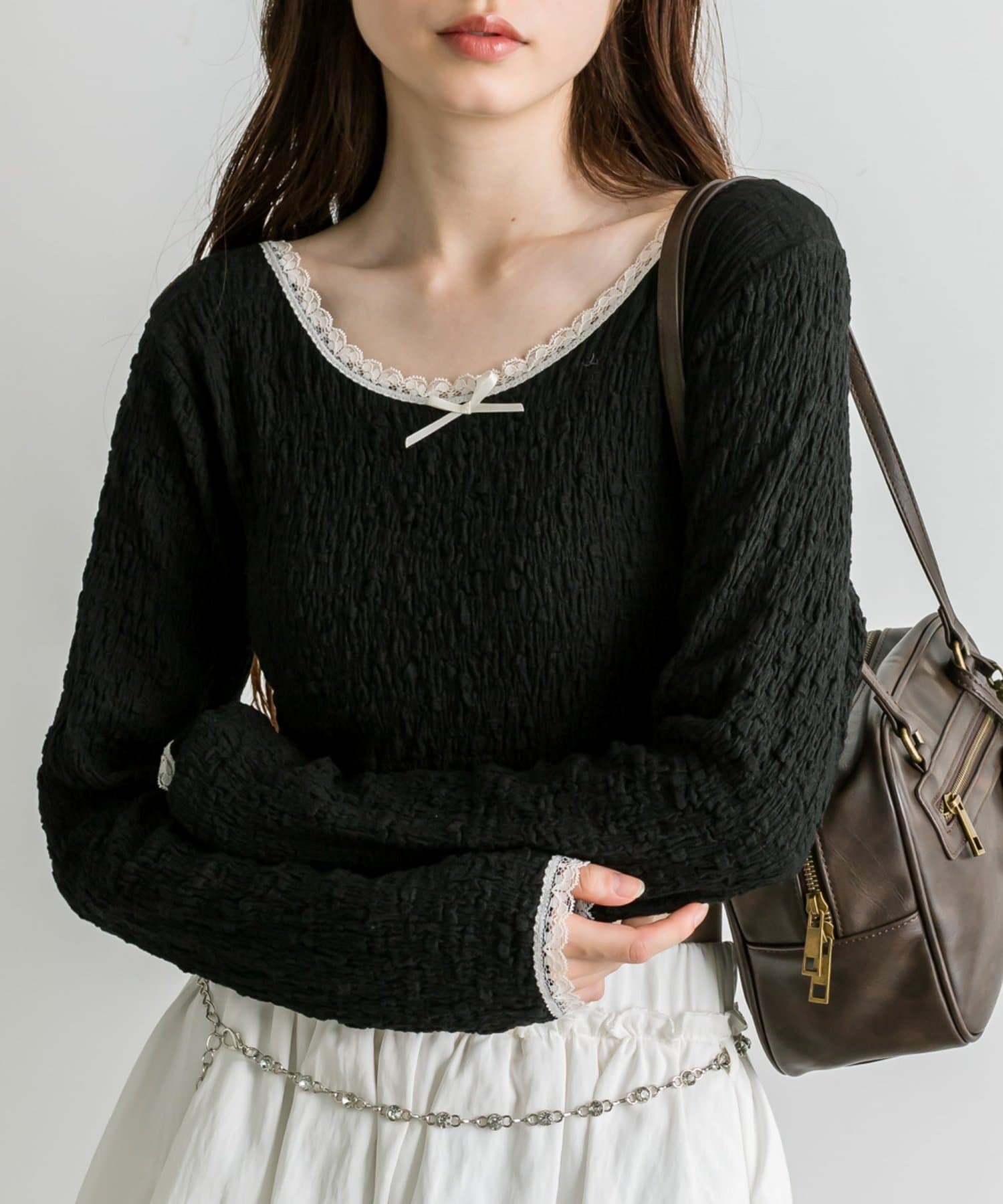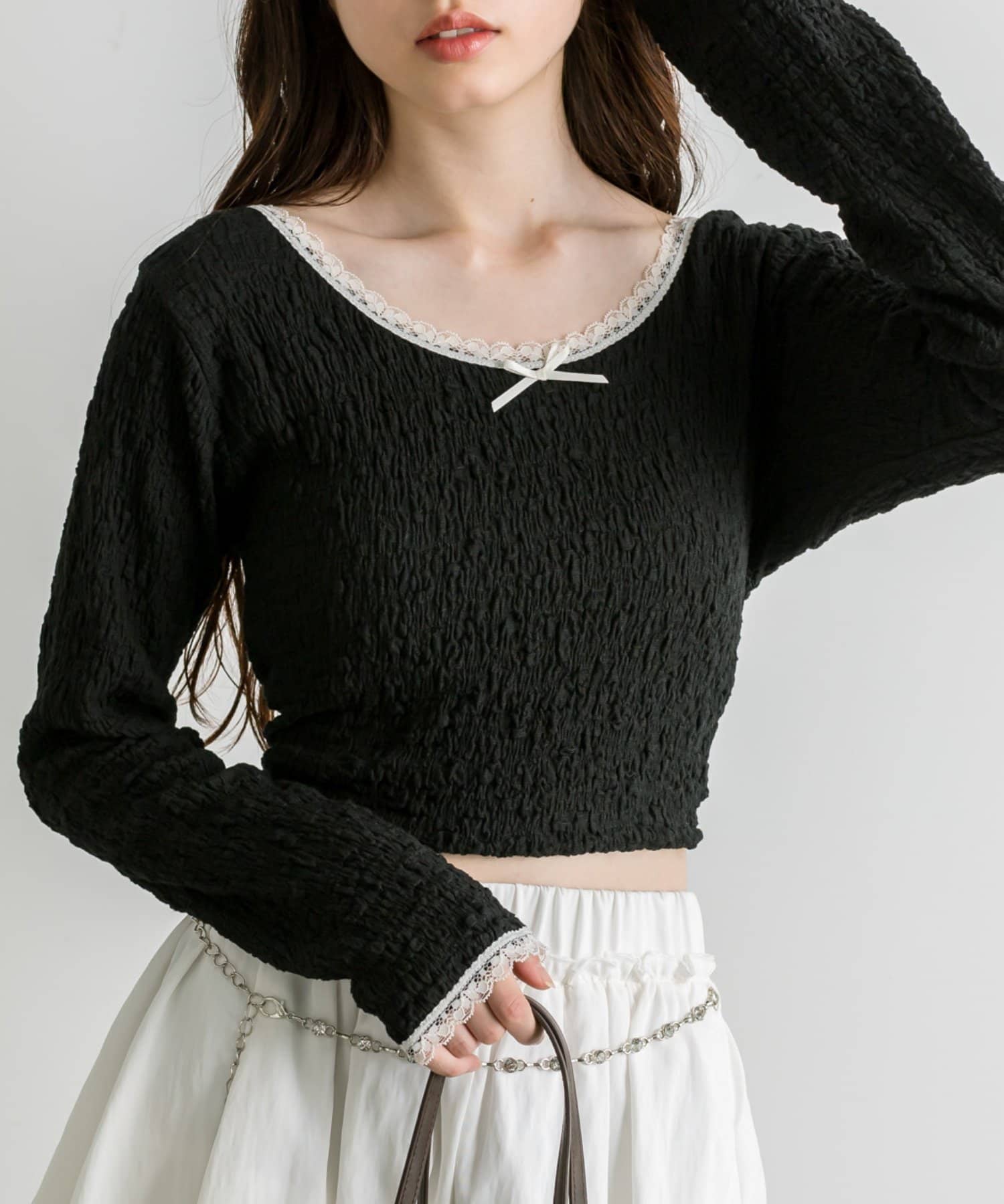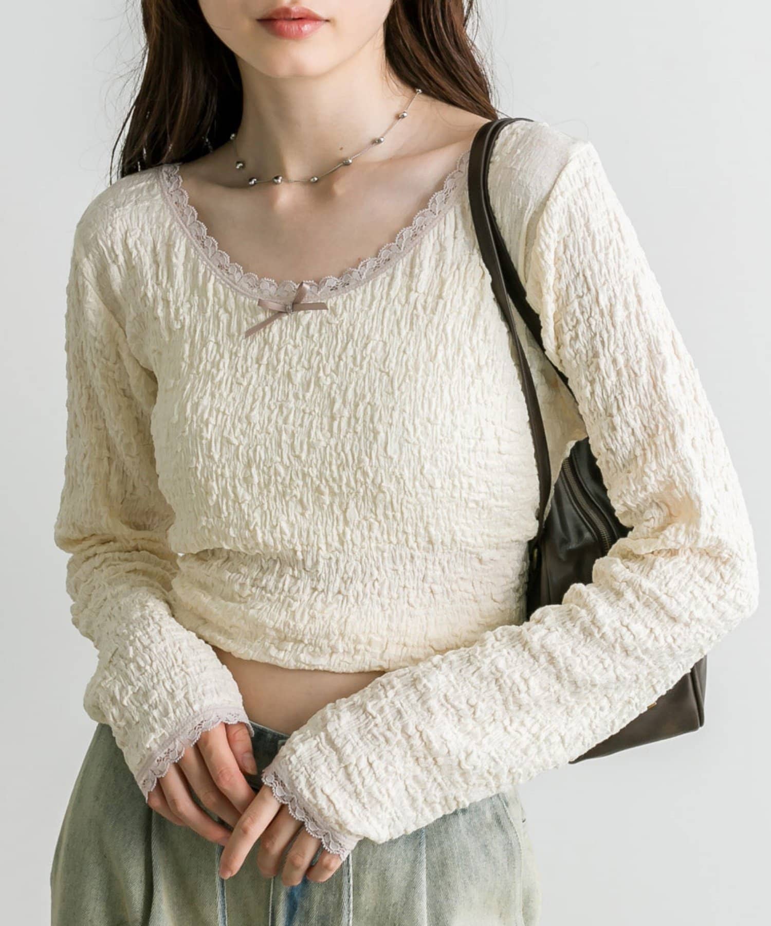 ・リボンやレースを施したバレエコアなデザインのインナー。