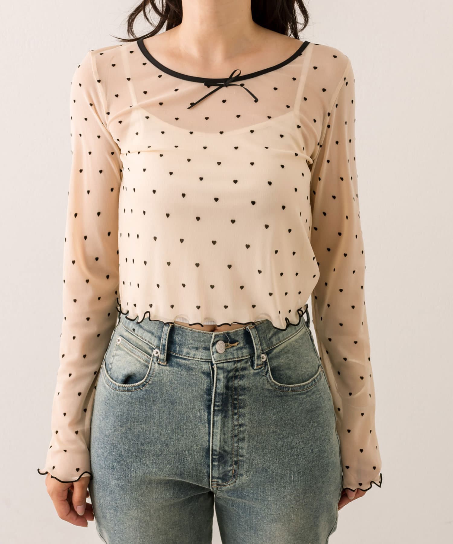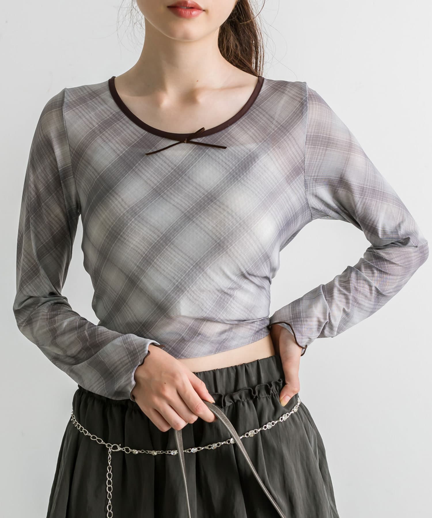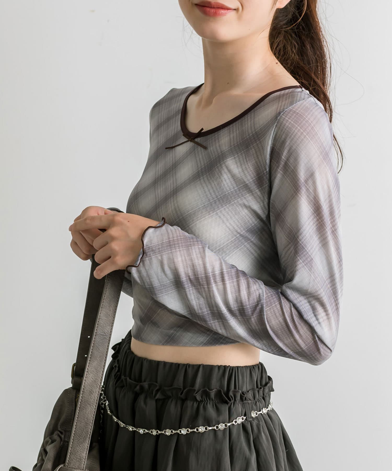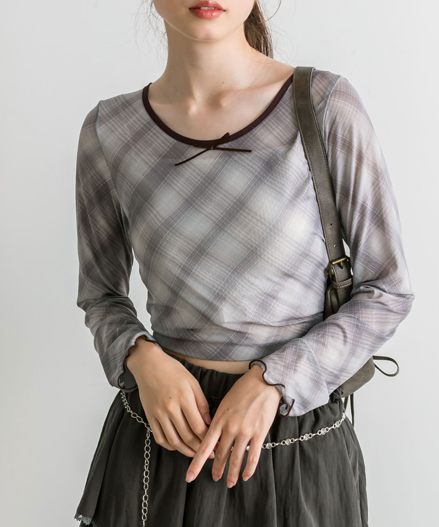 ・ちょうどいい透け感で肌なじみがよく、トップスとして着てもインナー感のないデザインです。