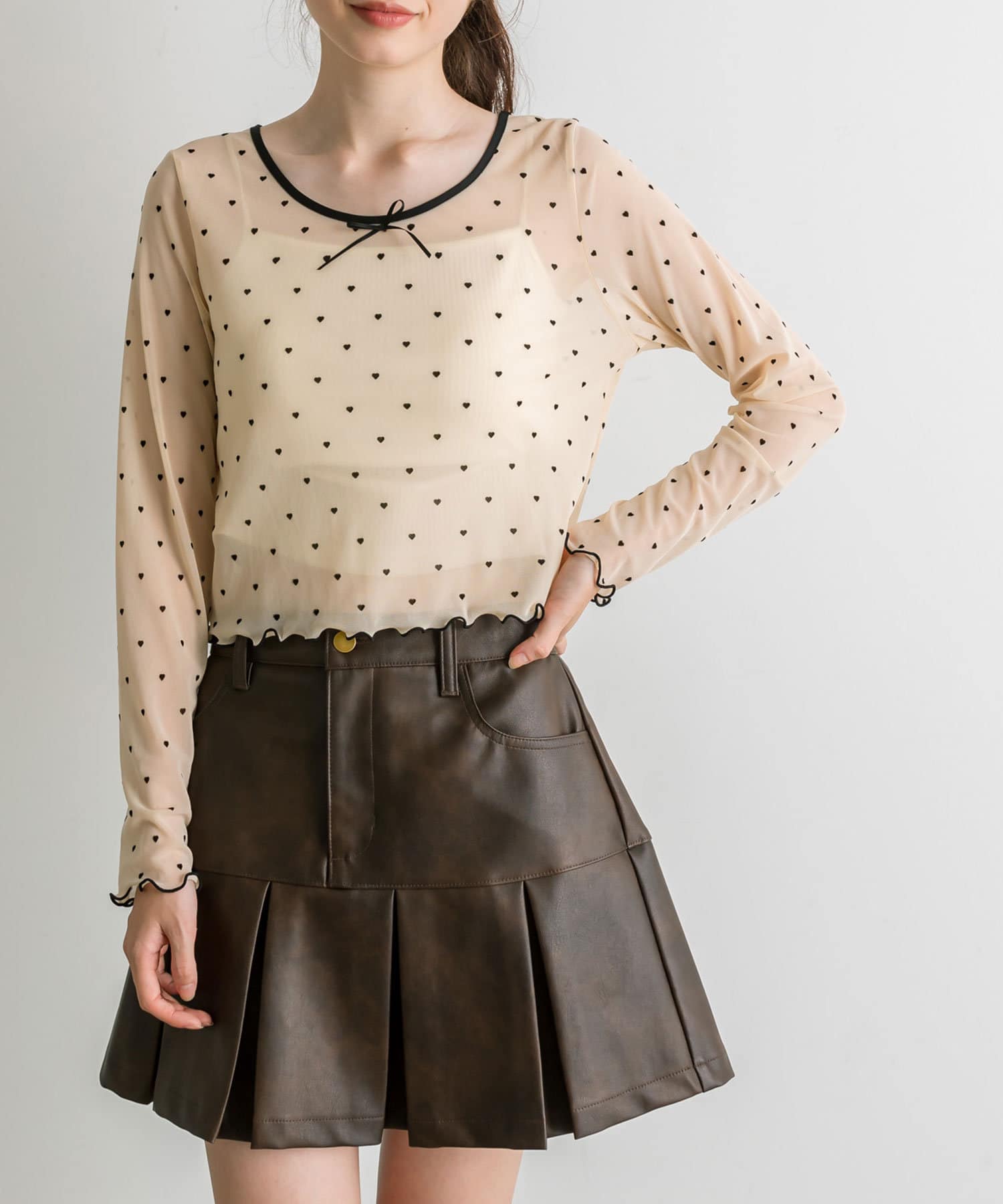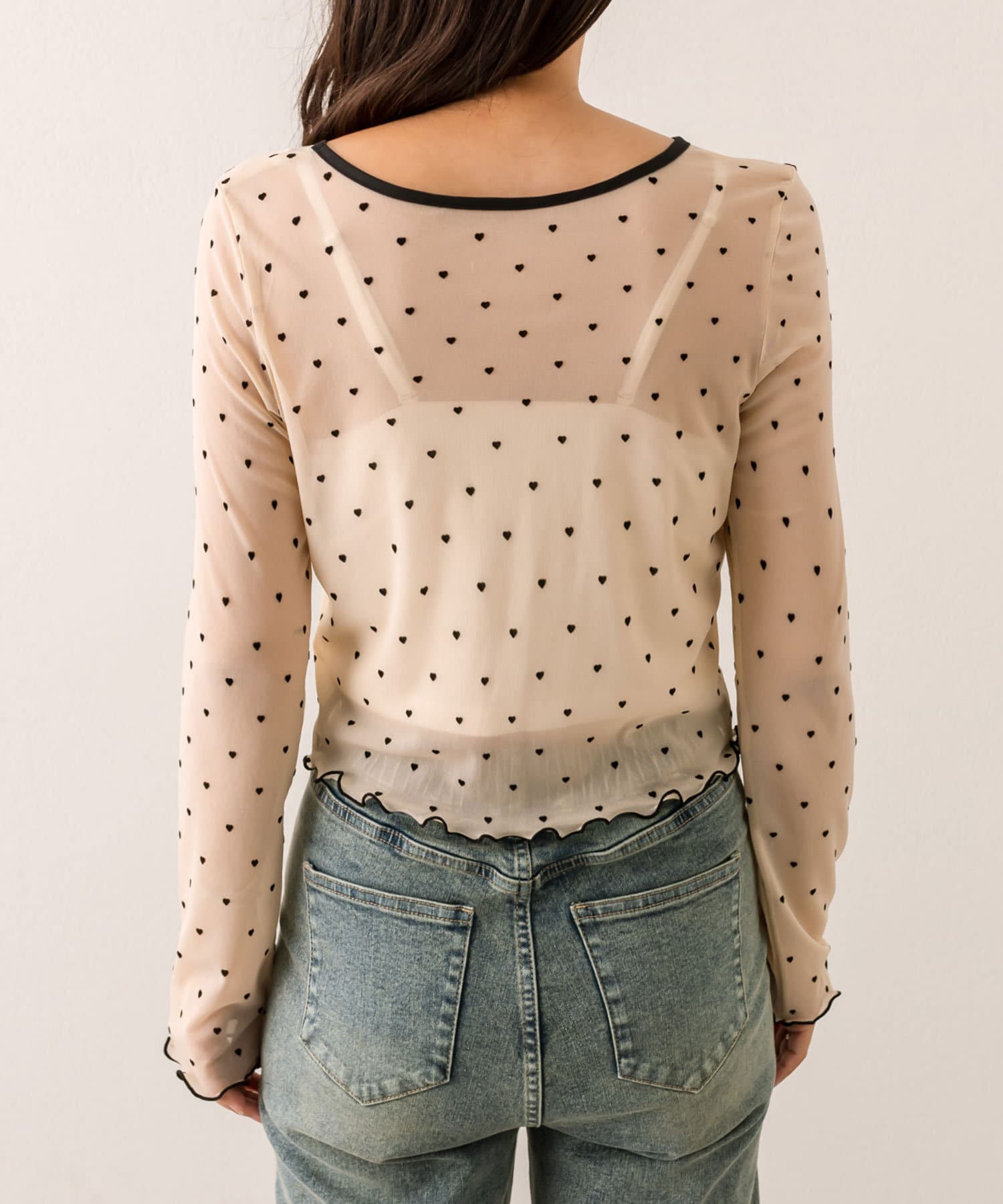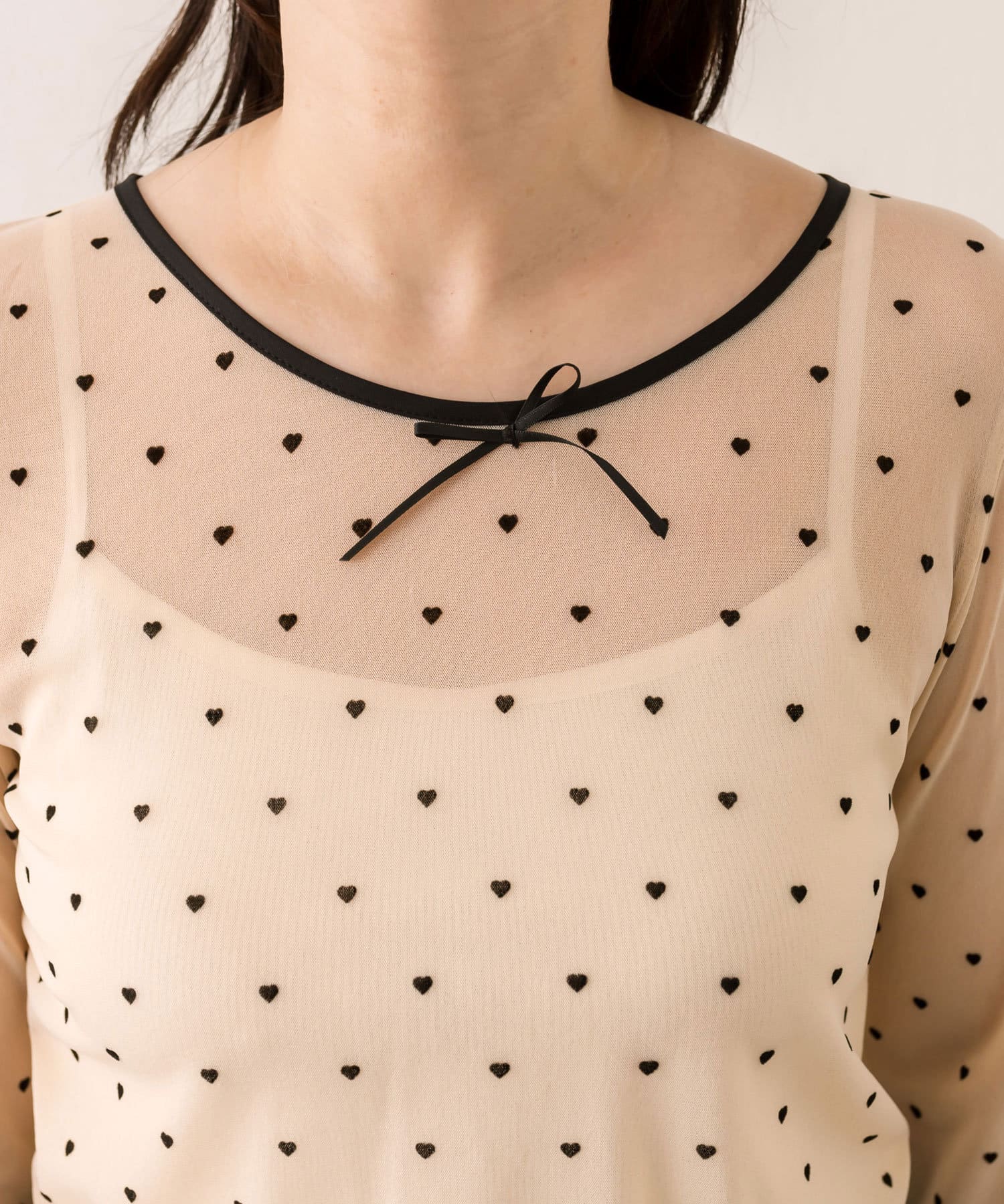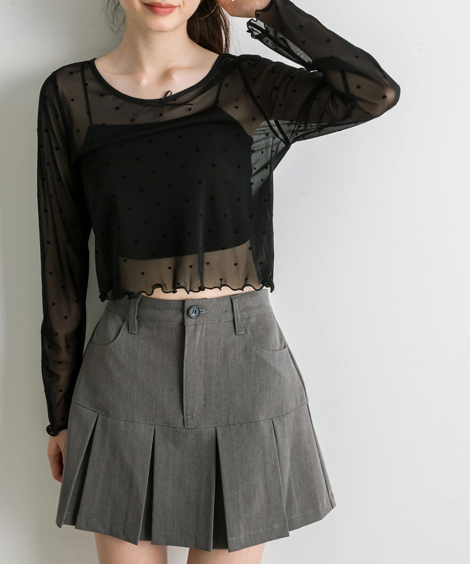 ・ちょうどいい透け感で肌なじみがよく、トップスとして着てもインナー感のないデザインです。