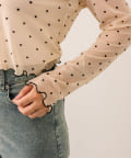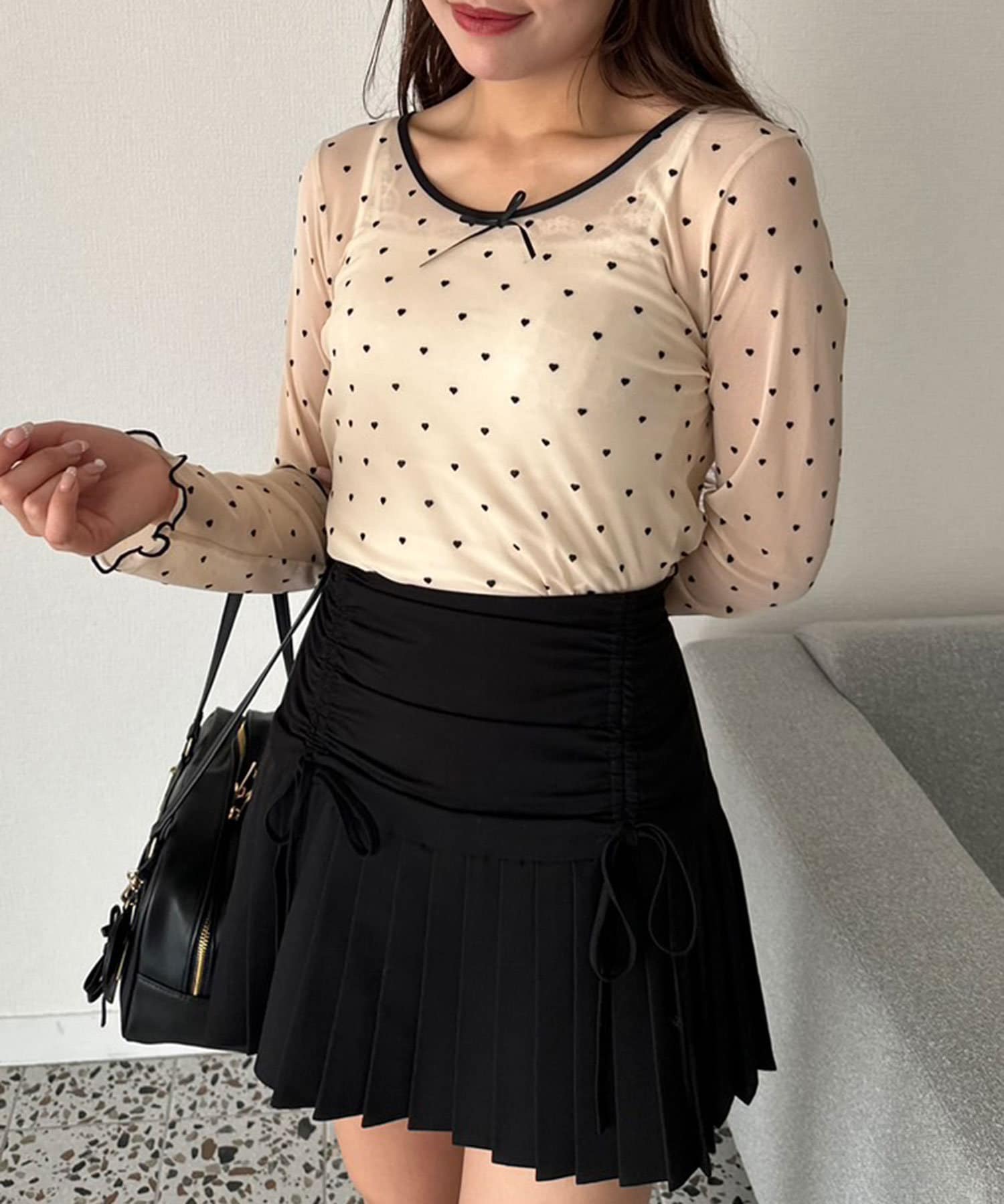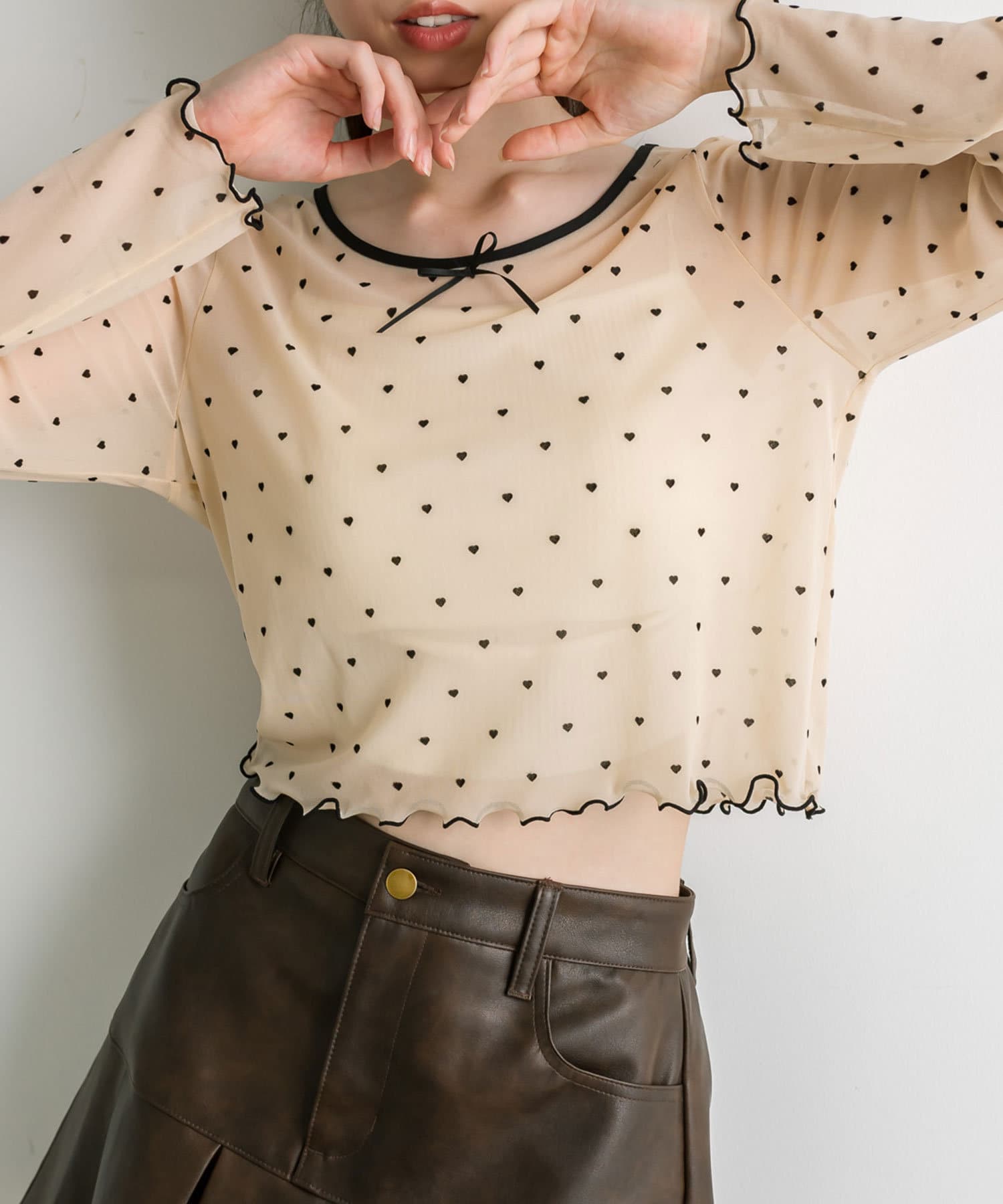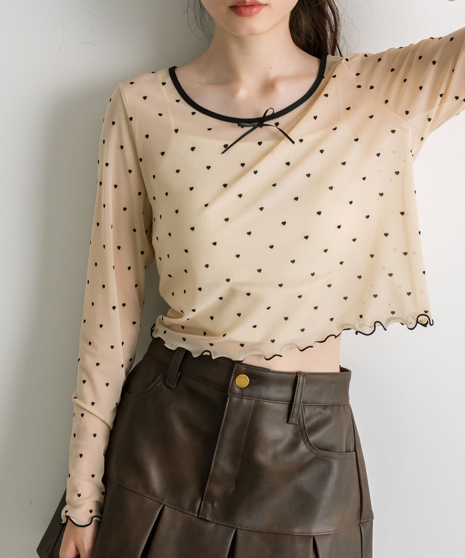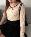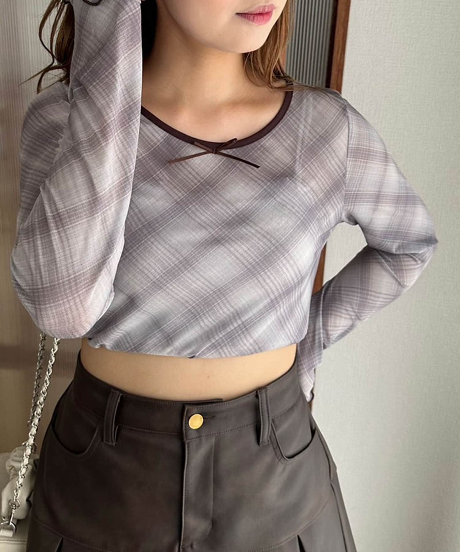 ・ちょうどいい透け感で肌なじみがよく、トップスとして着てもインナー感のないデザインです。