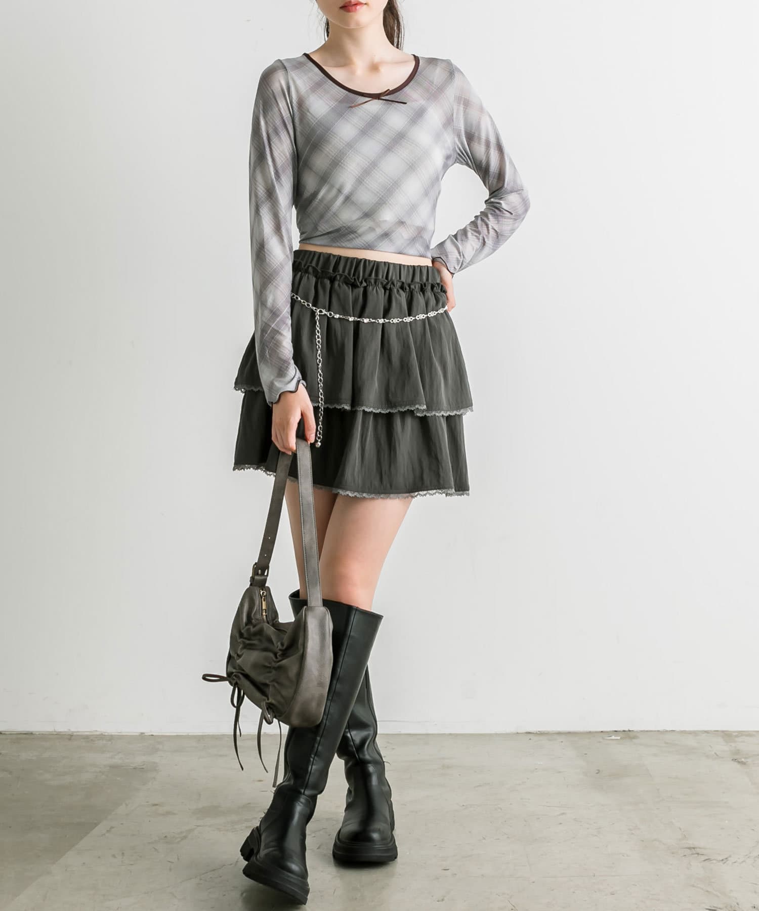 ・ミニスカートと合わせて韓国ガーリーに着るのがおすすめ。