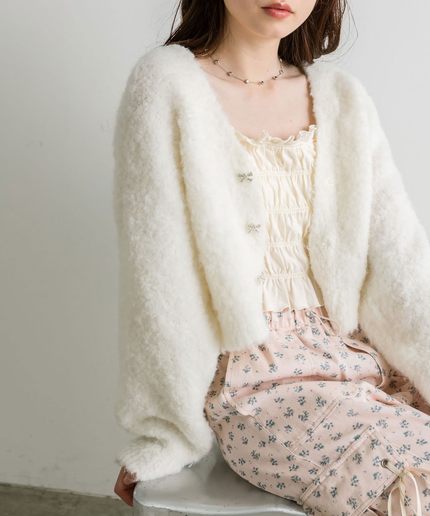 ・カジュアルアイテムと合わせると、程よく甘さをプラスできます。