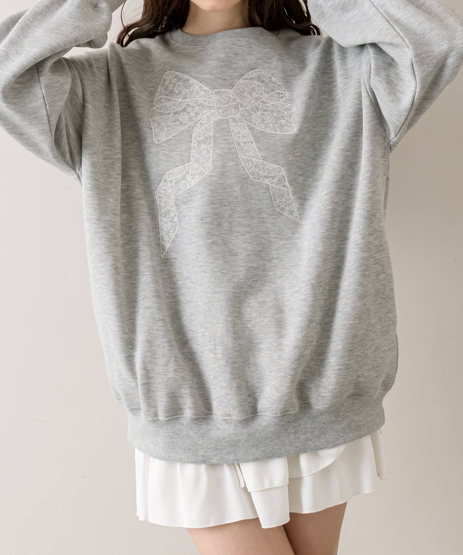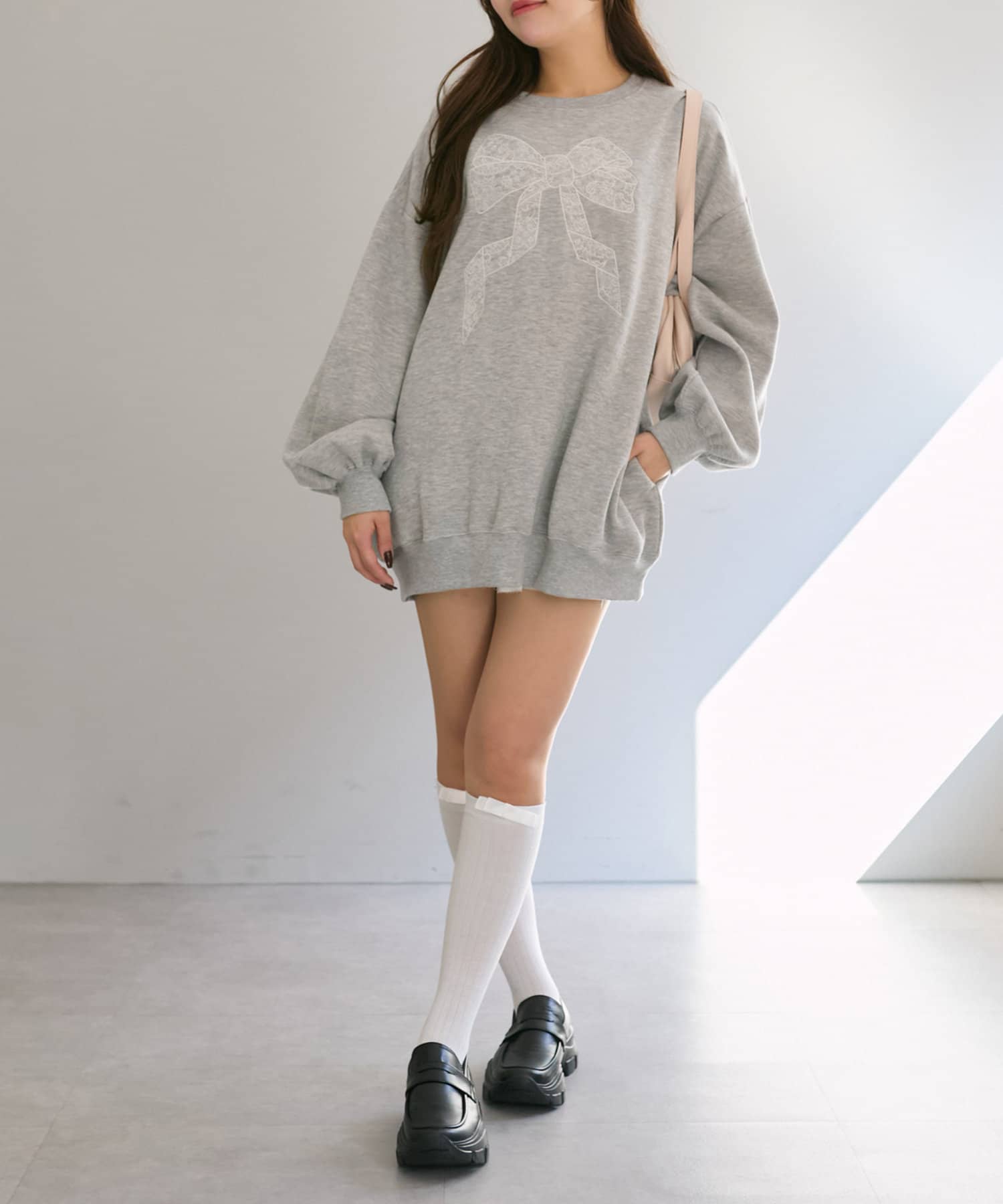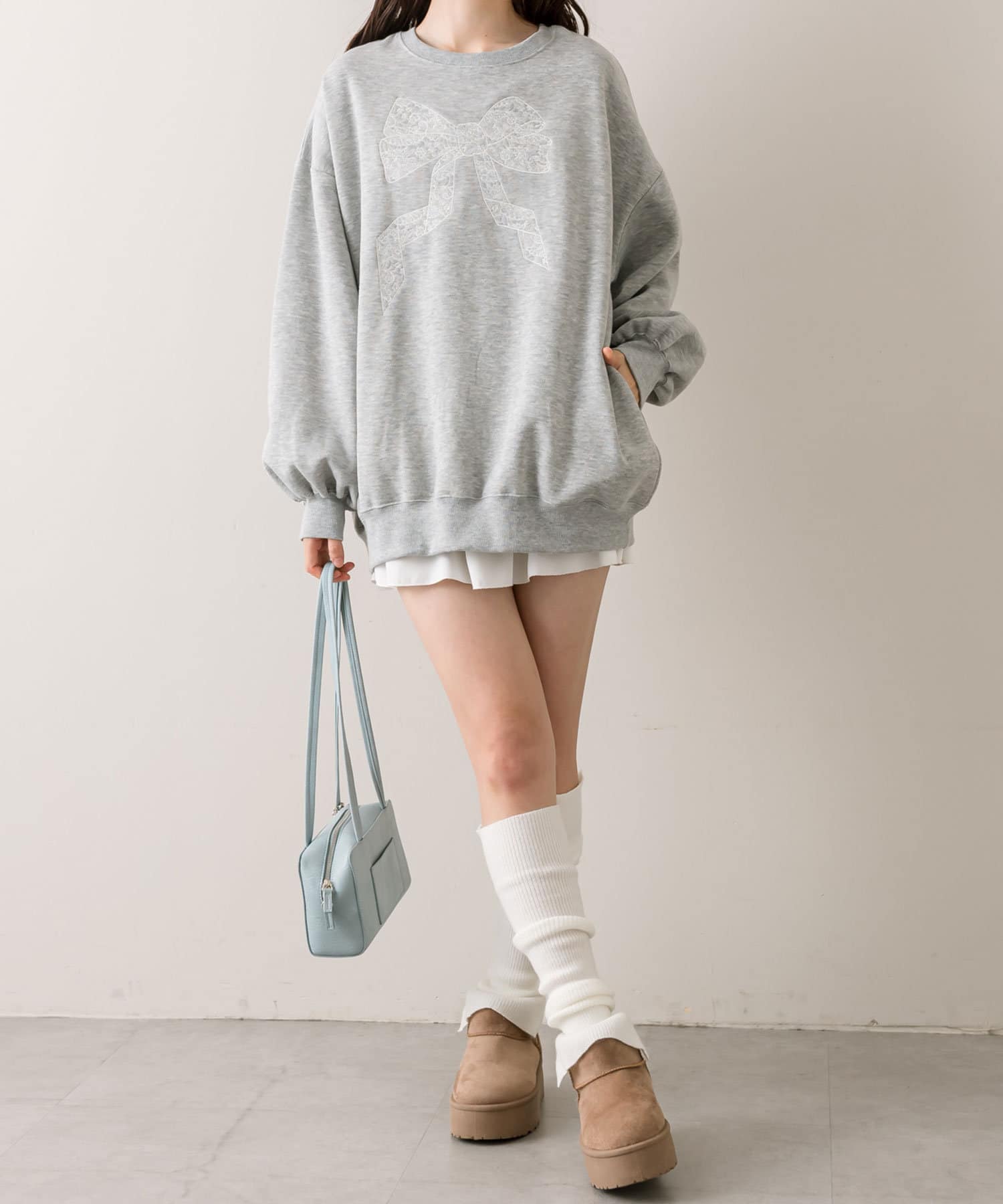 ・オフはクマプリントにリボンとビジューロゴ、ピンクはふわふわのナンバリングロゴ、グレーはレースリボンのデザインです。