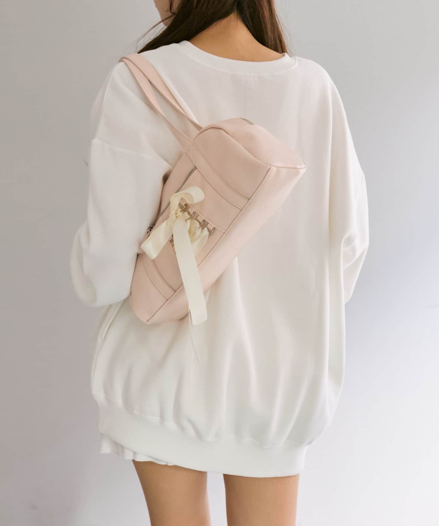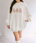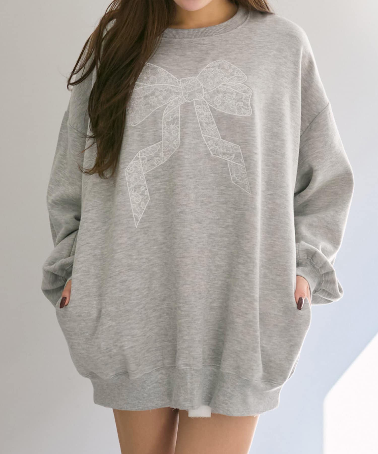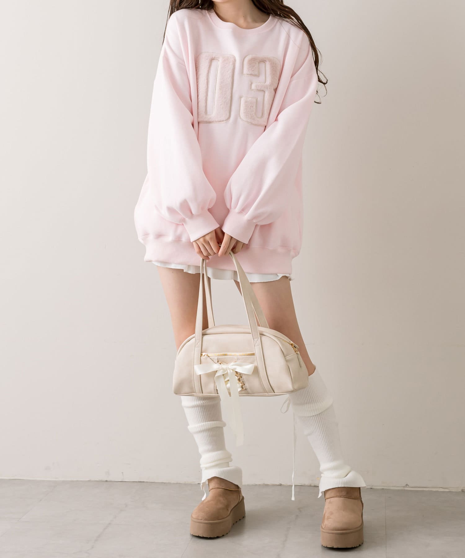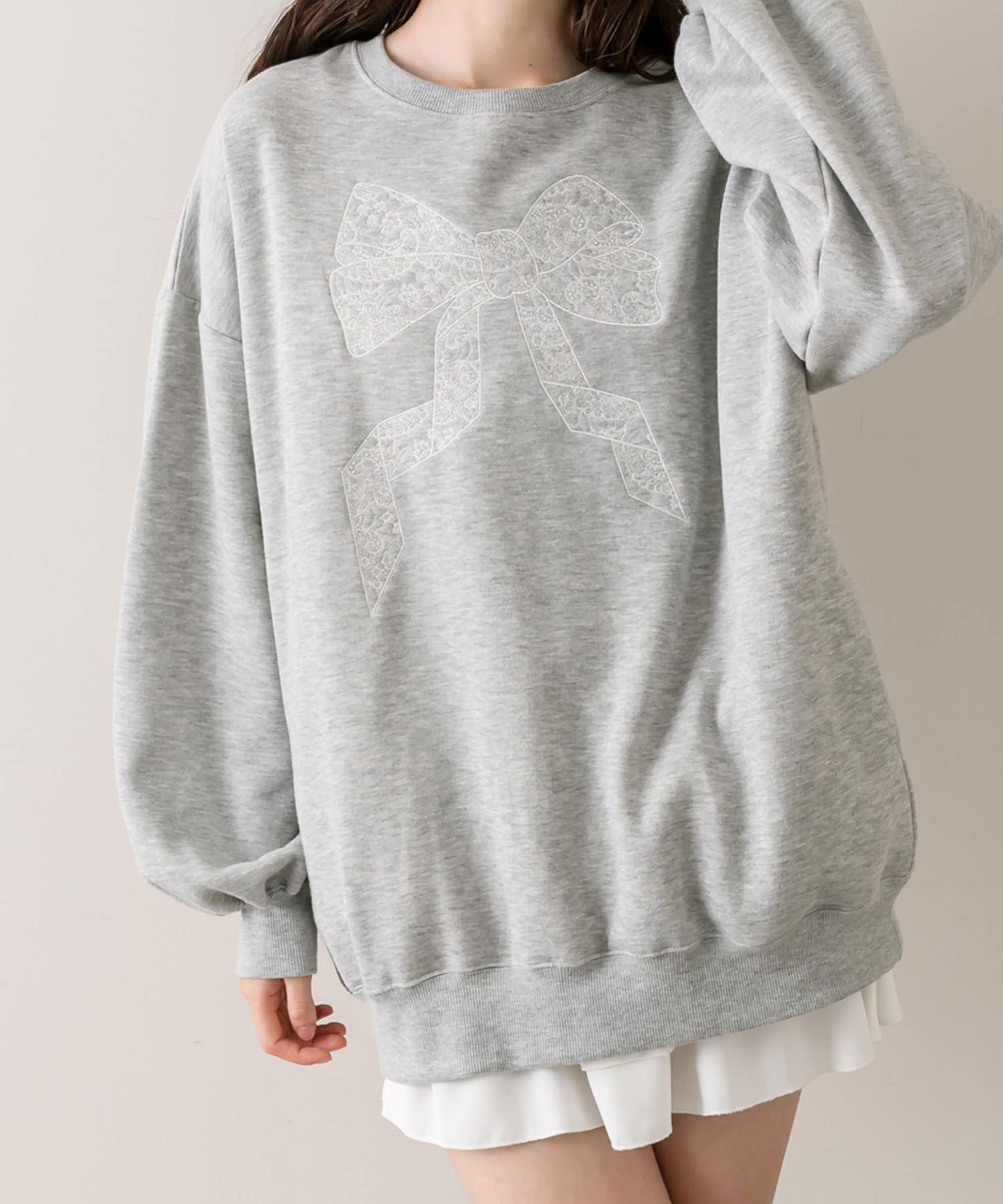 ・オフはクマプリントにリボンとビジューロゴ、ピンクはふわふわのナンバリングロゴ、グレーはレースリボンのデザインです。