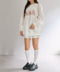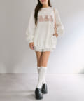 ・ミニボトムを合わせてミニワンピ風に着るのがおすすめ。