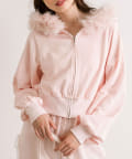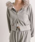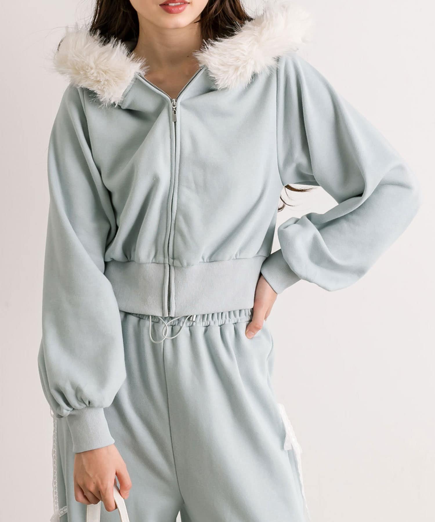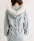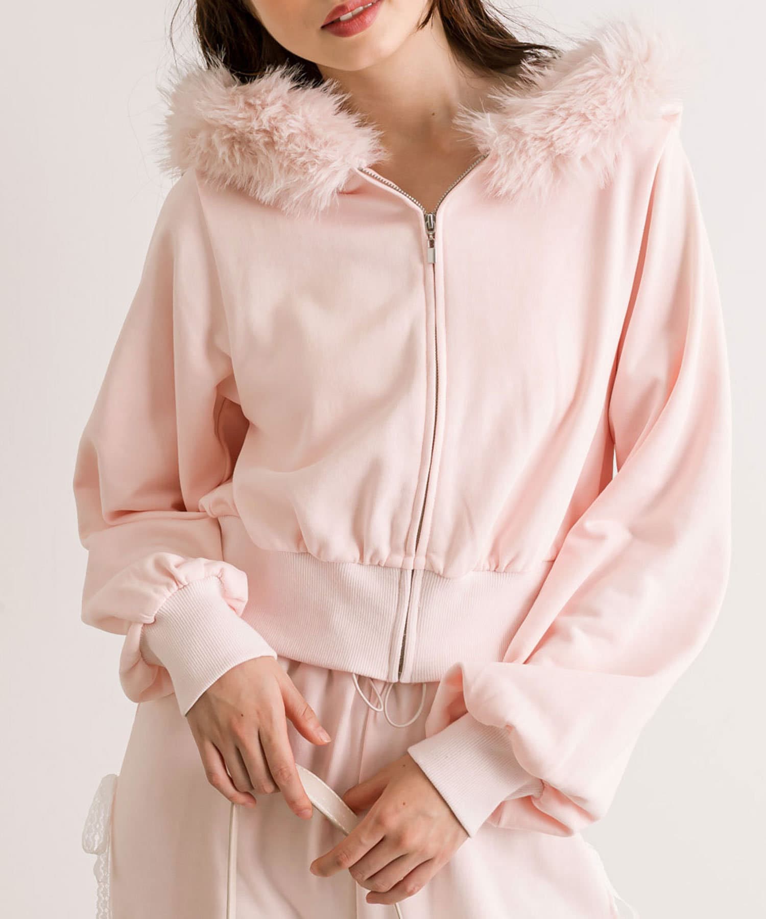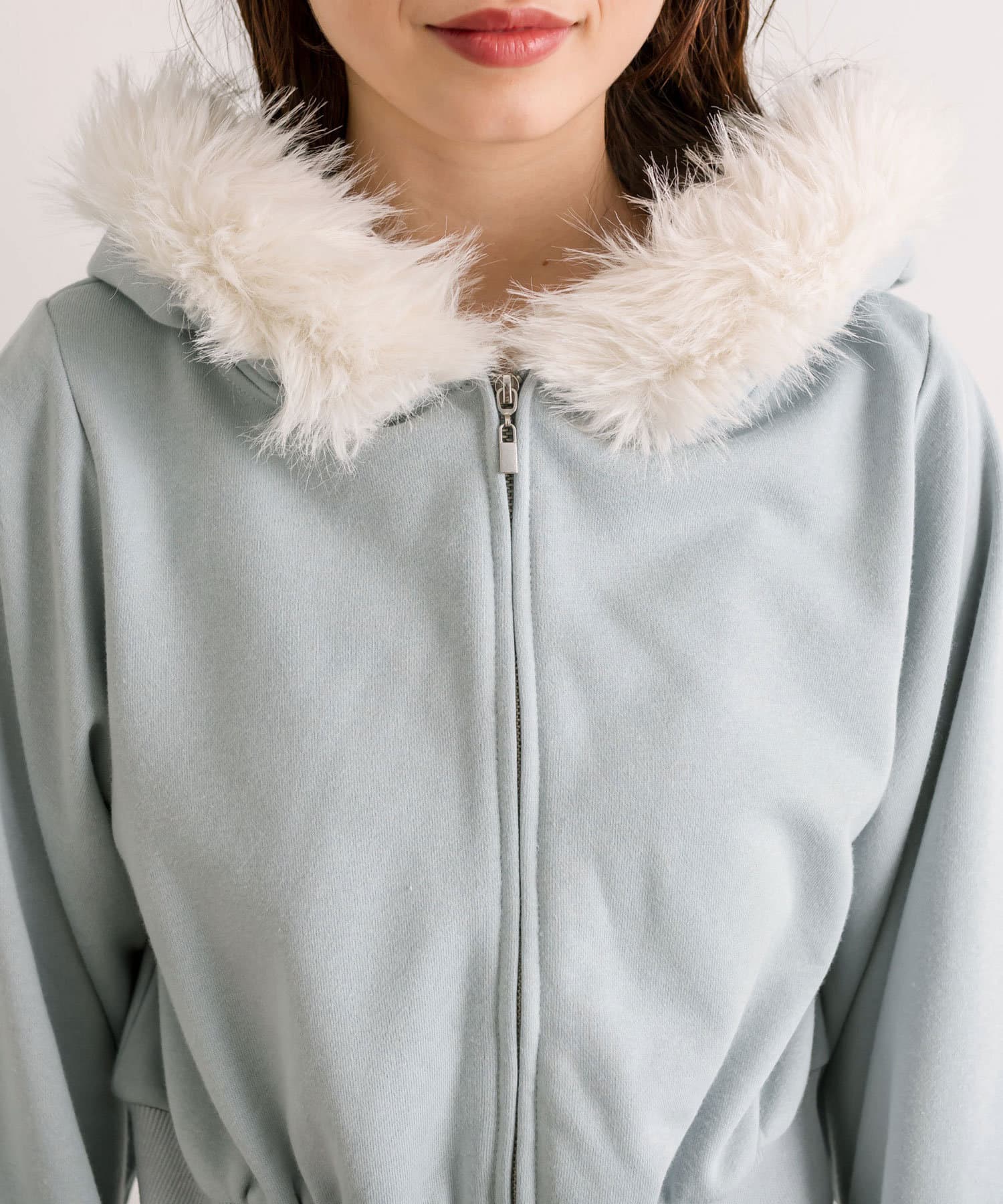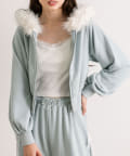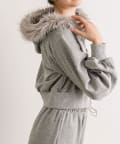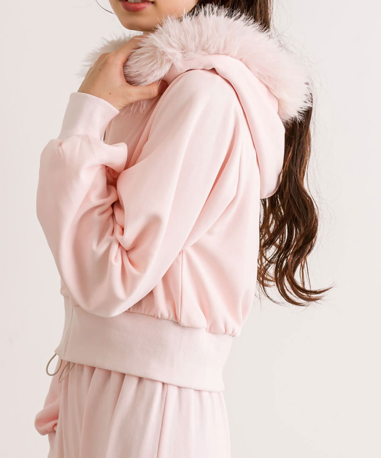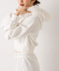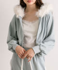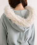 ・フード部分にふわふわのファーが付いたパーカー。