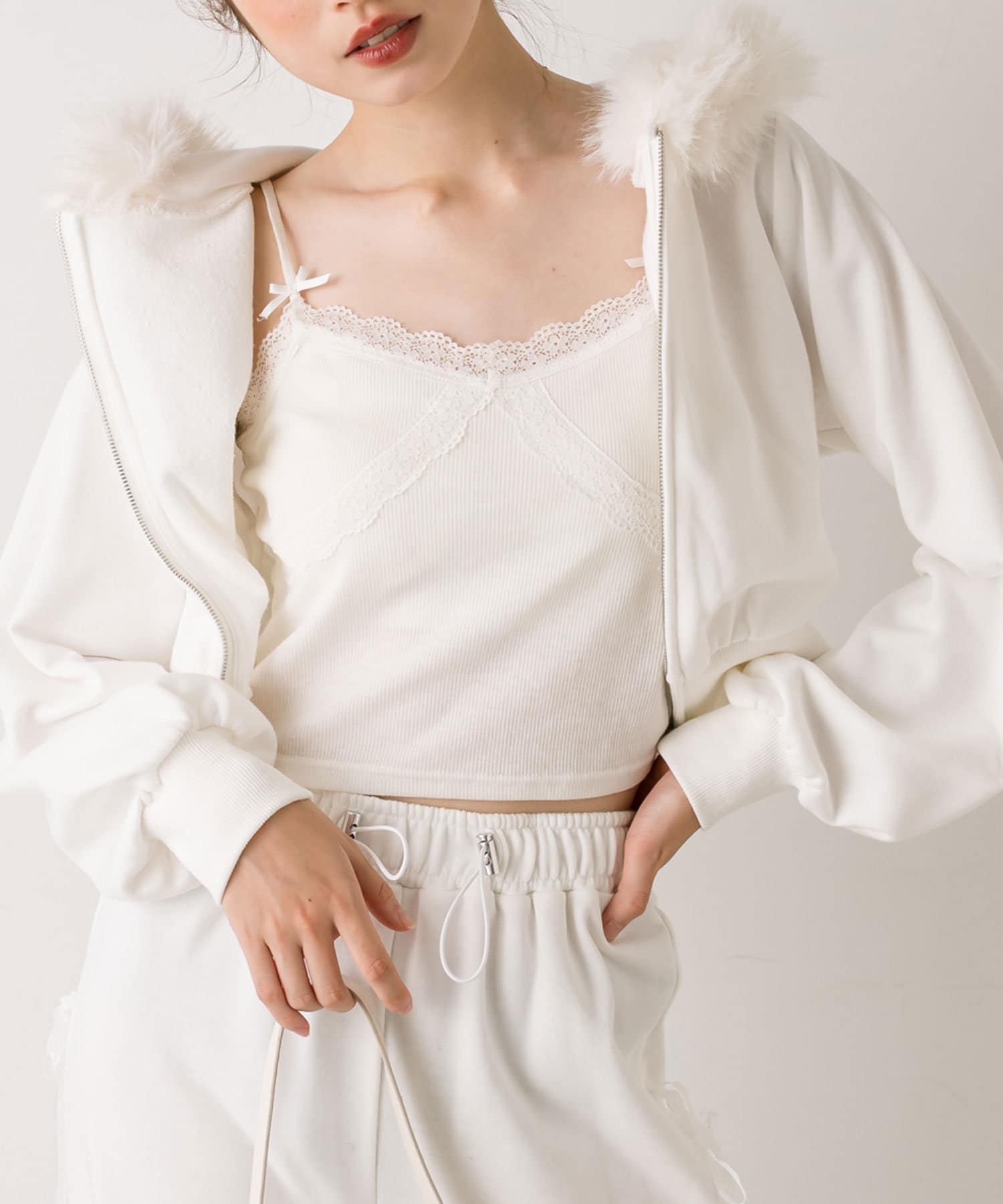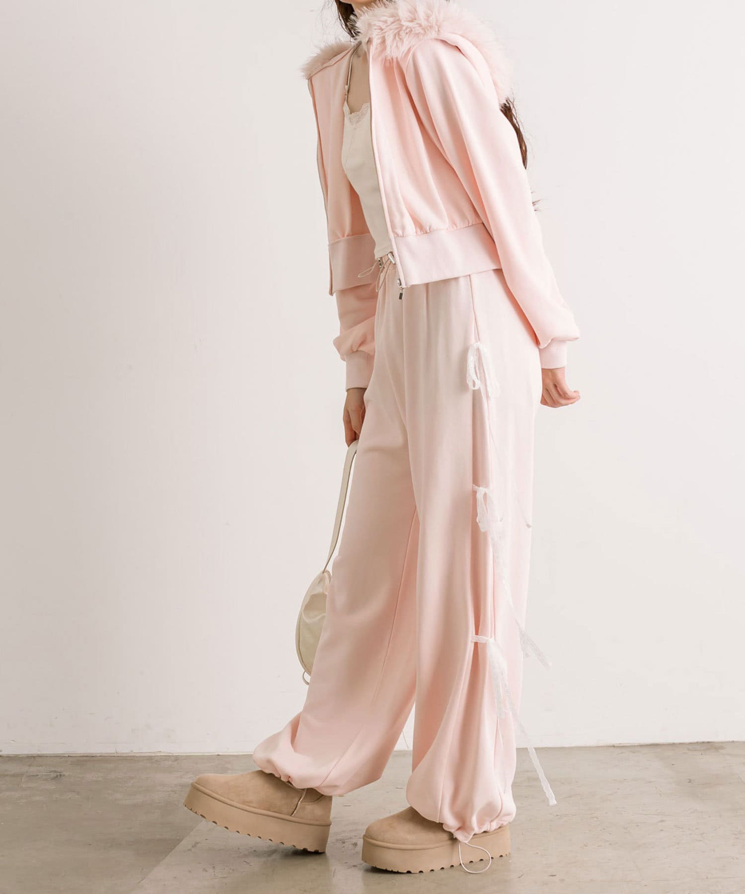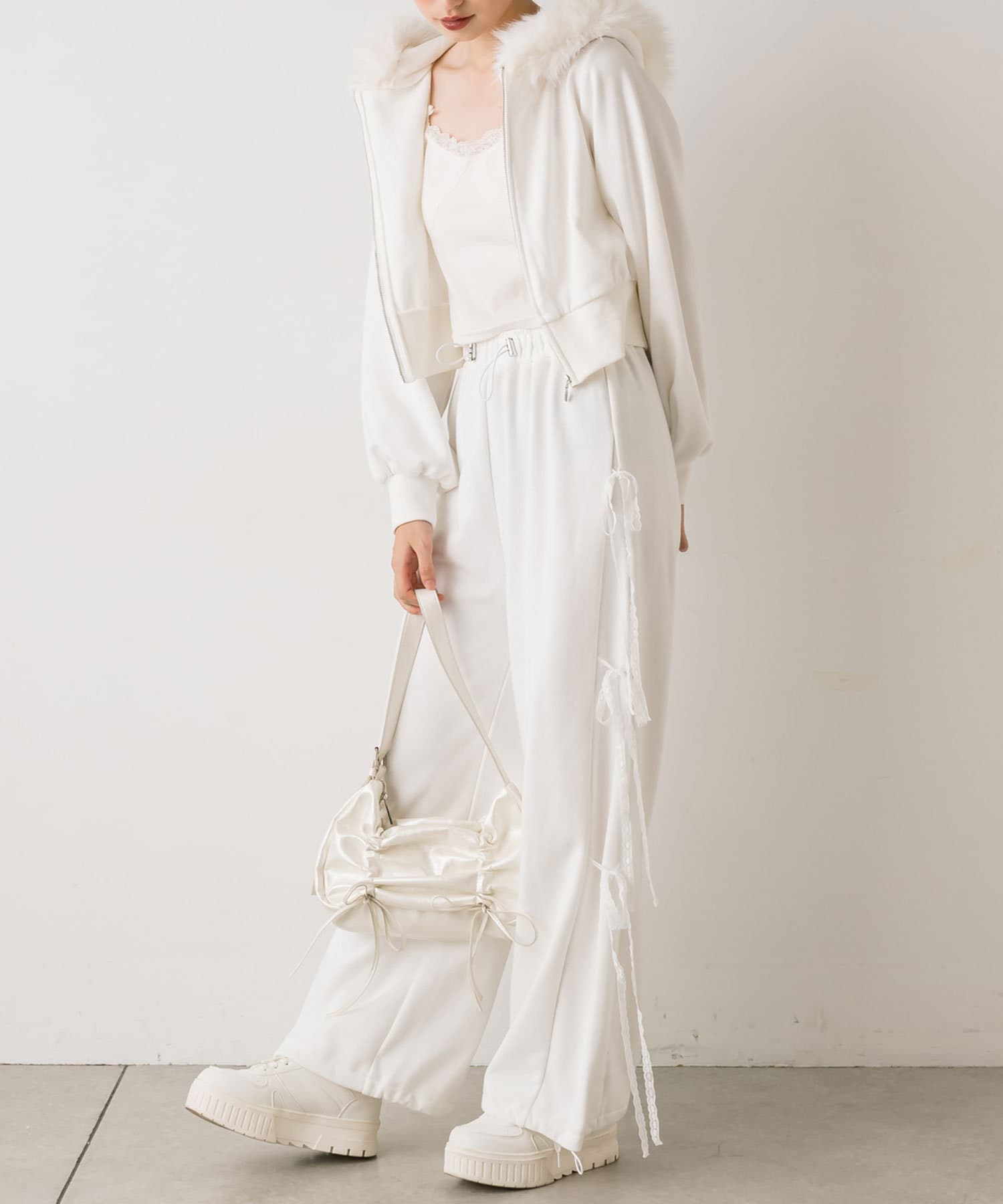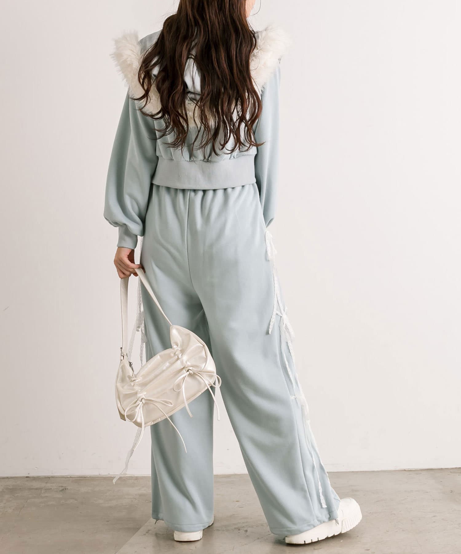 ・サイドレースリボンスウェットパンツ(品番:1042020100)とセットアップで着るのがおすすめ。
