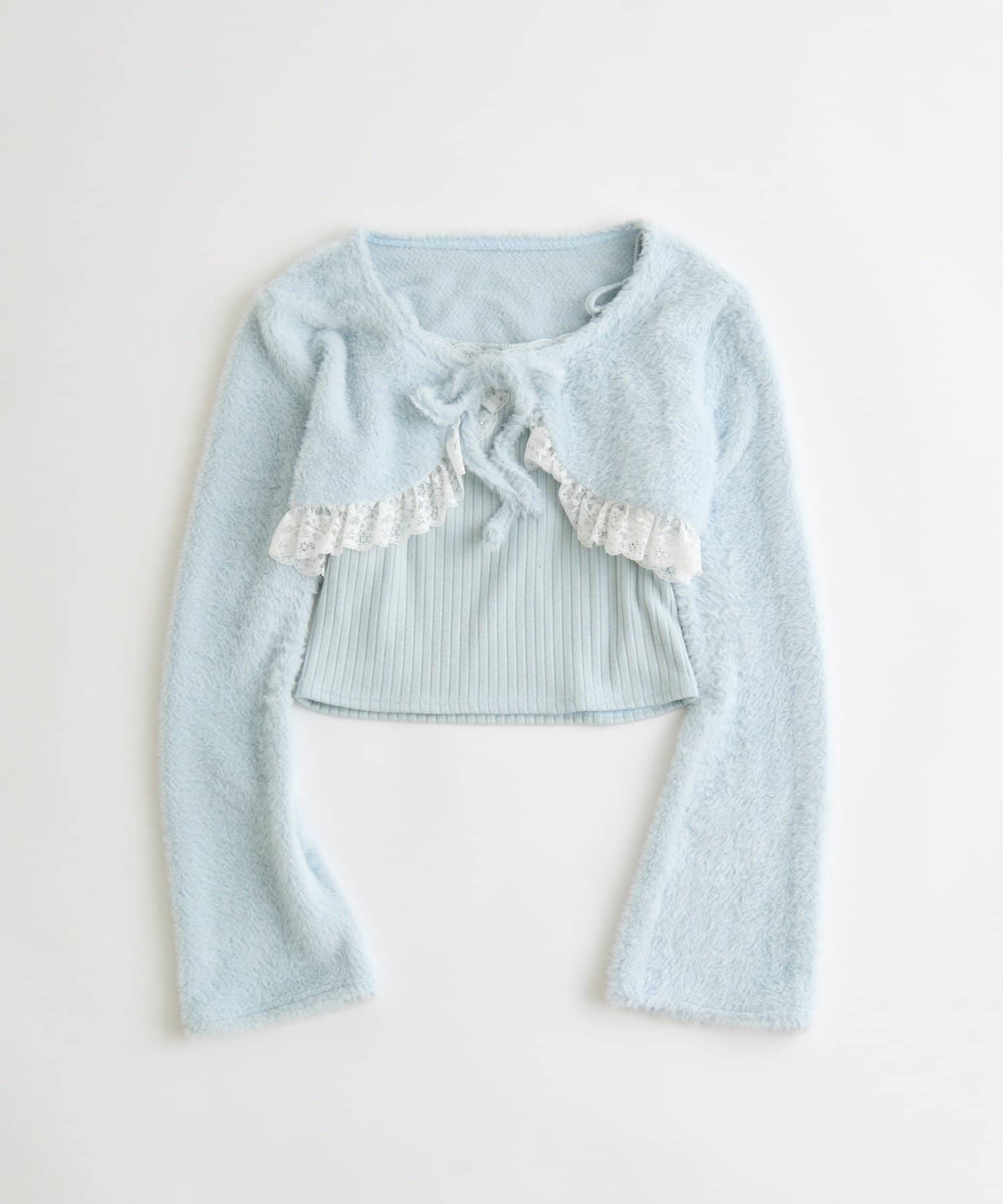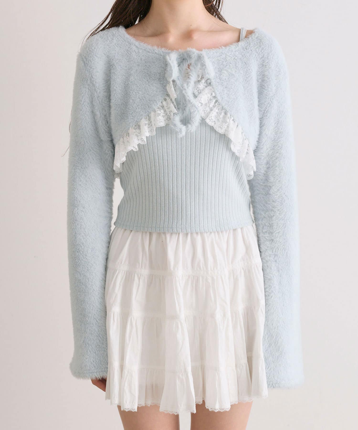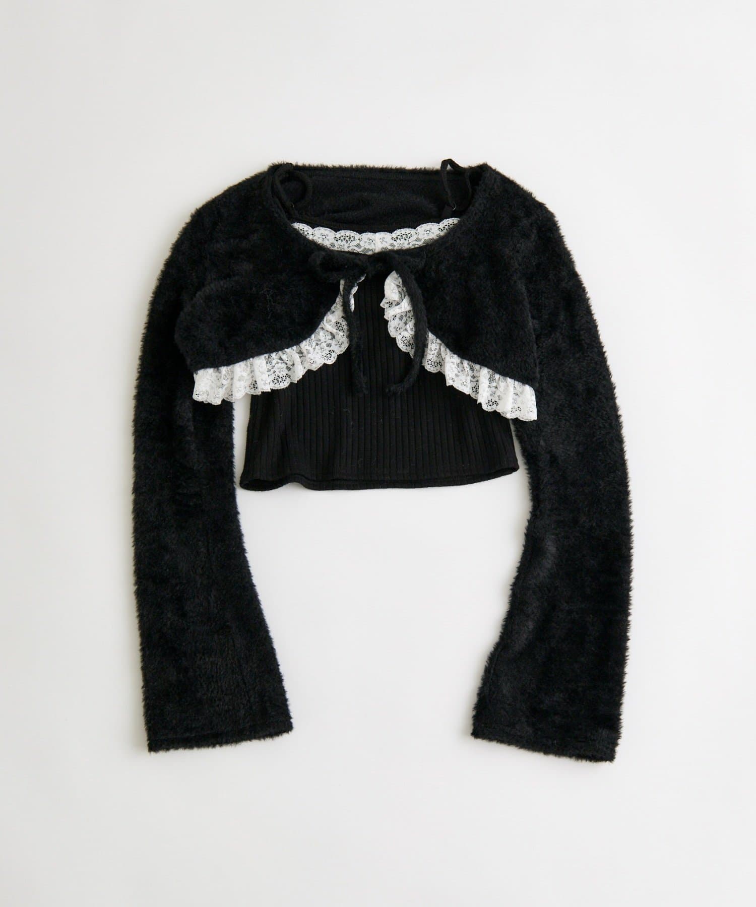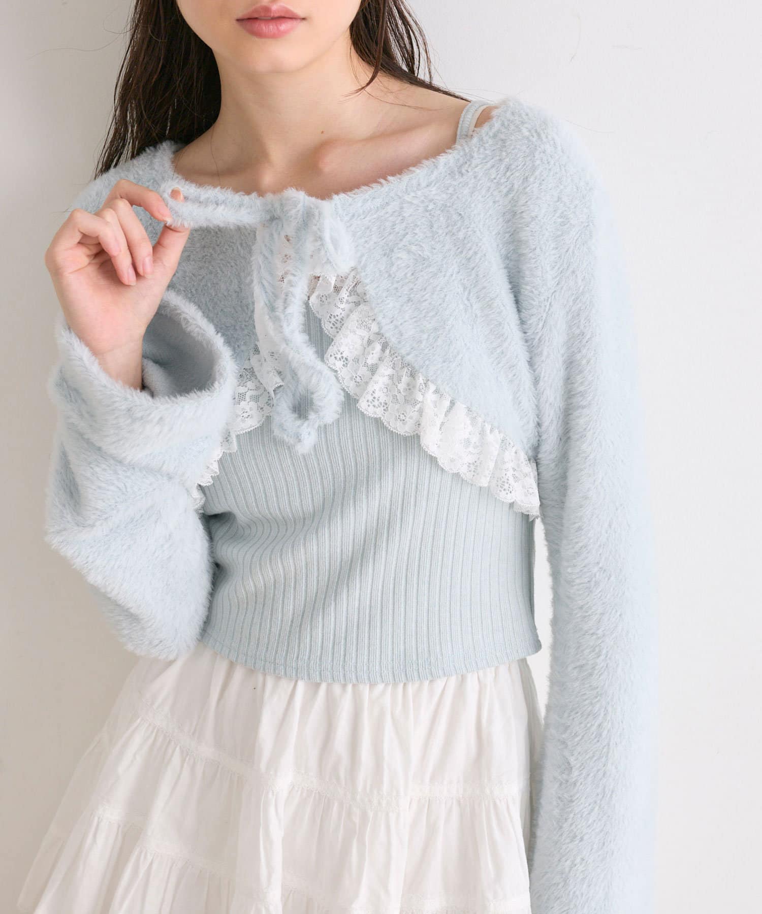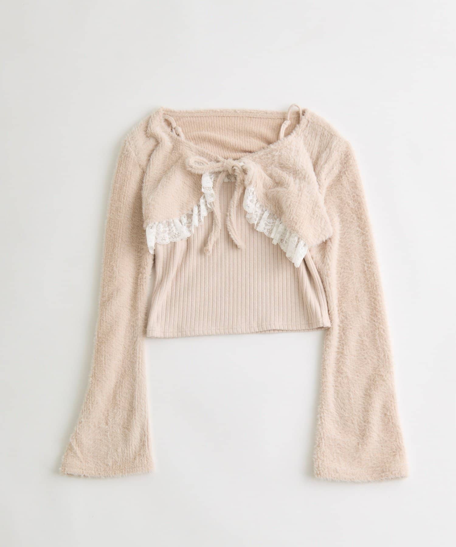 ・リブ素材のキャミインナーとシャギー素材のボレロのセット。