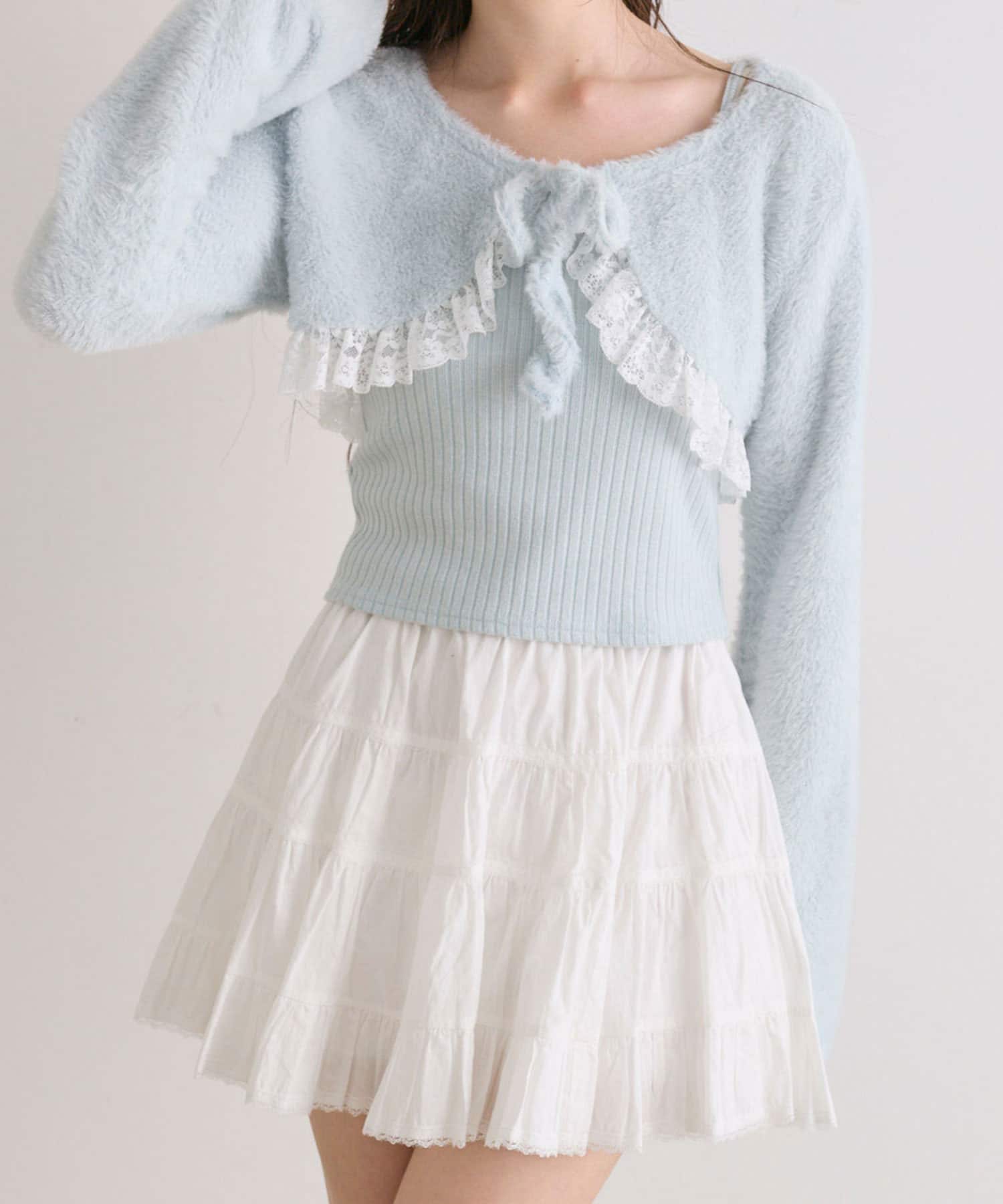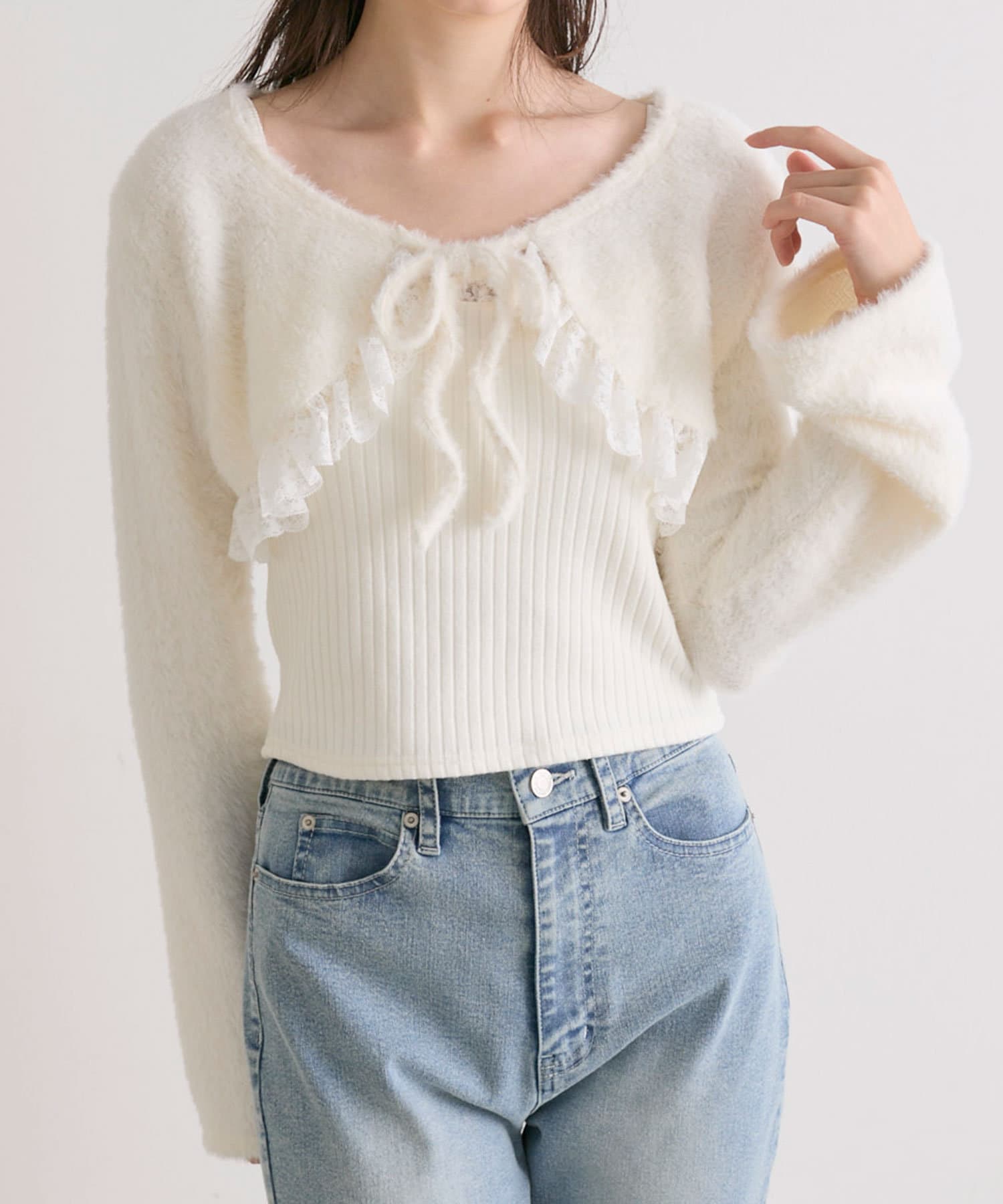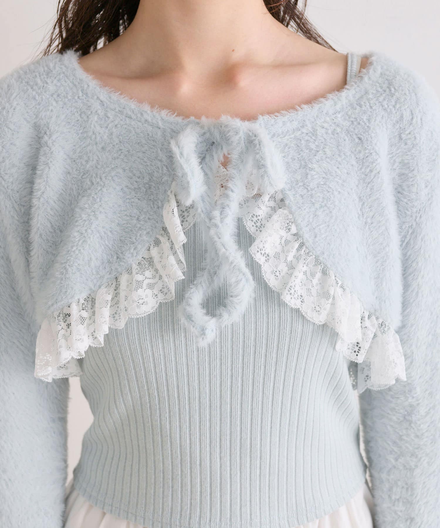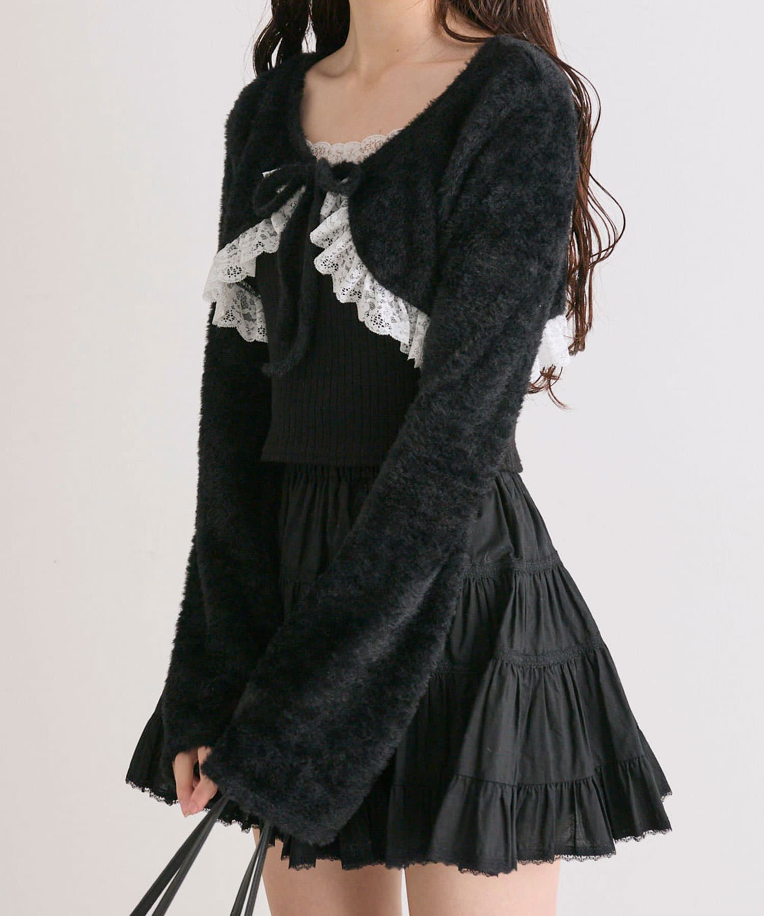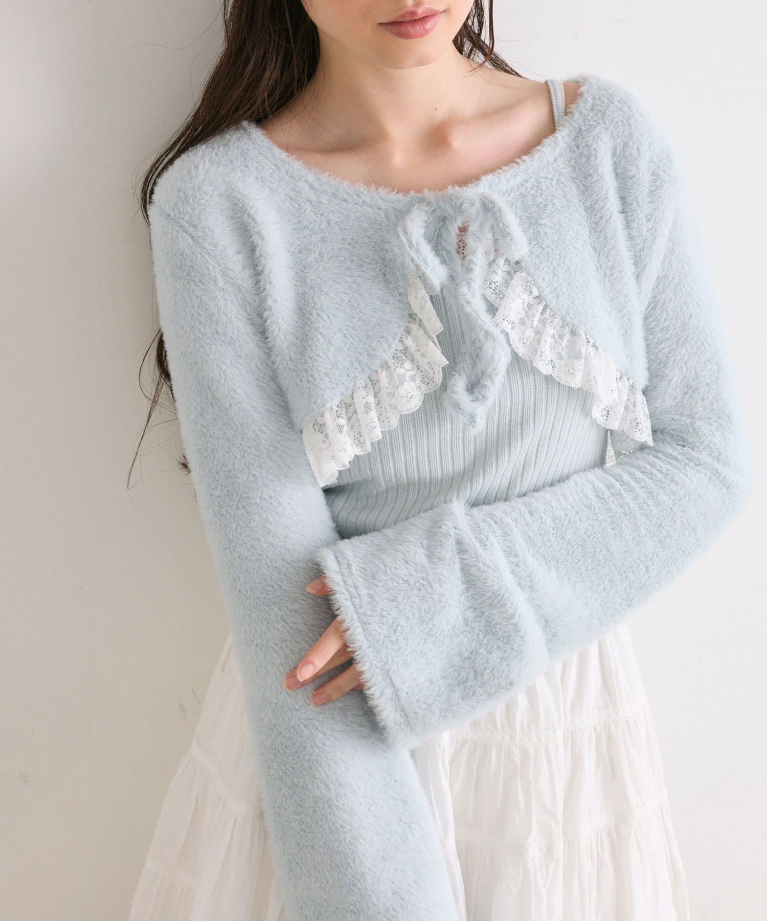 ・リブ素材のキャミインナーとシャギー素材のボレロのセット。