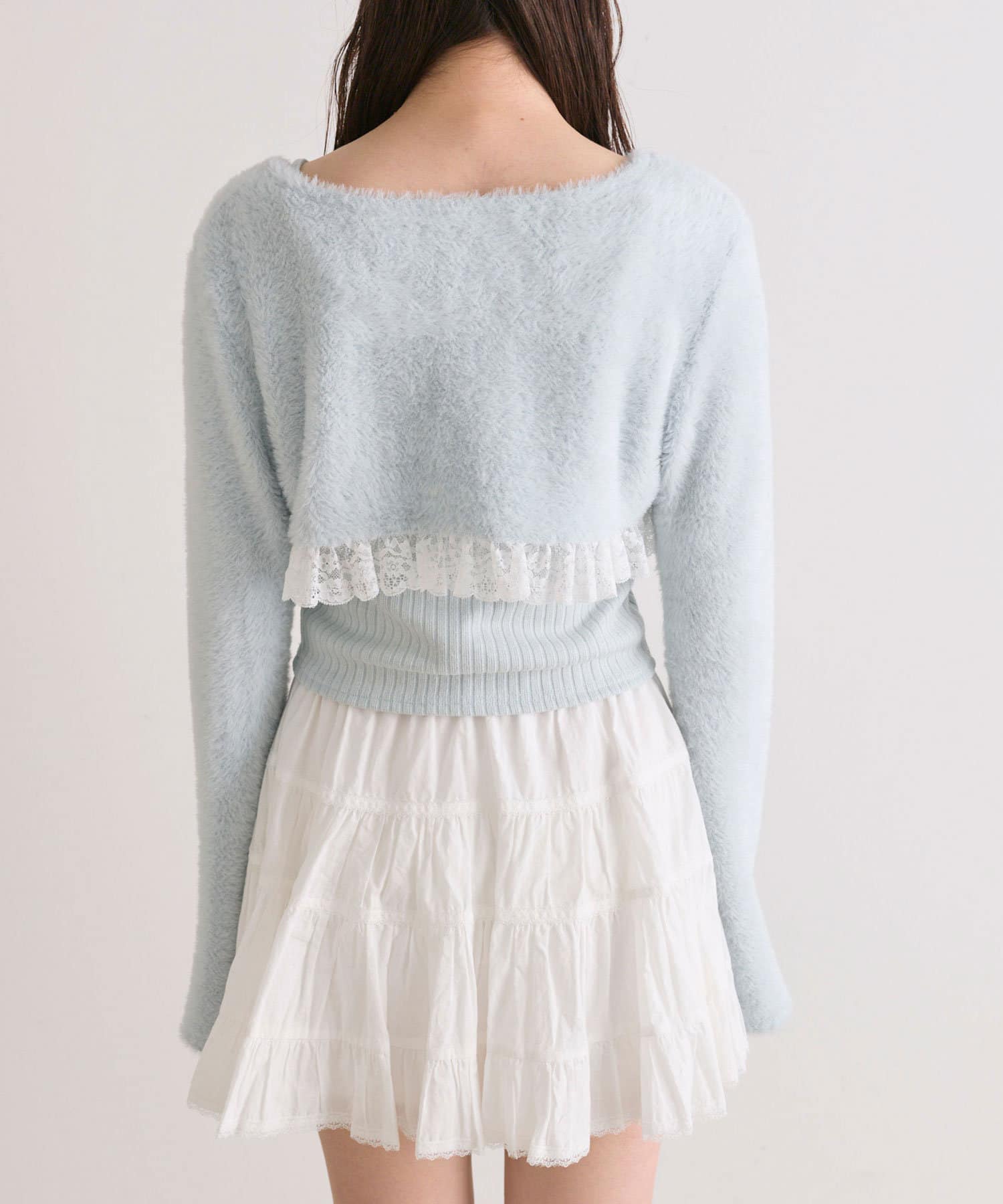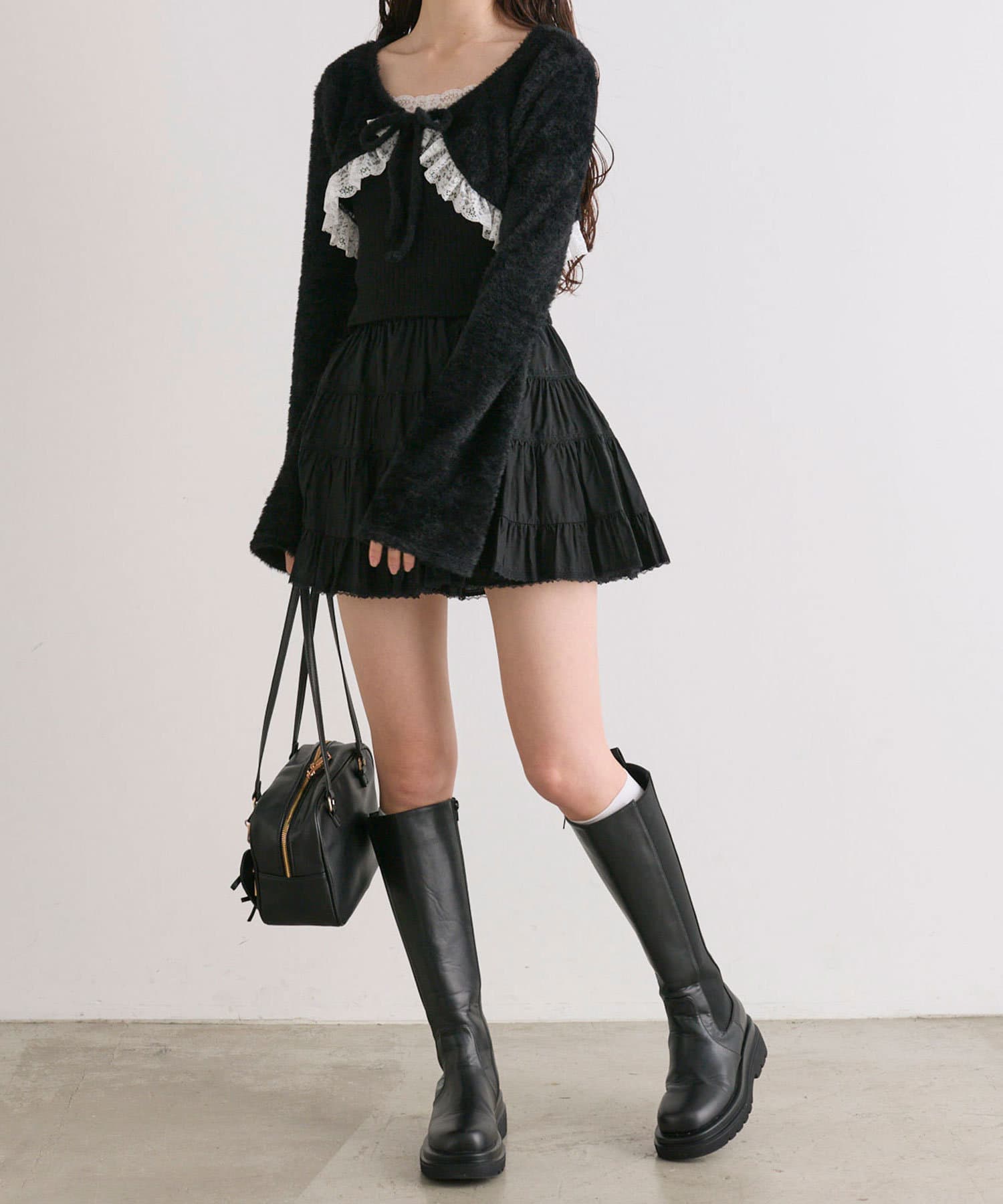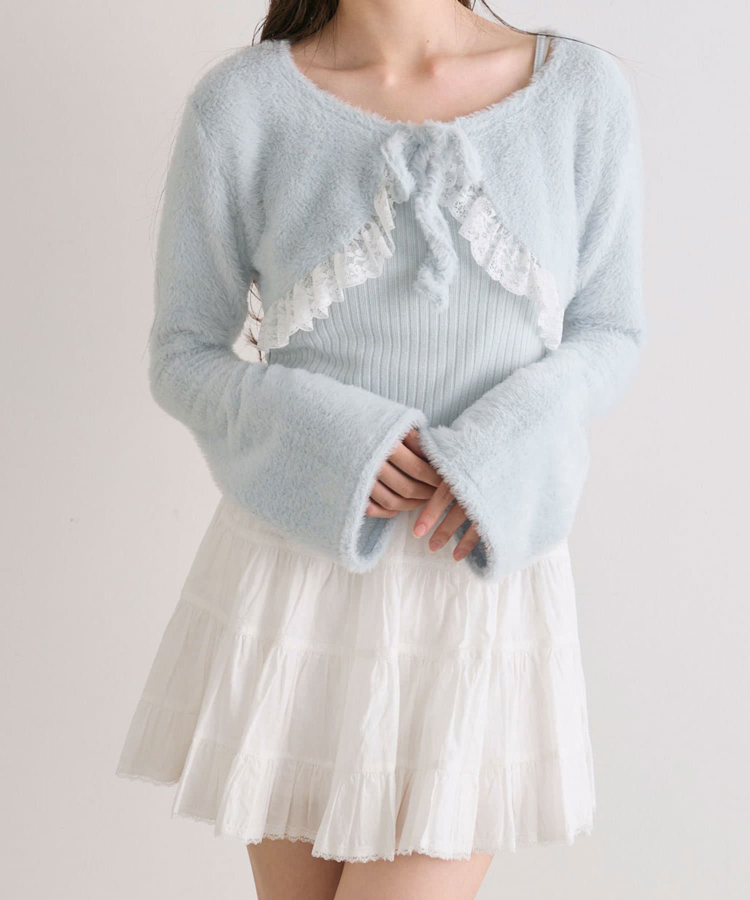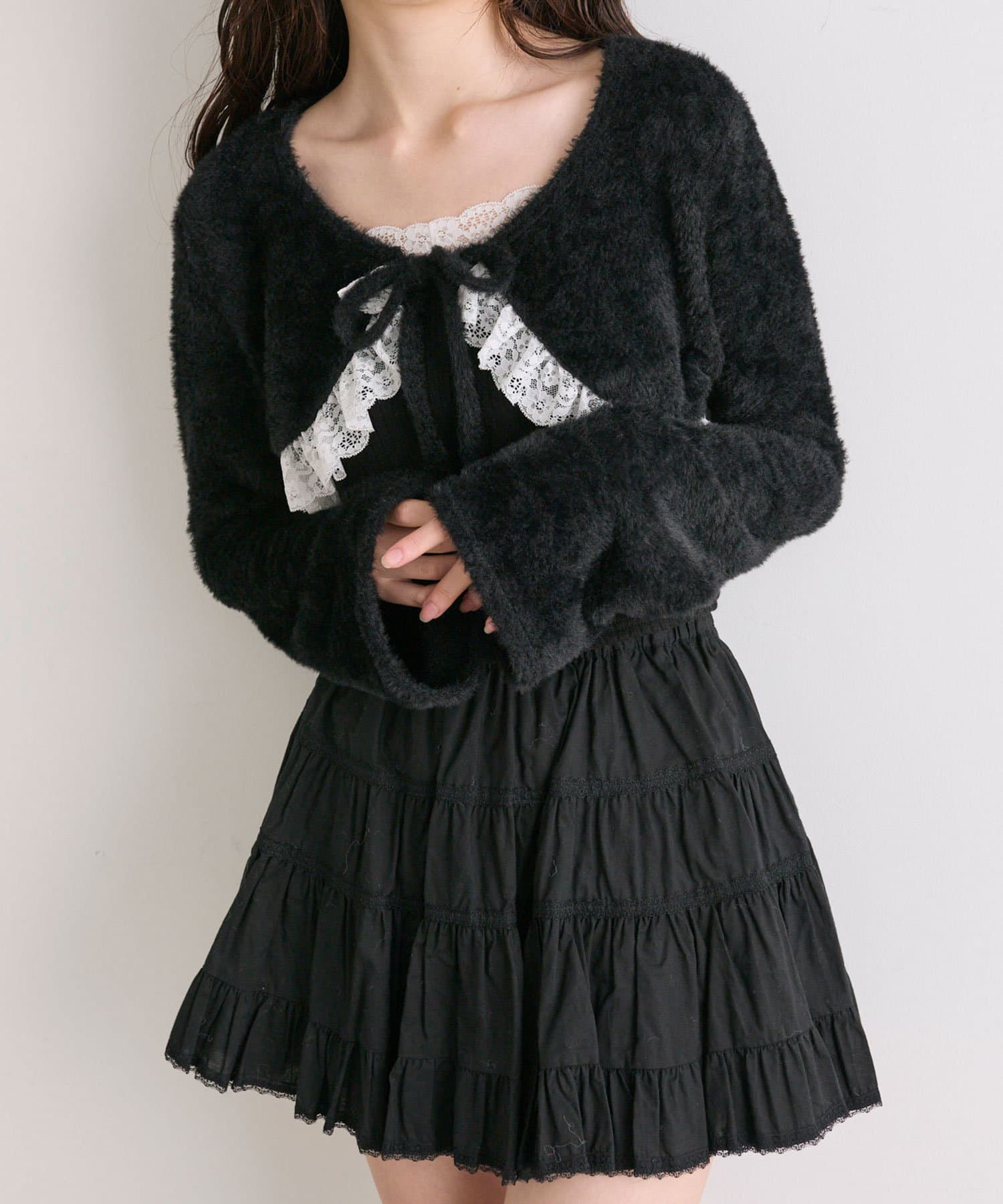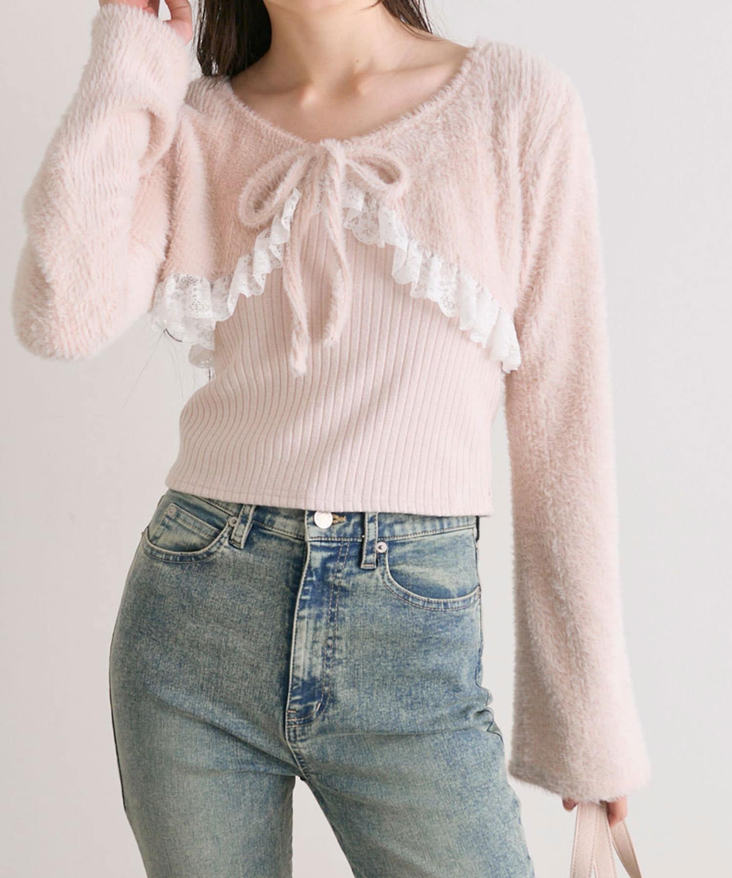・リブ素材のキャミインナーとシャギー素材のボレロのセット。