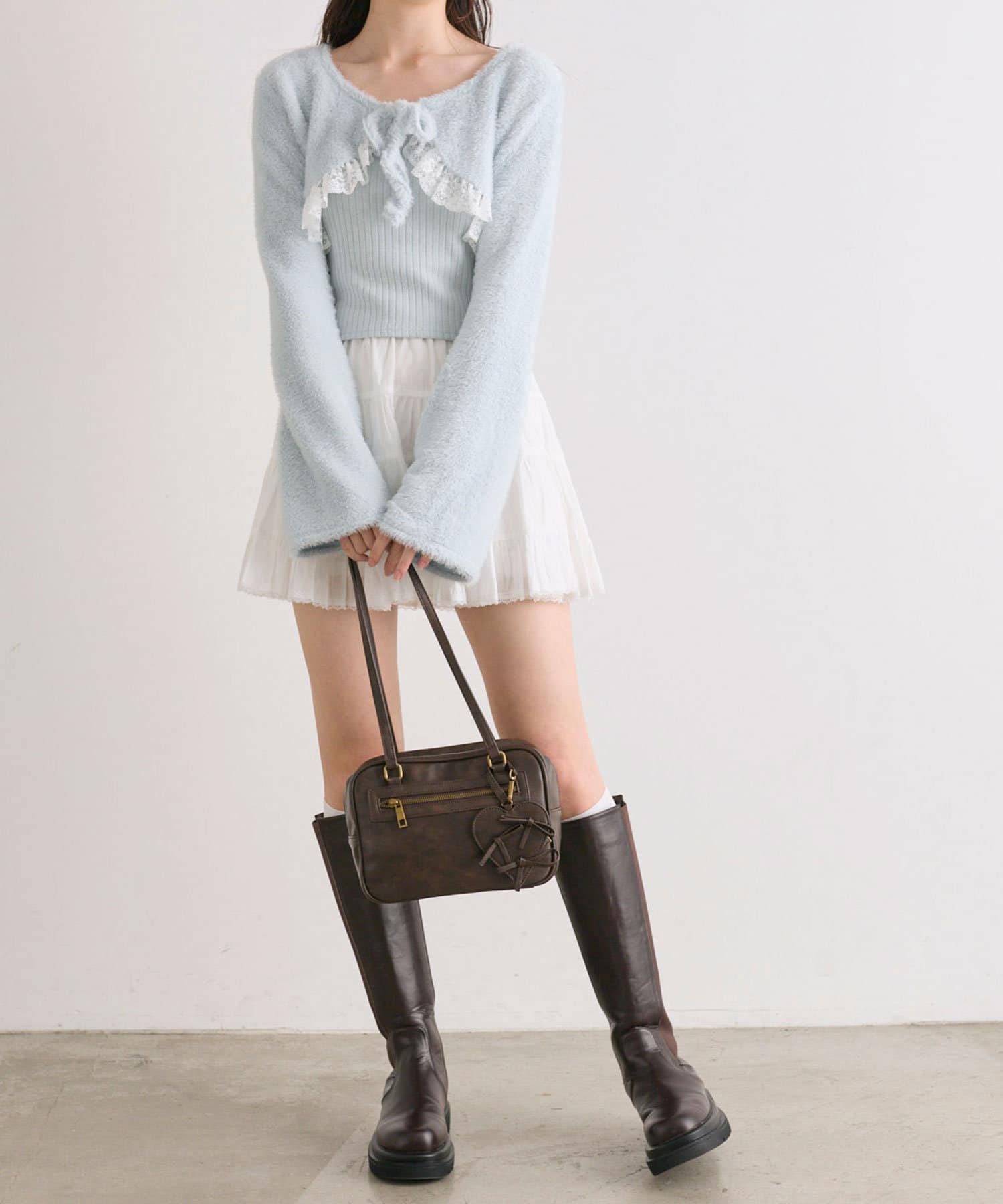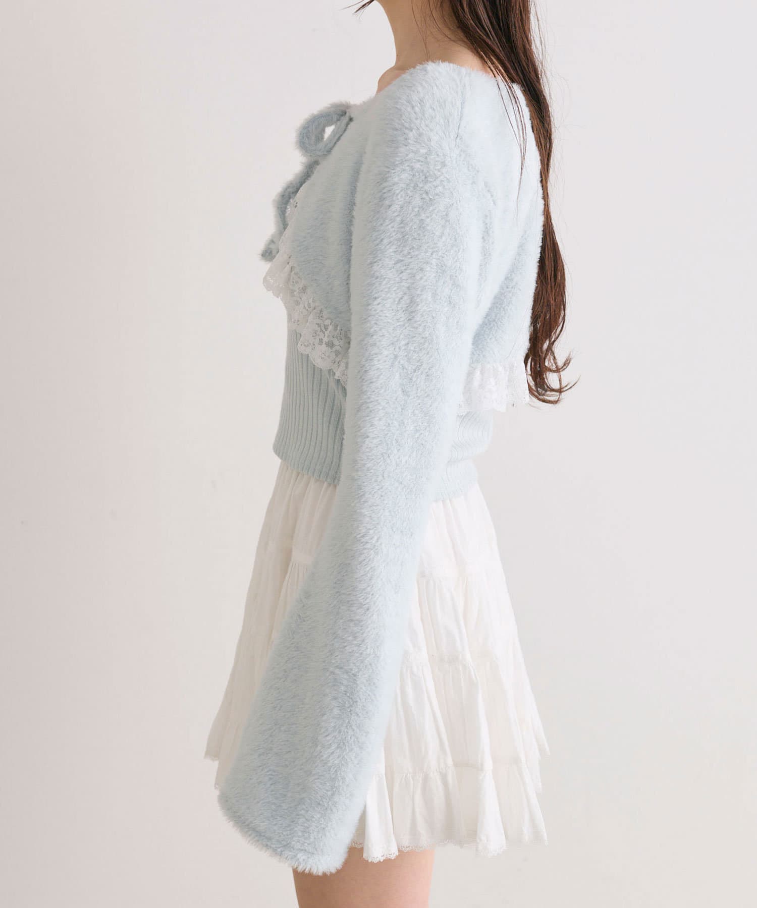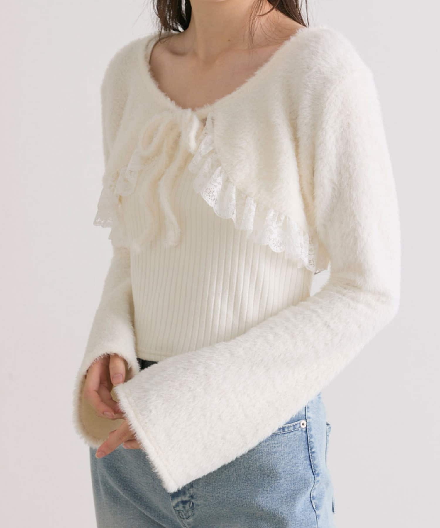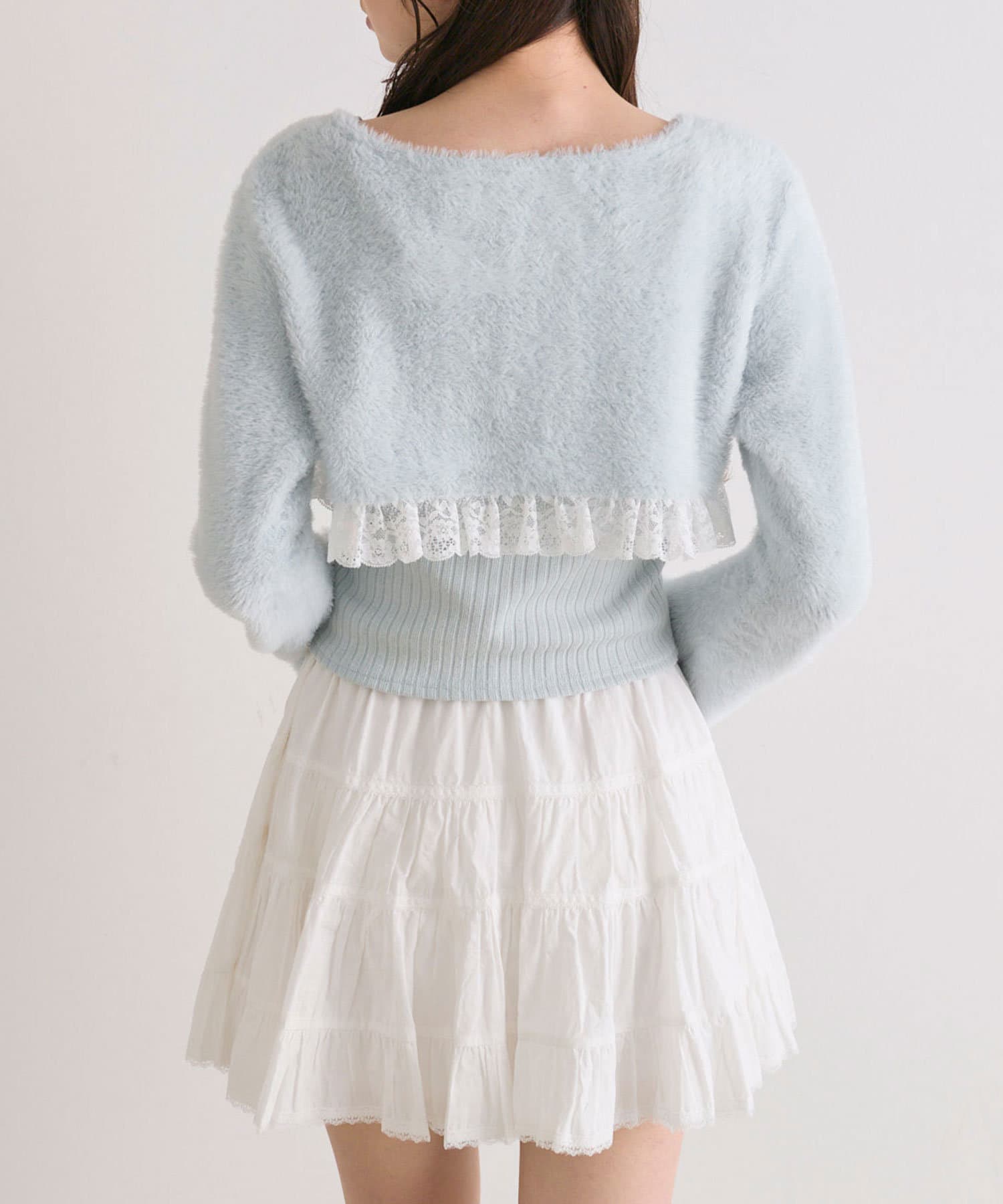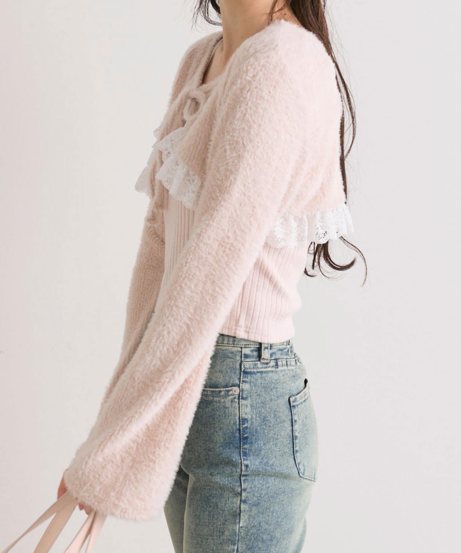 ・リブ素材のキャミインナーとシャギー素材のボレロのセット。