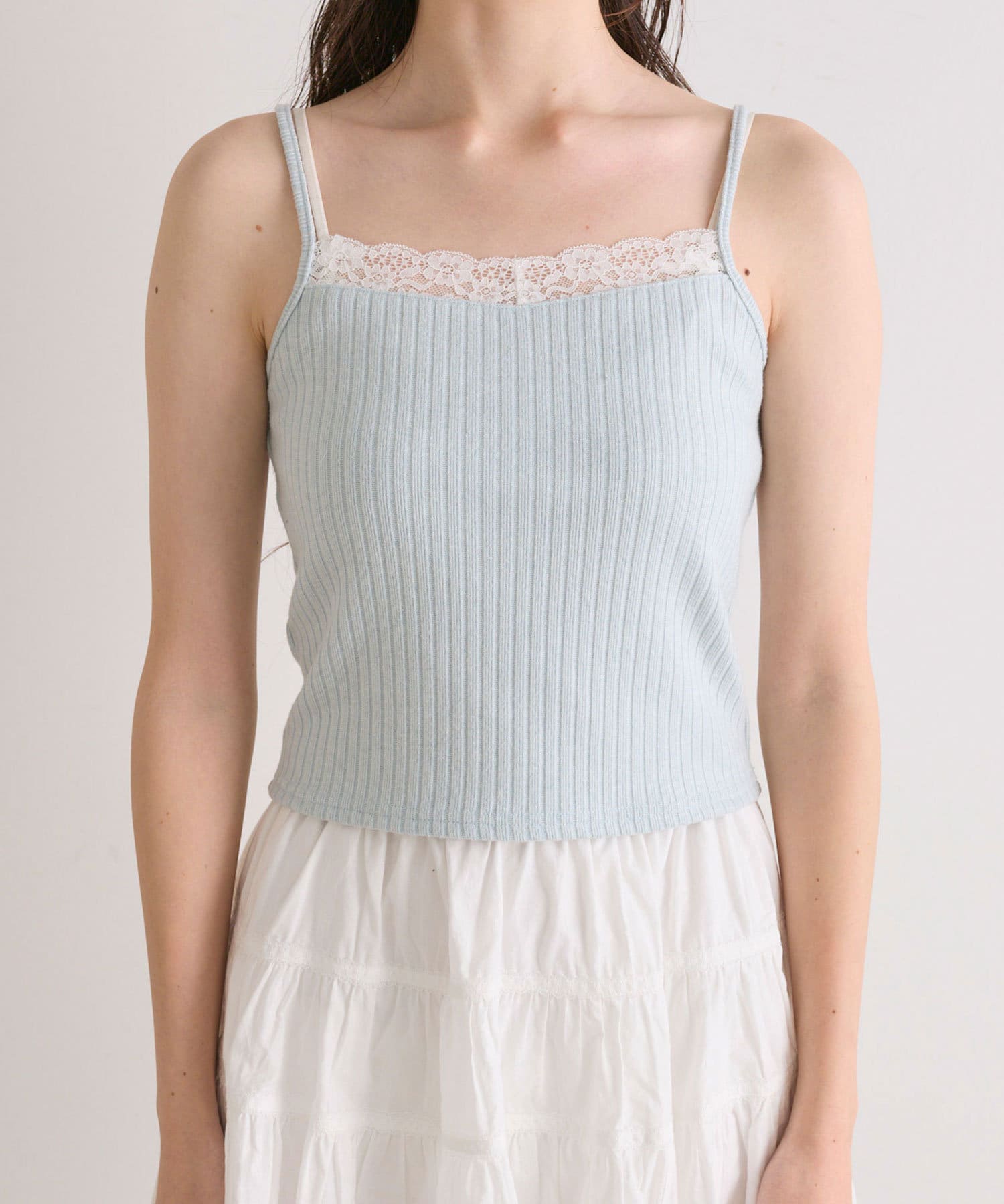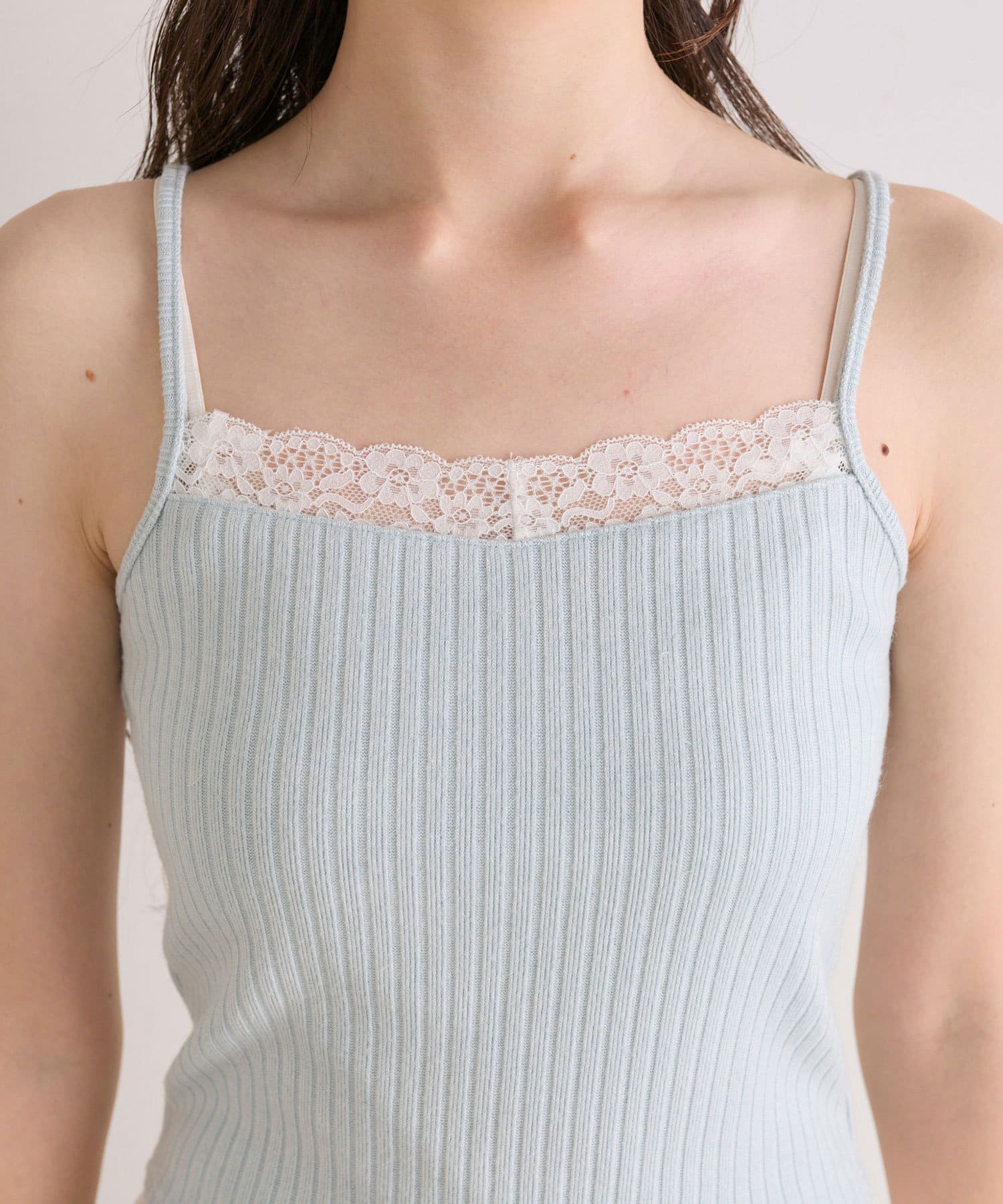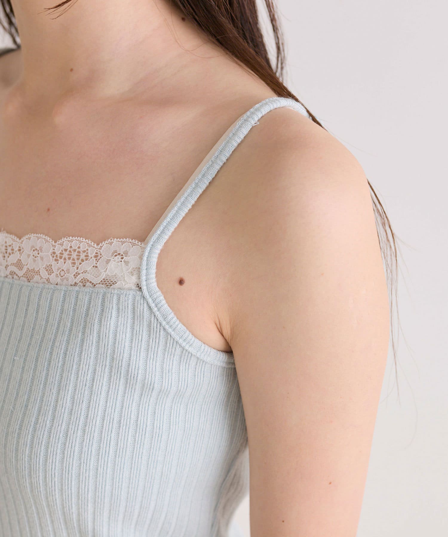 ・キャミインナーはカーディガンに合わせると、胸元のレースがコーデを華やかにします。