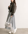 ・プリーツスカートにロングブーツを合わせたスタイリングもおすすめ。