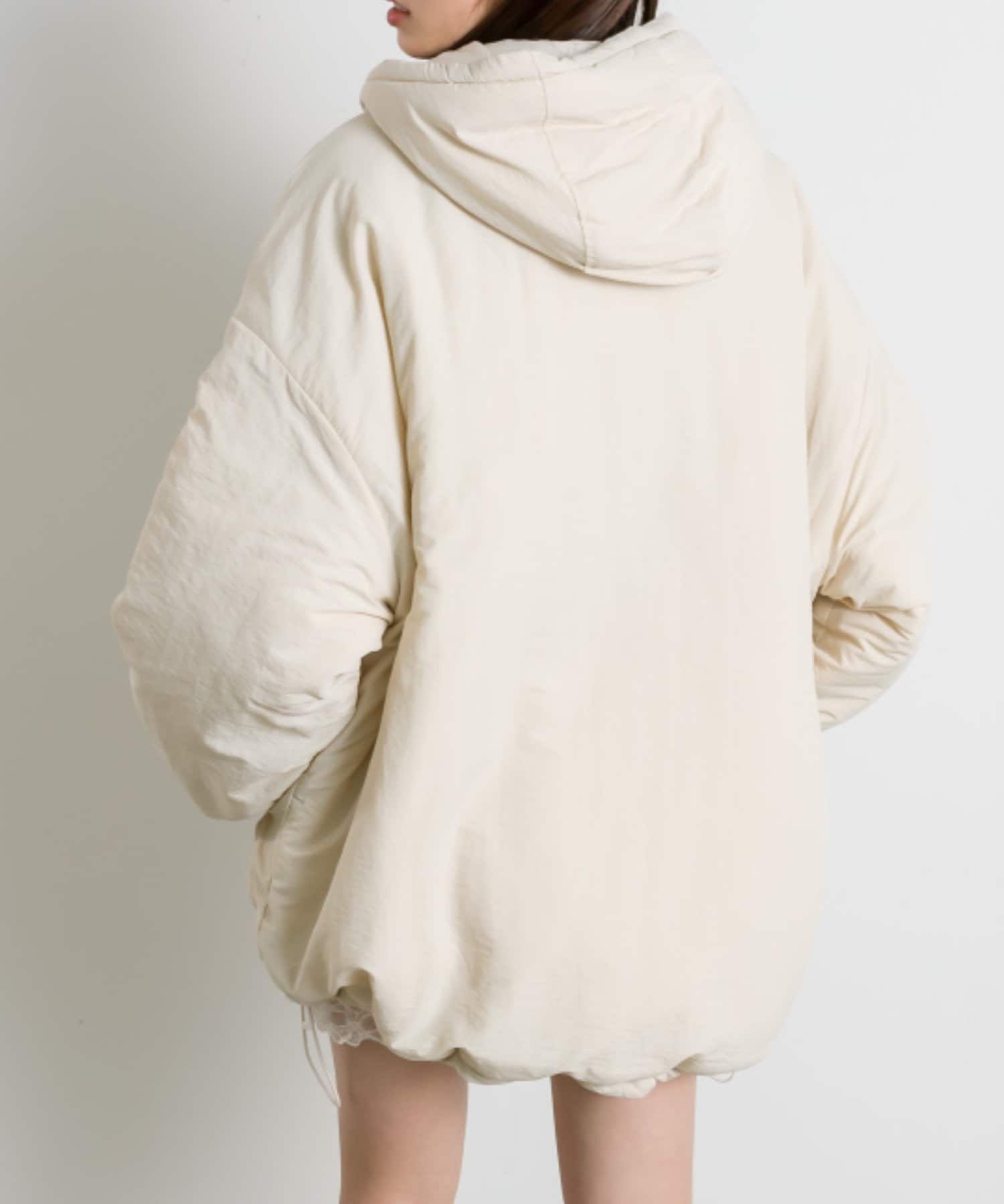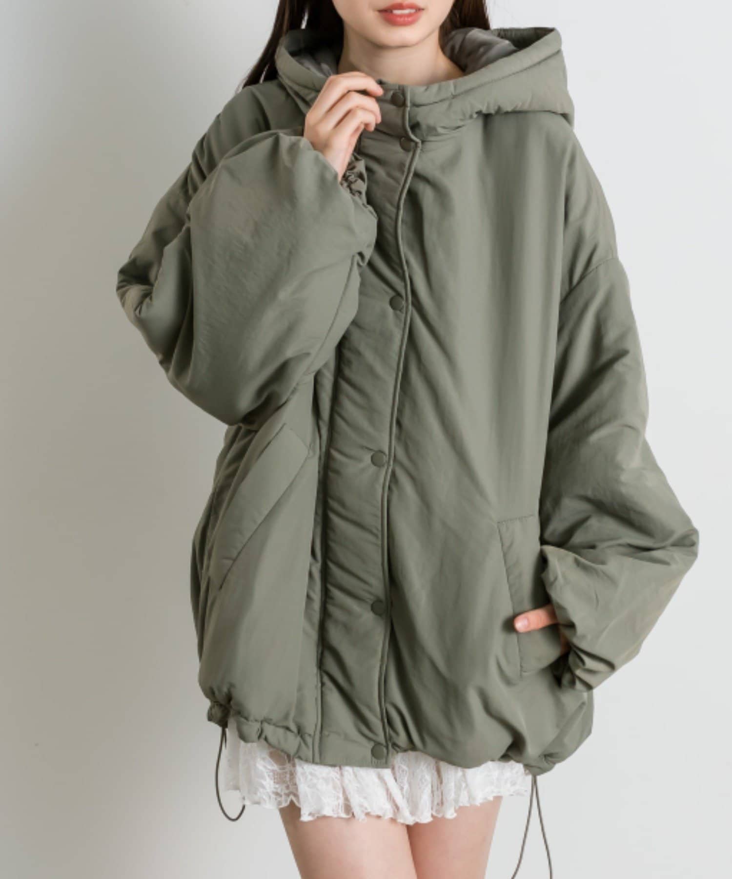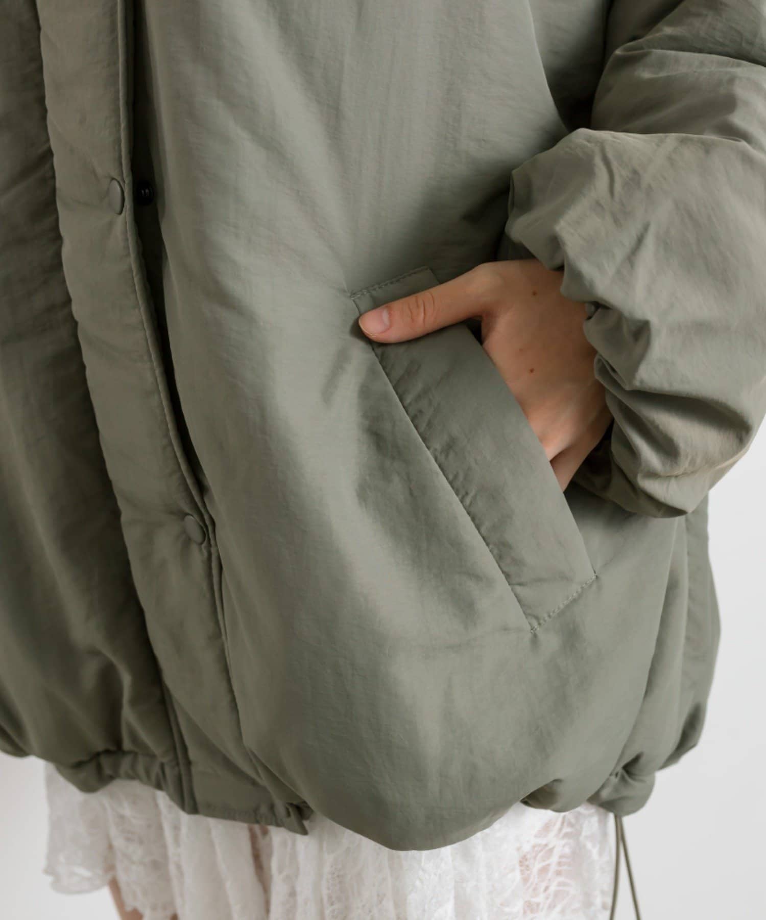 ・裾にゴムが入っているので、ドローコートでお好みのシルエットに調節していただけます。
