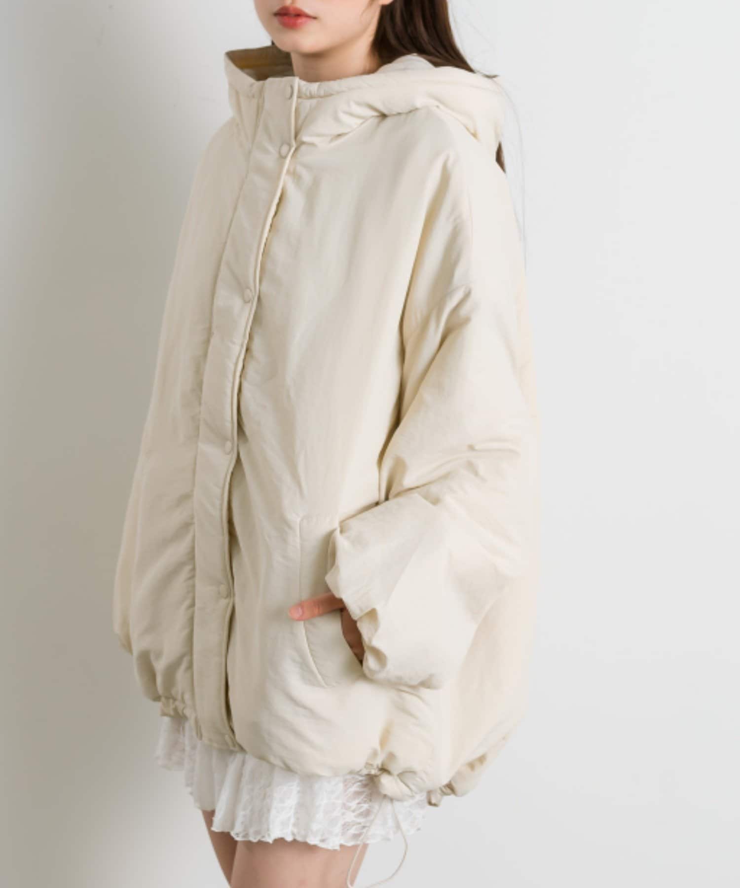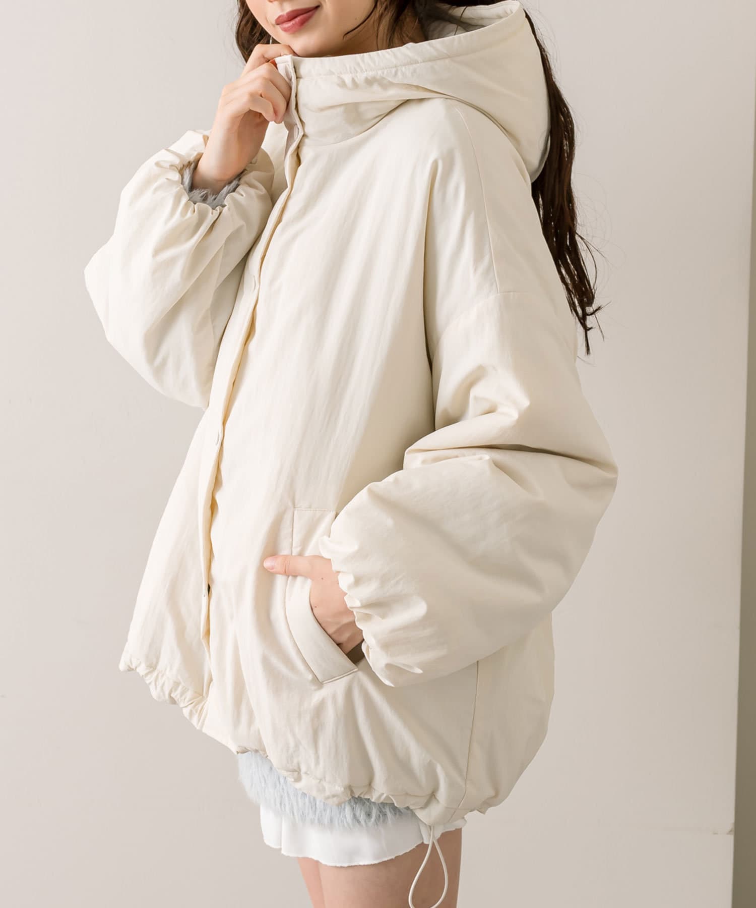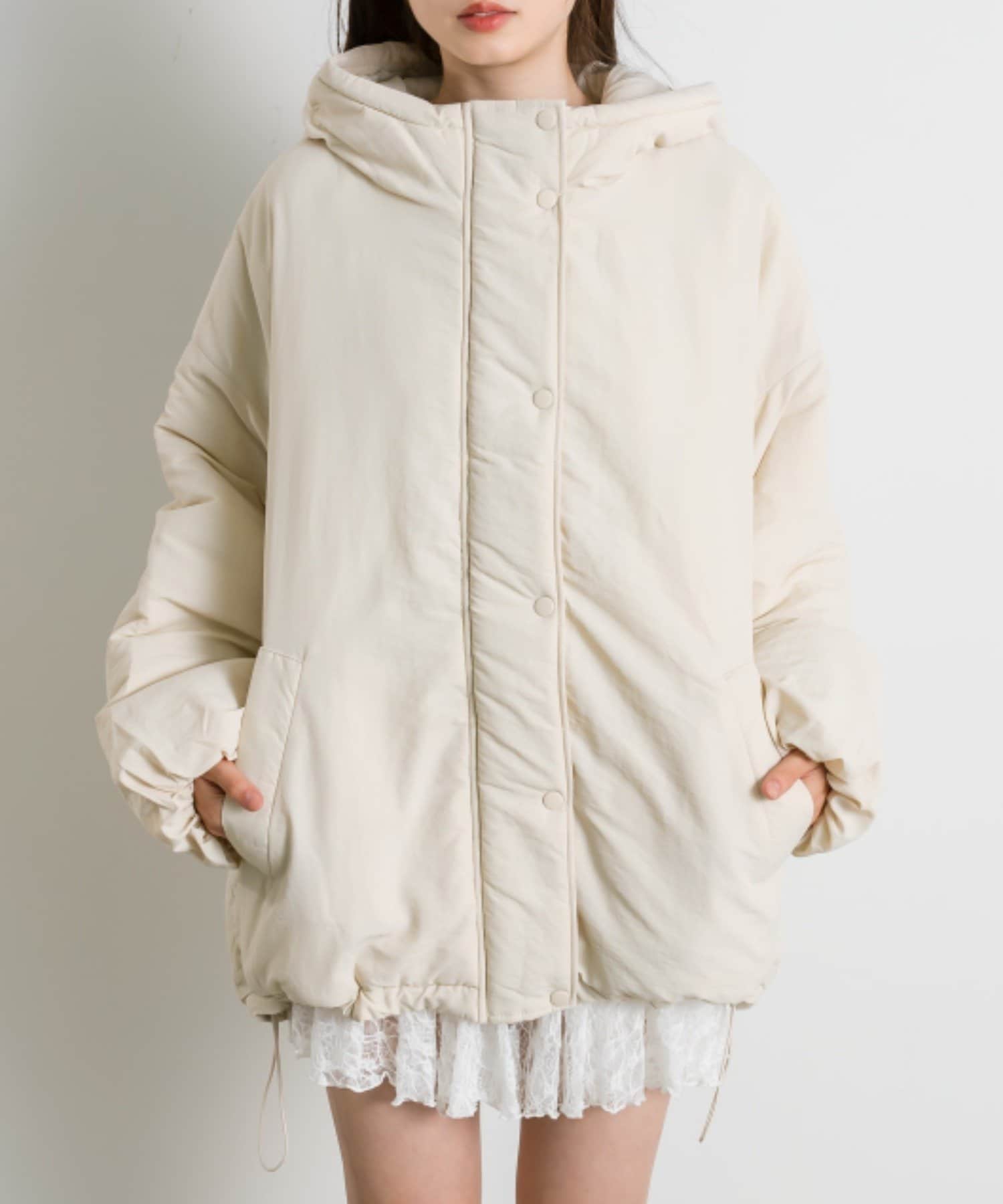 ・裾にゴムが入っているので、ドローコートでお好みのシルエットに調節していただけます。