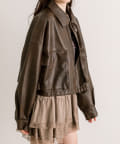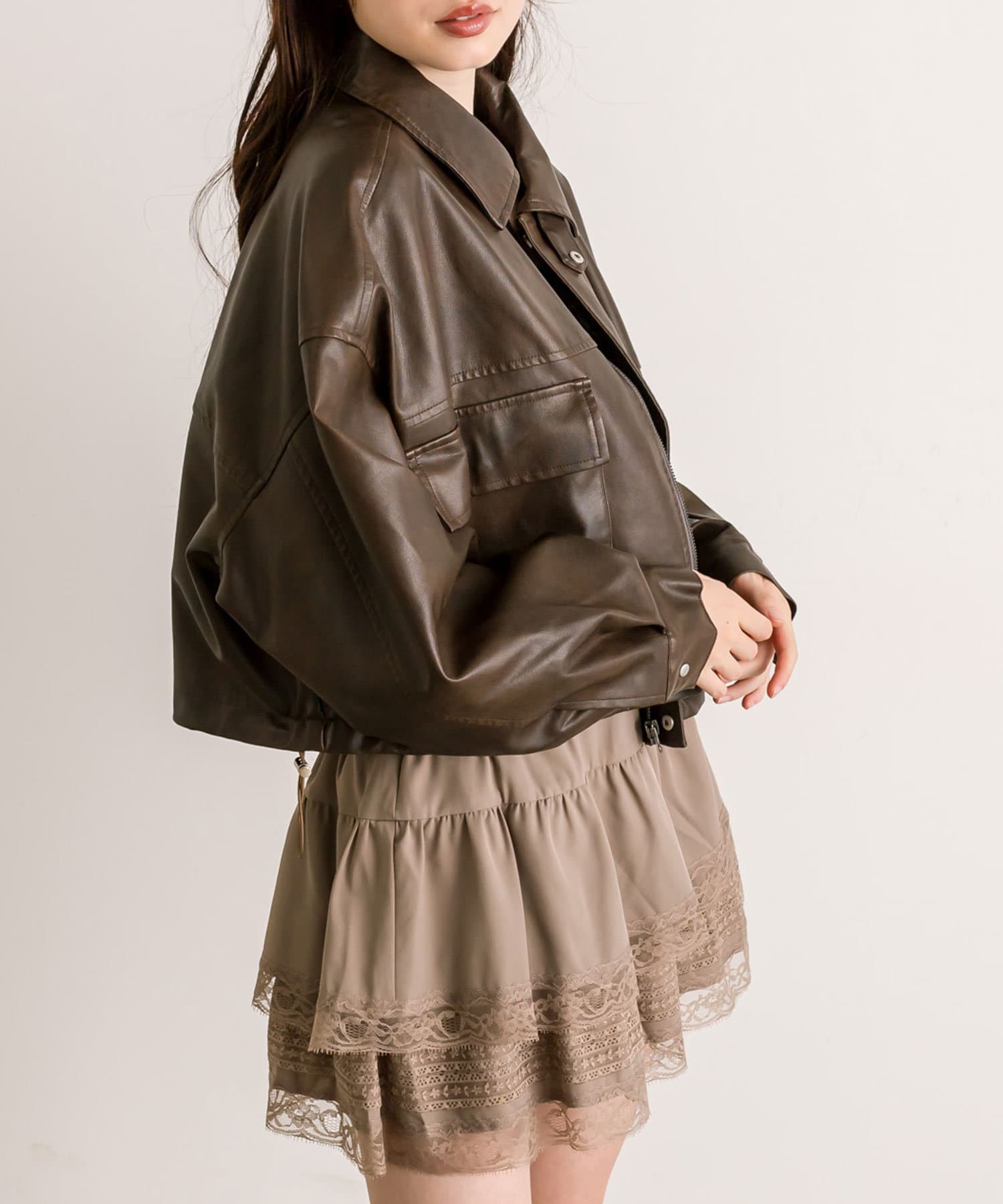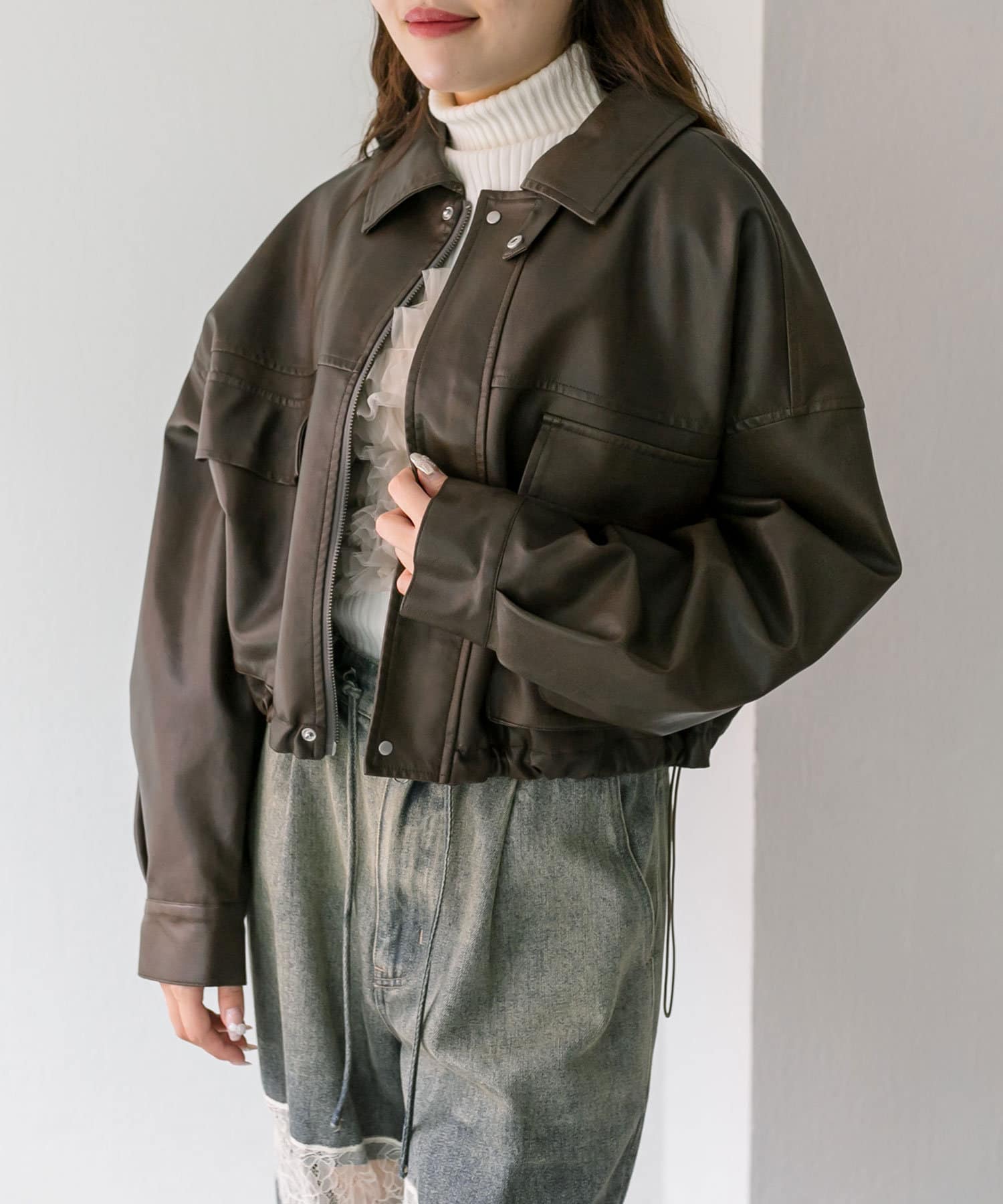 ・大きめのポケットデザインが可愛いエコレザージャケット。