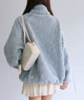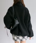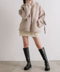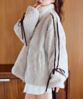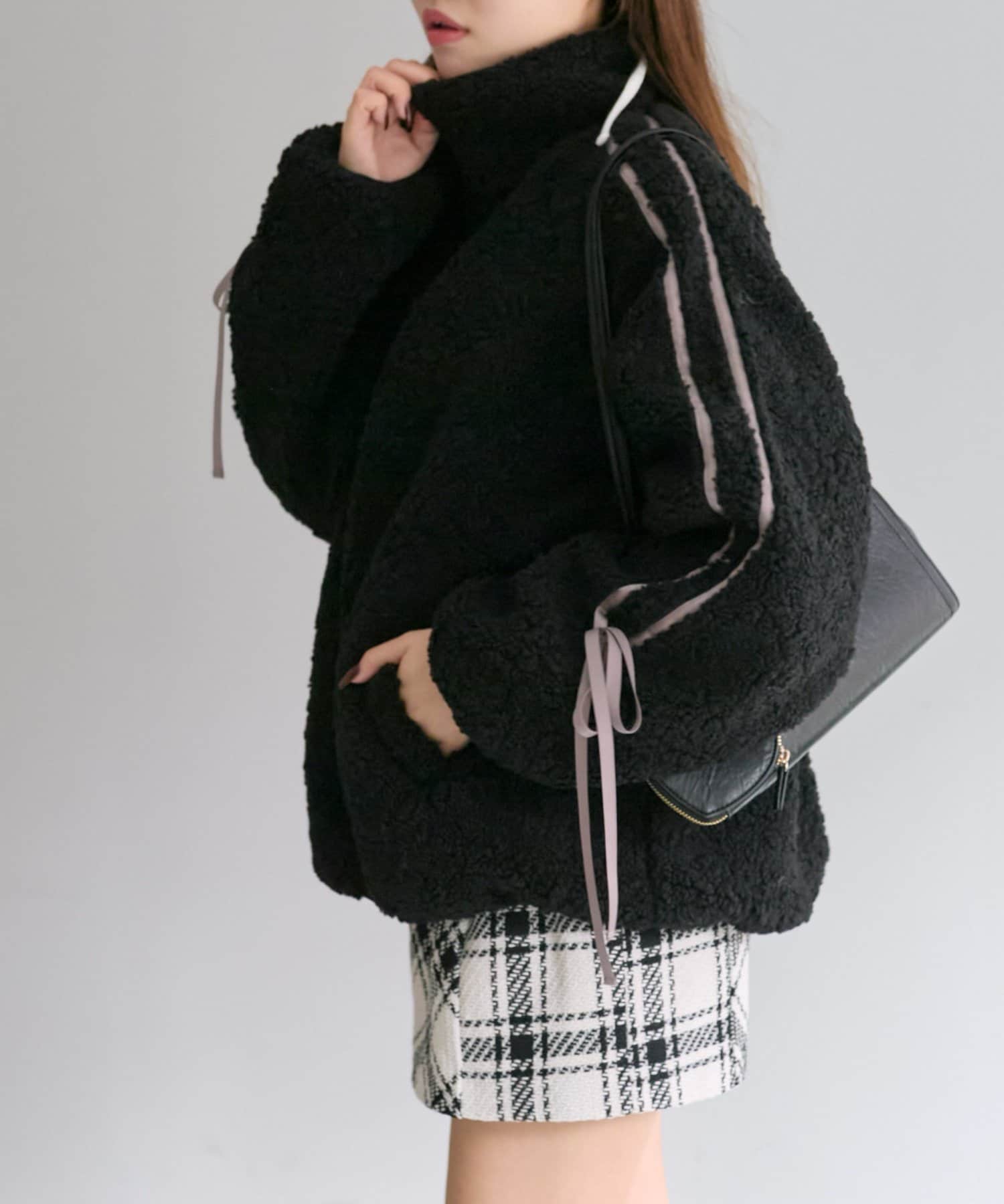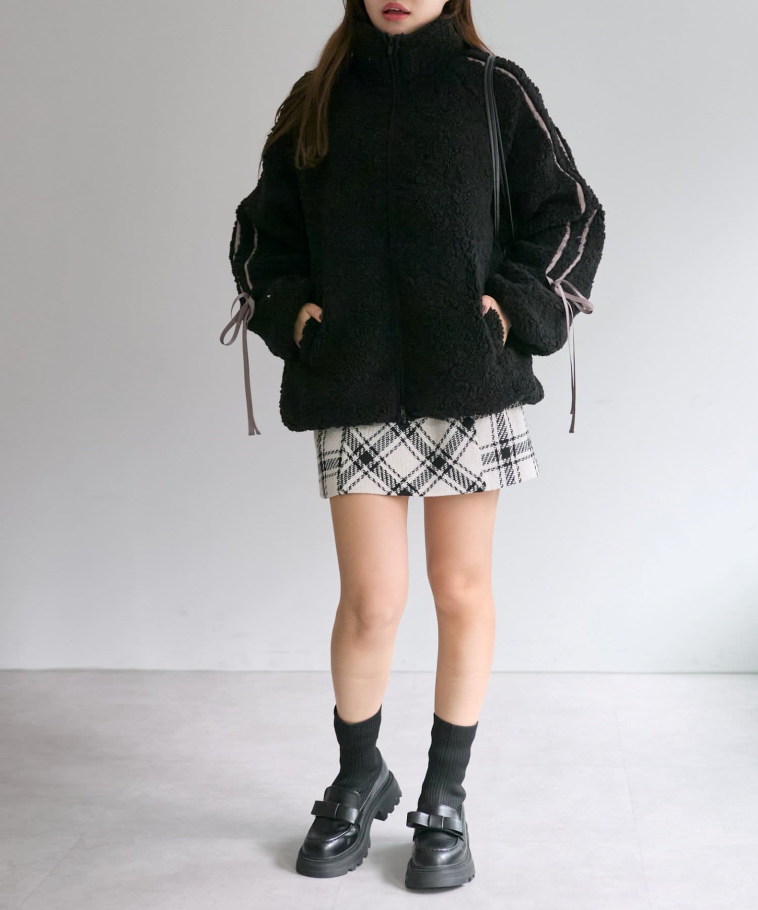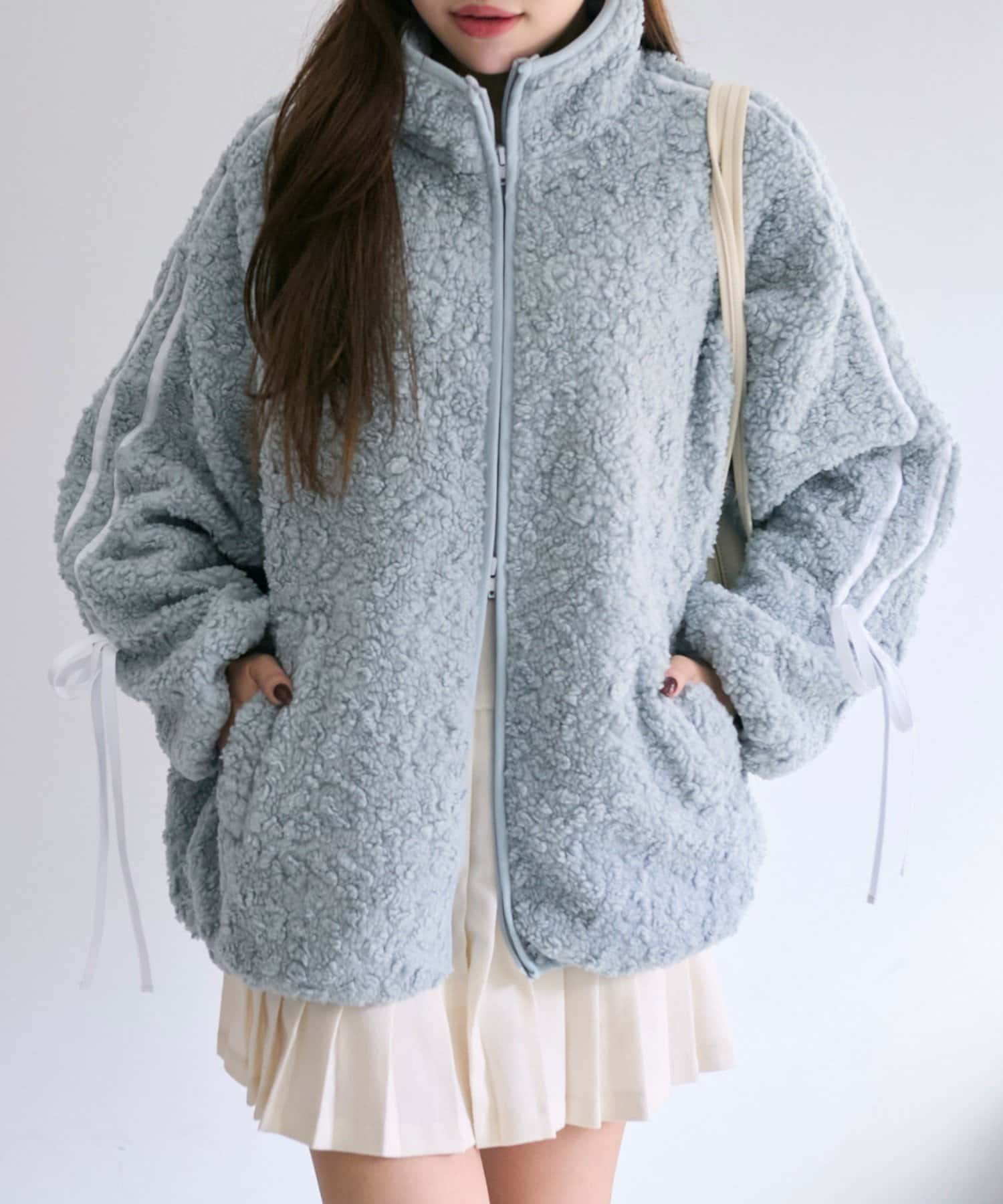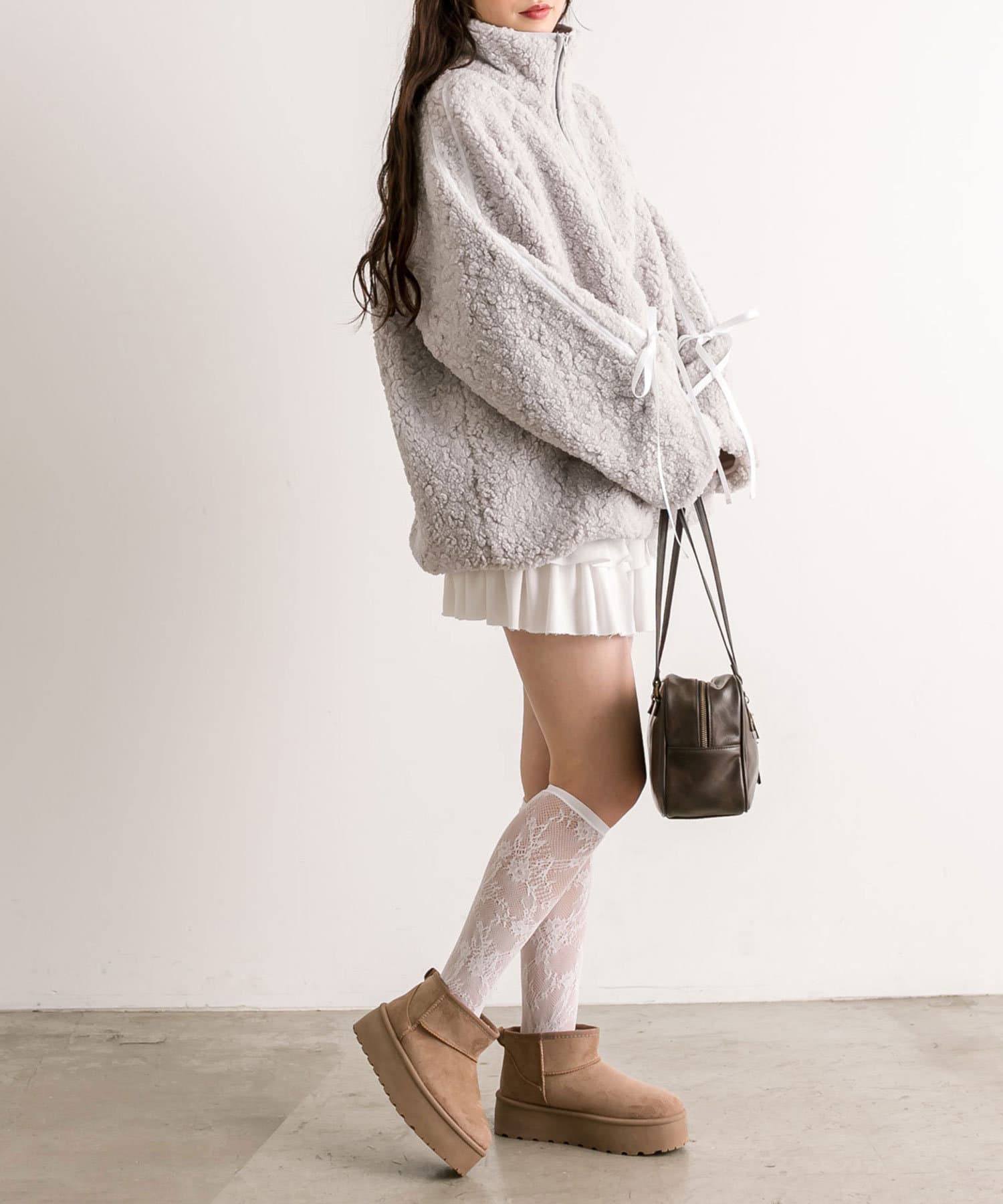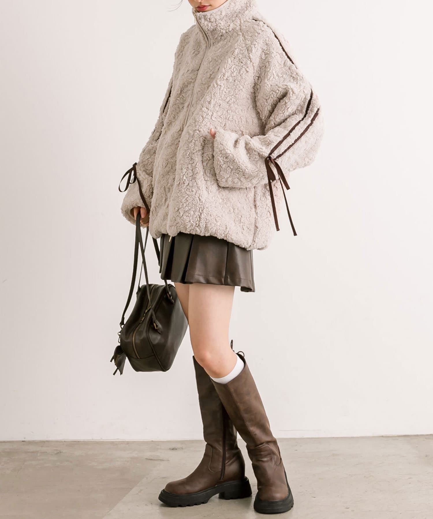 ・袖のラインとリボンがトレンドライクなボアブルゾン。