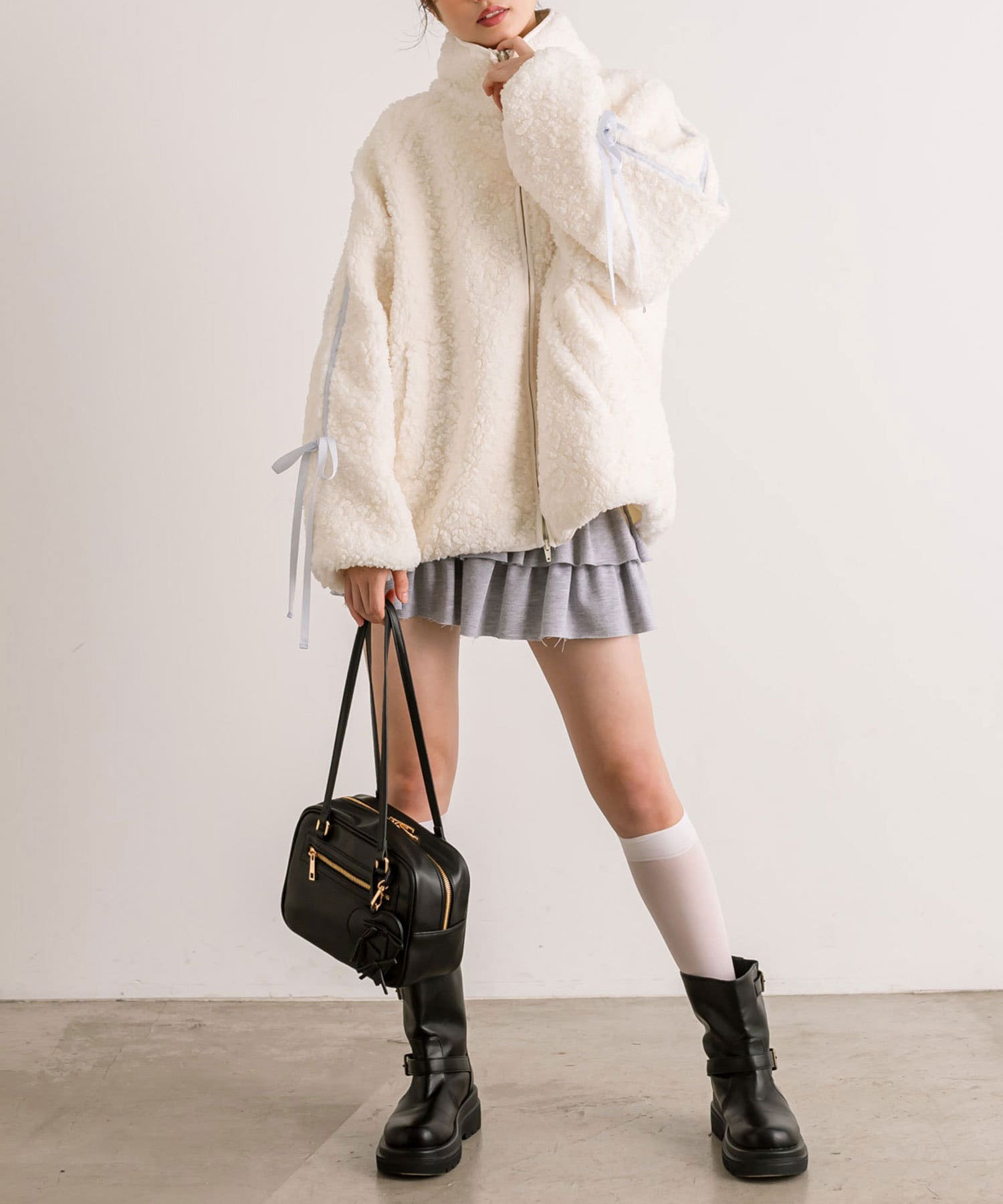 大人気な袖リボンデザインからボアブルゾンが登場!