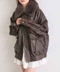 ・リボンがポケットに付いていて、ふわふわのファーティペットもあることで甘さをプラスしたデザイン。